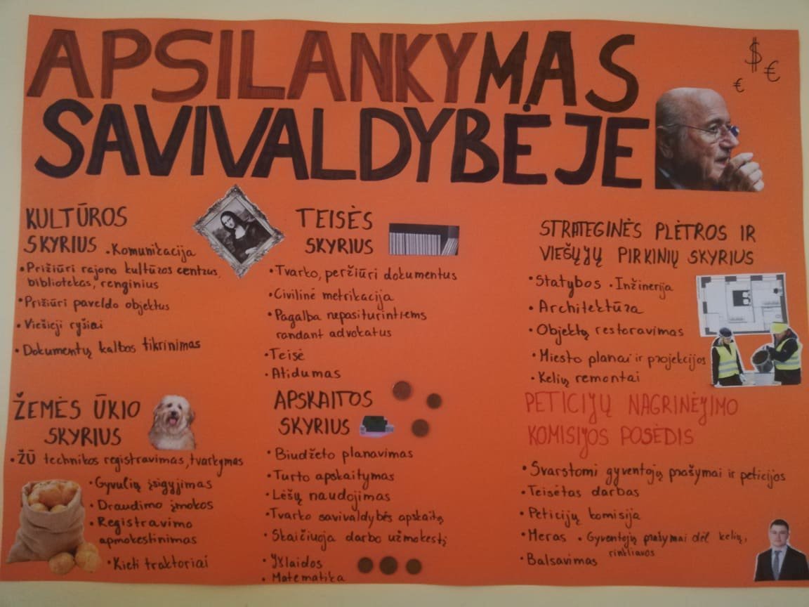 Po susitikimų gimnazistai papietavo ir bendradarbiaudami savo grupelėse kūrė plakatus, kuriuose nuotaikingai ir glaustai apibendrino išgirstą, pamatytą, užfiksuotą informaciją. Mokyklos erdvės papuoštos vaizdine medžiaga – galima pamatyti ir paskaityti, ką nuveikė ir kur apsilankė kitos mokinių komandos. Gimnazistai norėtų tokio renginio ir ateityje, nes tokie susitikimai – tai galimybė išgirsti naudingos informacijos iš paties profesijos atstovo. Džiaugiamės, kad gimnazijos administracijos iniciatyva mums buvo suorganizuota turininga diena.