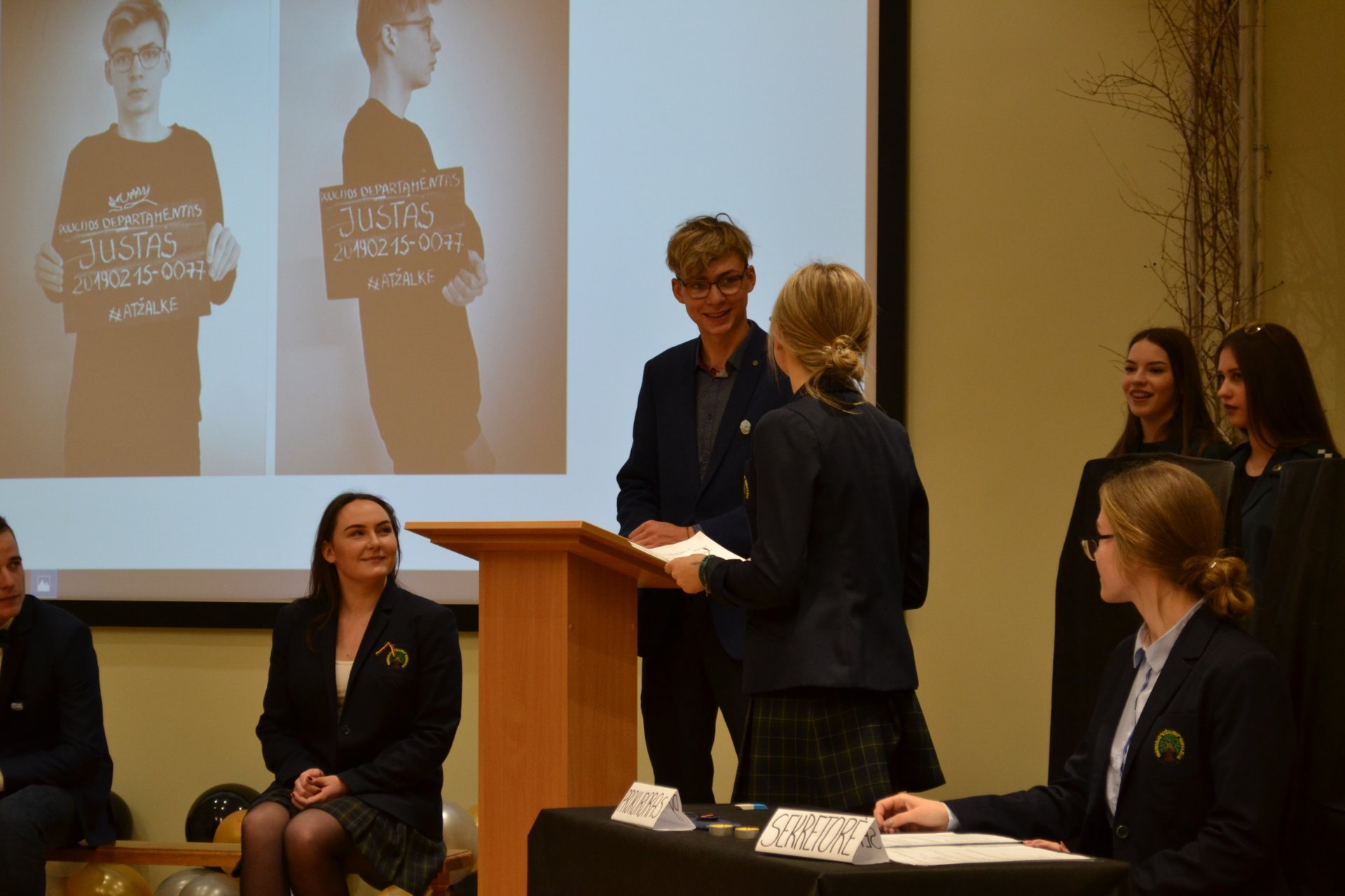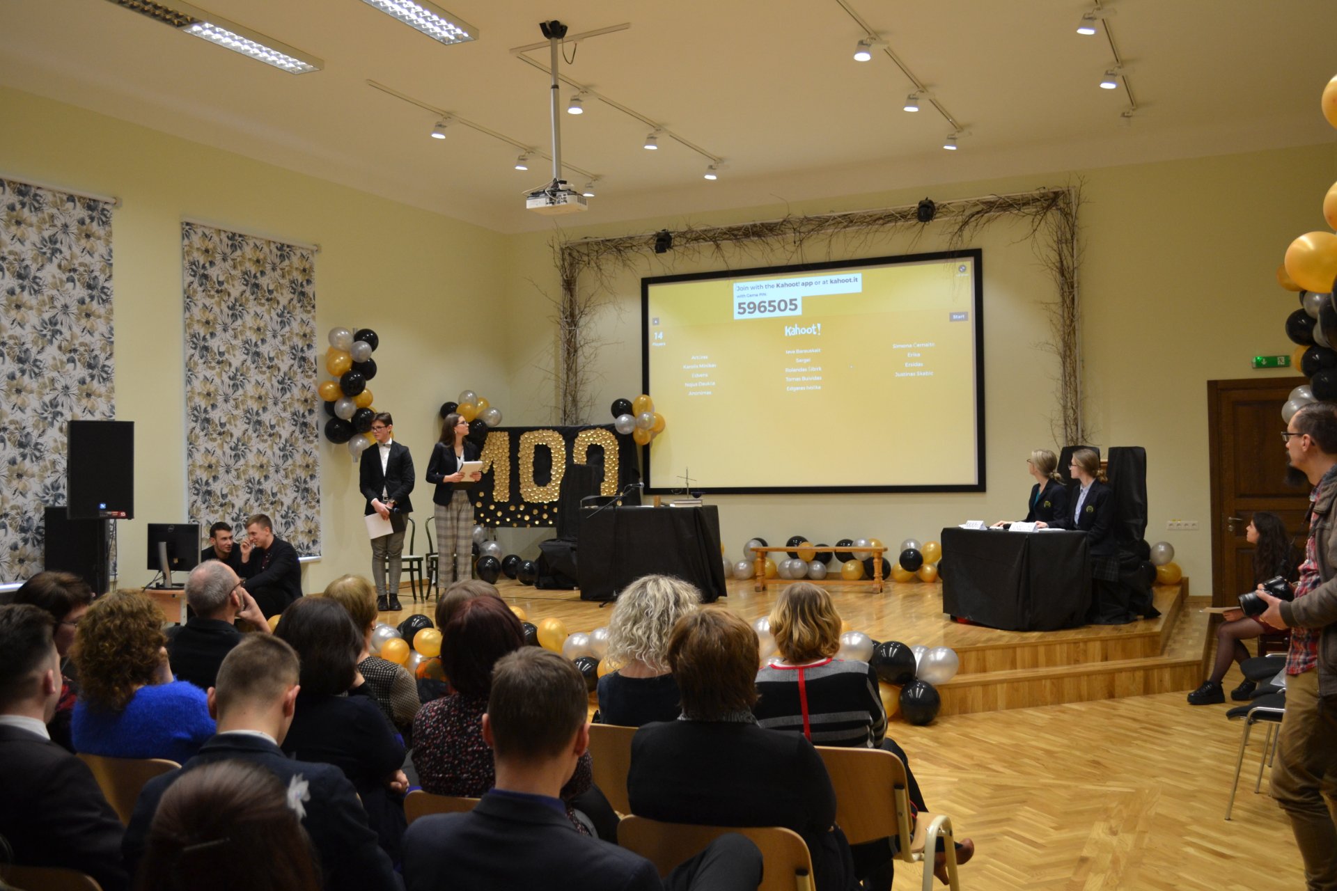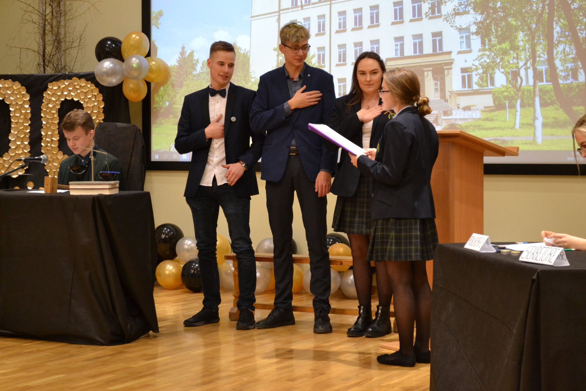 Po pamokų gimnazijos bendruomenė skubėjo į posėdžių ir konferencijų salę. Ketvirtokai buvo pakviesti į „teismą“, bet auklėtojoms pavyko juos apginti ir auklėtiniai buvo išteisinti. Vėliau abiturientai naudodamiesi programėle „Kahoot“ atsakė į penkiolika klausimų, prižadėjo nebedaryti jokių blogų darbų ir gavo pusatestačius.