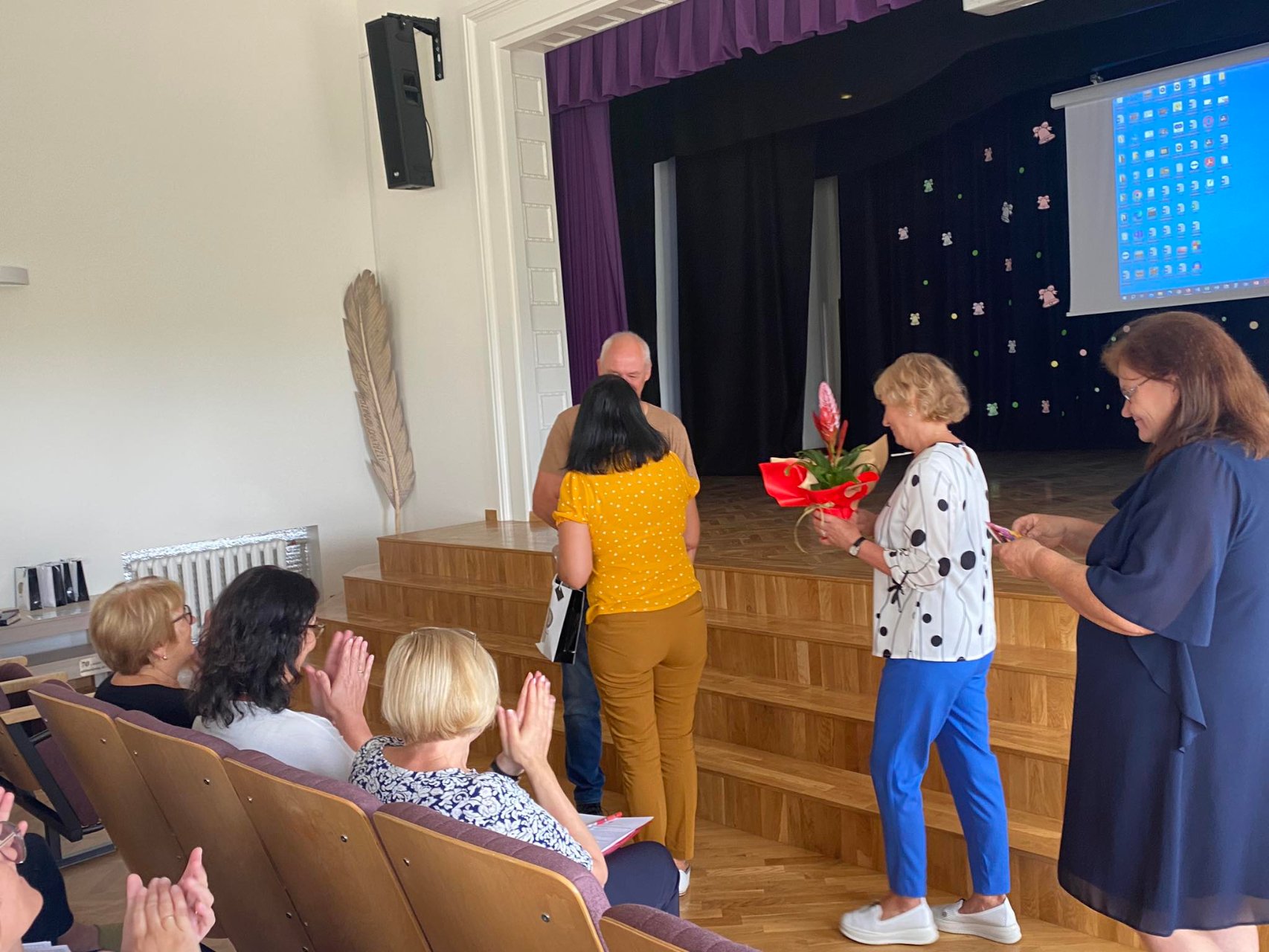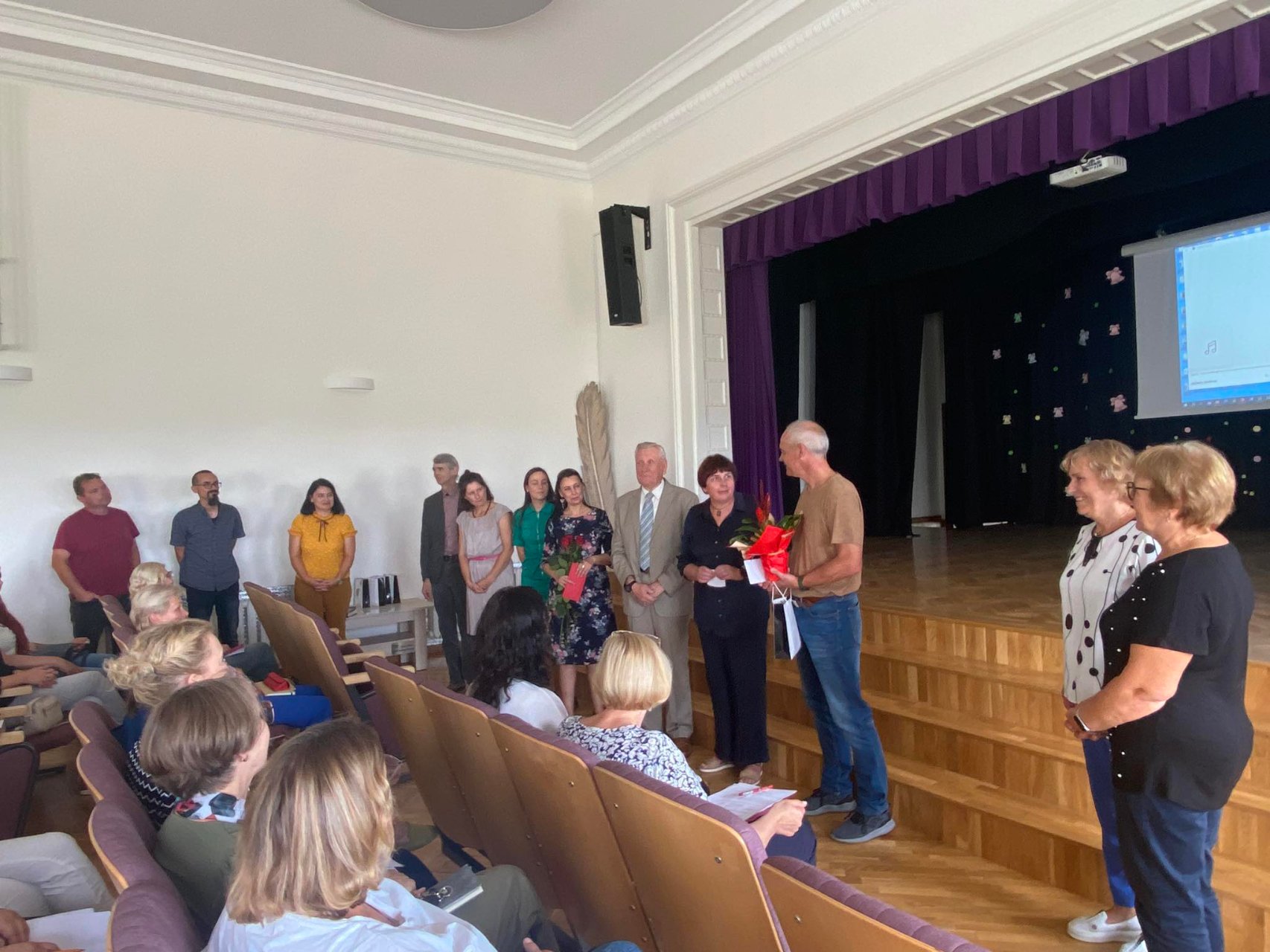 Rugpjūčio 30 dieną dar vasaros spalvų fone gimnazijos mokytojai, kupini jėgų ir įkvėpimo, pasiryžę vėl vesti į gyvenimą kitus, kartu su mokiniais augti ir džiaugtis, susirinko į mokytojų tarybos posėdį prieš naujuosius mokslo metus. Pradžioje direktoriaus pavaduotoja ugdymui Rasa Bertulienė pristatė darbotvarkę. Po to žodį tarė gimnazijos direktorė Asta Valuntienė, kuri pasidžiaugė visais sugrįžusiais į didelį būrį, viltingai nusiteikusiais, besišypsančiais, nes taip svarbu pajusti širdžių šilumą, matyti, girdėti vieniems kitus. Gimnazijos bendruomenės telkimo grupė jubiliejaus proga pasveikino fizinio ugdymo mokytoją Rimvydą Rimkų, taip pat pedagogą šiltai apkabino metodinės grupės nariai, nuoširdžiai apie jo gyvenimo kelią papasakojo kolegė, prancūzų kalbos mokytoja Inga Ušinskaitė. Be to, tęsiamos tradicijos – kardelio žiedas pražydo mokytojų Gražinos Gasiūnienės, Simona Čemoškaitės, Inesos Tamulionytės-Poškauskienės, sulaukusių jubiliejinio darbo stažo, rankose, direktorė įteikė atminimo dovanėles. Pristatyti ir pasveikinti nauji kolegos – etikos mokytoja Eglė Lebedienė ir Rokas Venckus, kuris mūsų gimnazistams atskleis filosofijos pasaulio subtilybes. Beje, Roko nebuvo, tačiau jį, kaip paprastą, nuoširdų ir kultūringą žmogų, apibūdino buvusi auklėtoja, prancūzų mokytoja Inga Ušinskaitė. Posėdis tęsėsi - direktoriaus pavaduotoja ugdymui Rasa Augustinaitienè aptarè PUPP ir egzaminų rezultatus, pateikė lyginamąją statistiką, direktoriaus pavaduotoja ugdymui Rasa Bertulienė pristatė ugdymo planą, gvildeno kitus klausimus.