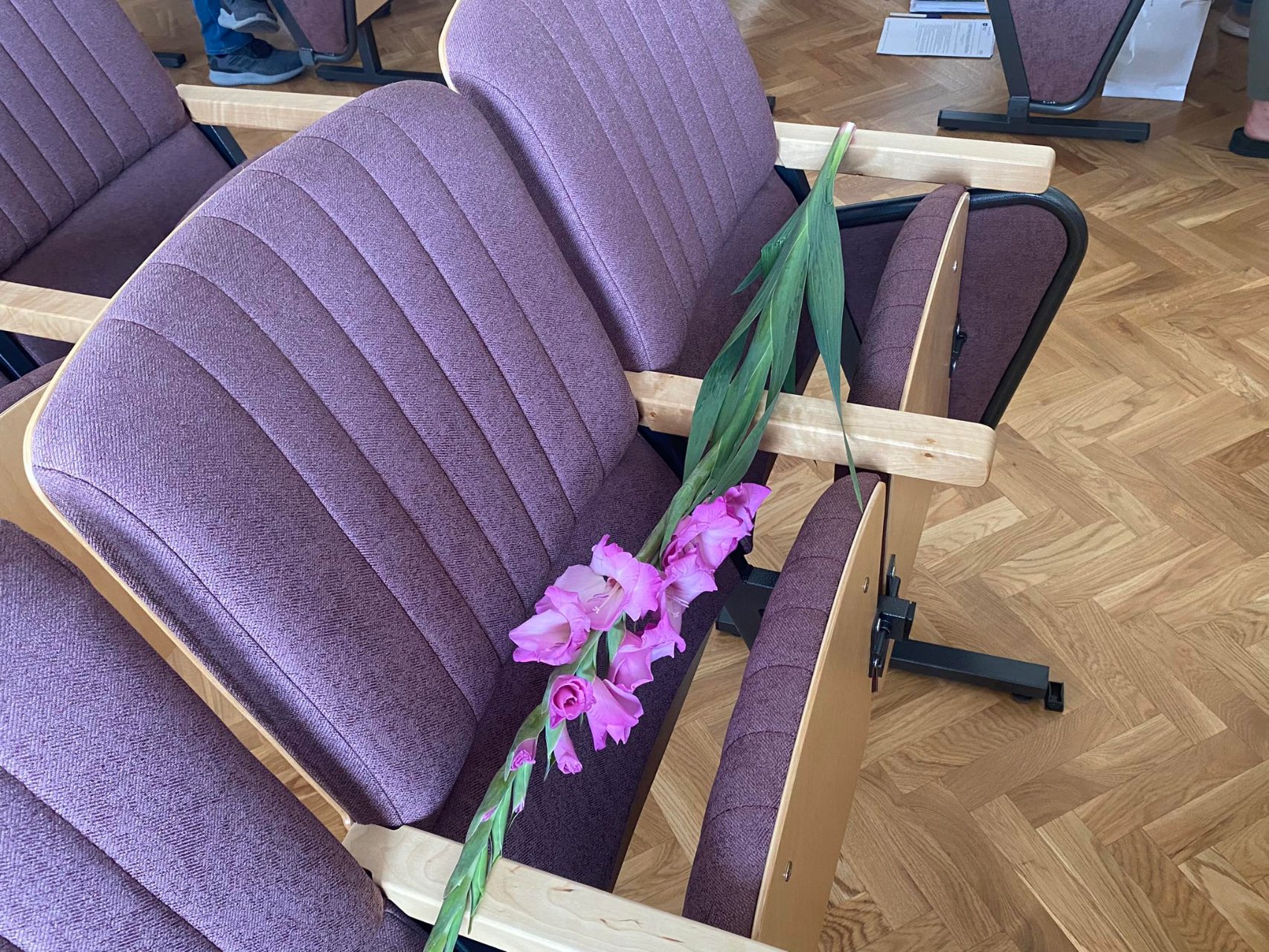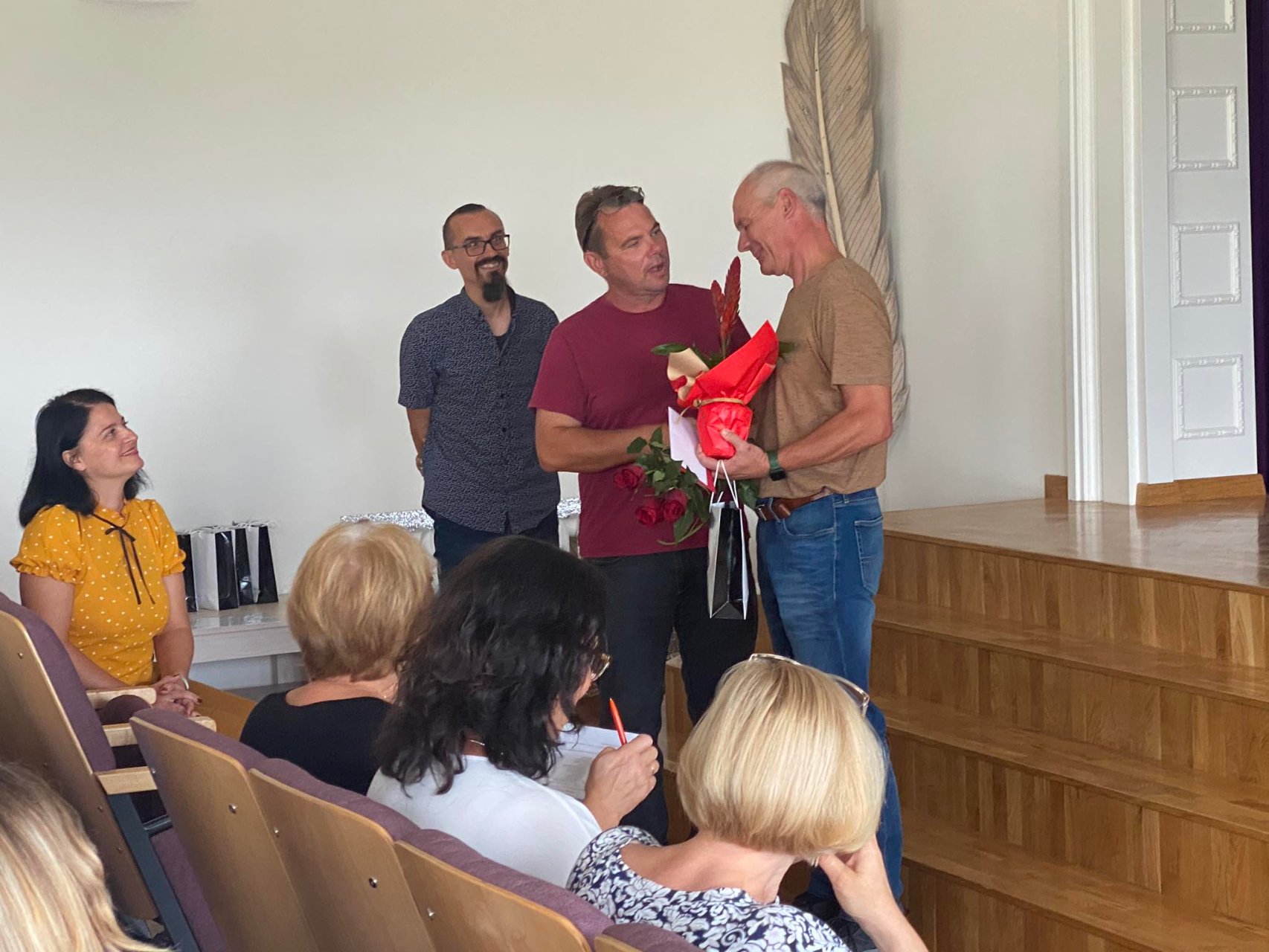 Lietingą, bet jaukią liepos 22-osios popietę Pakruojo „Atžalyno“ gimnazijos LXXV laidos abiturientai prieš šv. Mišias rinkosi į mokyklą. Fojė jų laukė gimnazijos muziejaus vadovas Vidutis Skirmantas, kuris pakvietė juos pasirašyti Garbės knygoje. Abiturientai mielai sutiko ir palinko prie knygos...