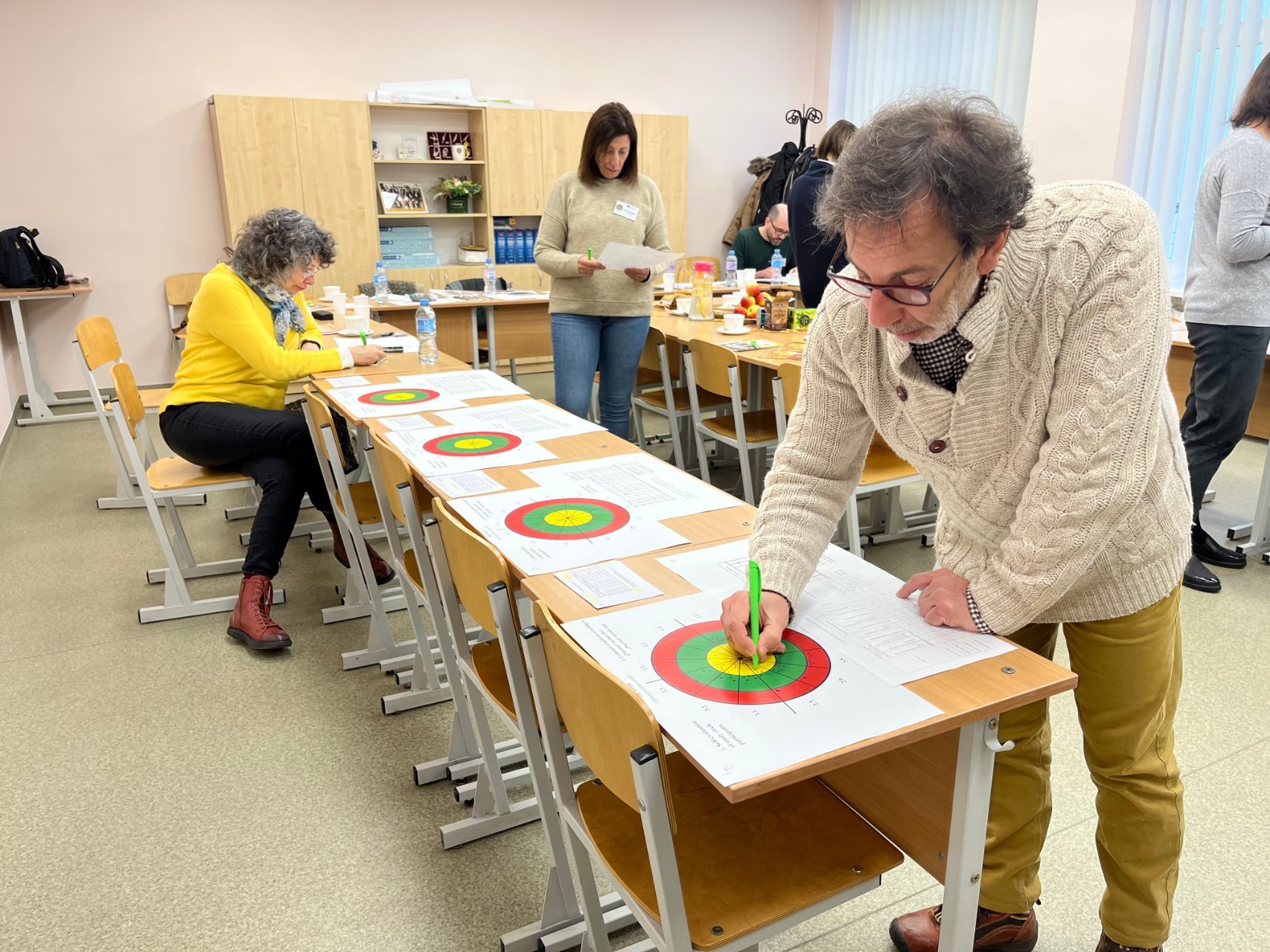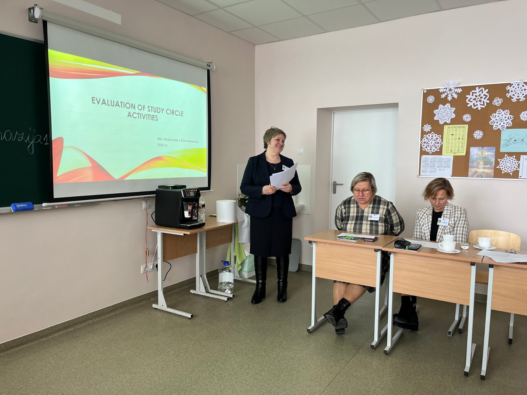 Tarptautinė mokytojų komanda dalyvavo seminare „Vertinimas mokymosi sėkmei“. Jį vedė VU Šiaulių akademijos doc. dr. Ramutė Gaučaitė. Jame labai profesionaliai, pateikiant daug naudingų įžvalgų, pavyzdžių, buvo kalbama apie mokinių įtraukimo į į(si)vertinimo procesą būtinumą ir būdus, susitarimų, pamokos planavimo, galvojant apie sėkmės kriterijus, svarbą. Aptarti ir statuso, autonomijos, aiškumo, susietumo, socialinio teisingumo principai, kurių būtina laikytis, siekiant, kad vertinimas skatintų mokymąsi. Be to, paanalizuoti ir vertinimo instrumento (vertinimo rubrikos) kūrimo niuansai. Kartu su Pakruojo „Atžalyno“ gimnazijos mokytojais kolegos iš kitų šalių dalijosi gerąja vertinimo, kai organizuojami trumpalaikiai tarpdalykiniai gamtos mokslų projektai, patirtimi. Vertinimo įrankį, tinkamą įsivertinti ir vertinti studijų ratelių veiklų metu, kolegoms pristatė mokytojos Rasa Bertulienė ir Rita Vinskūnaitė. Po to organizuotose praktinėse veiklose – per mokinių pristatymus svečiai galėjo šiuos įrankius išbandyti, aptarti, teikti pasiūlymus.