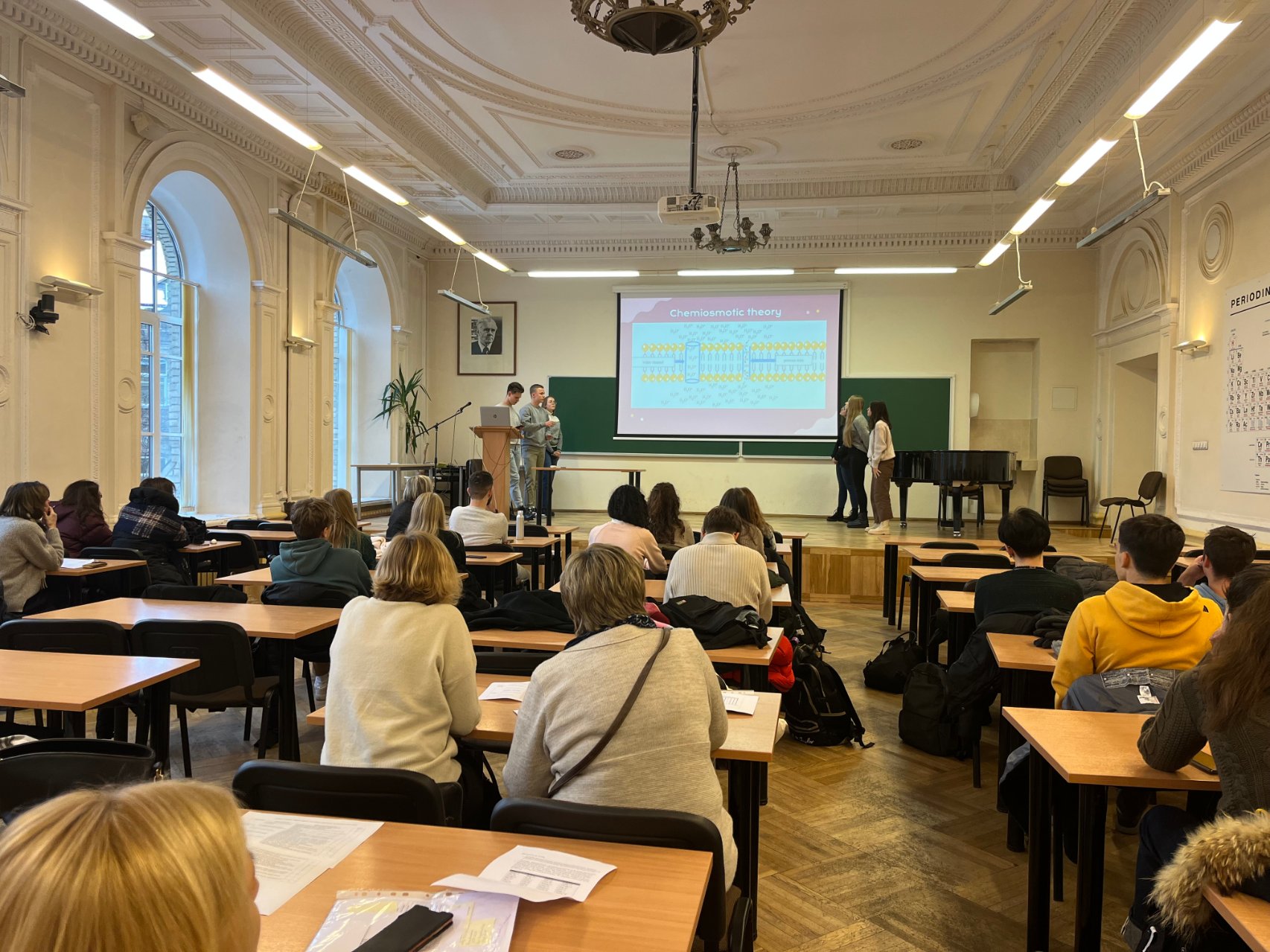 Mokinių mokymosi savaitė pradėta įsimintinu, žaismingu komandos formavimo rytmečiu, kurį organizavo mokytojos Inesa Tamulionytė-Poškauskienė bei Roma Stočkė. Vėliau išklausyti visų mokyklų komandų pristatymai apie studijų ratelių veiklas, organizuotas prieš atvykstant į susitikimą. Šie pasidalijimai buvo tarsi įžanga į tarptautinių studijų ratelių užsiėmimus Pakruojyje. Mokiniai, dirbdami 4 tarptautinėse grupelėse (po 6 mokinius), skaitė ir aptarė straipsnius, susijusius su T. Grotuso gyvenimu bei atradimais, parengė grupių darbo pristatymus. Labai norisi paminėti, kad visi pristatymai vyko Vilniaus universiteto Gamtos ir geomokslų fakultete. Čia dekanas profesorius A. Kareiva pakomentavo mokinių darbus, pasakojo apie tuos mokslininko darbus, kurie dar liko nepaminėti. Profesoriaus iniciatyva mokiniams buvo pristatytos laboratorijos, jų įranga. Pratęsdami studijų ratelių apie T. Grotuso atradimus tyrinėjimus, mokiniai vyko į VU Šiaulių akademijos STEAM centro užsiėmimus. Atlikti du tiriamieji darbai „Vaivorykštė delne“ bei „Kokie augalų pigmentai dalyvauja fotosintezės procese?“