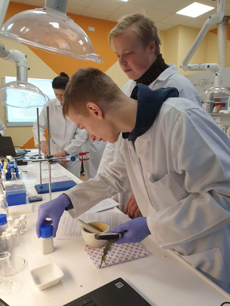 Gimnazijos mokinių komandos nariai: Agnietė Kapučinskaitė, Elinga Gendvilaitė, Matas Šimanskis ir Julius Šapoka, mokymosi veiklose tobulino eksperimentinio darbo įgūdžius. Gimnazistai tarptautinėse komandose generavo idėjas, planavo integruotus gamtos mokslų eksperimentus, juos atliko ir pristatė rezultatus.