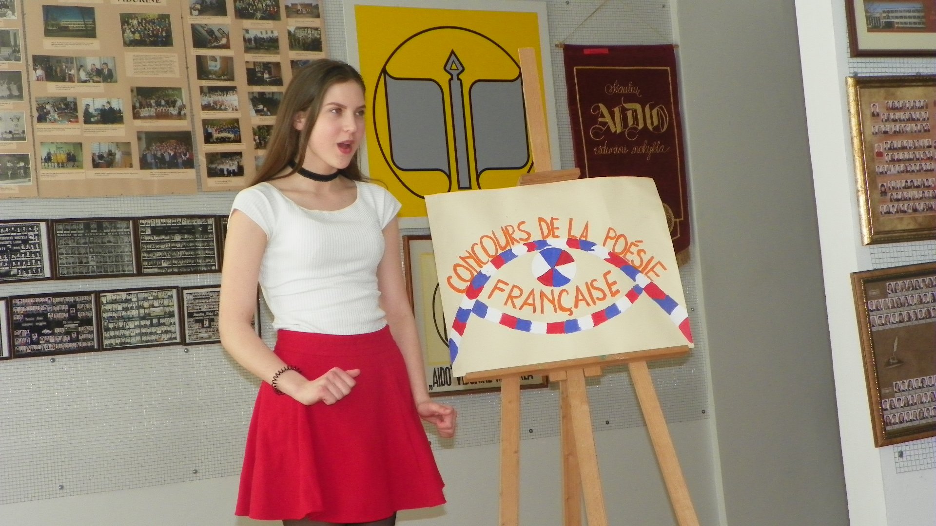 Jau penktąjį pavasarį Šiaulių universiteto gimnazija sukviečia prancūzų kalbos poezijos mylėtojus. Maloniai šiltą ir saulėtą gegužės 3-iosios popietę su Kamile Augėnaite vykome į Šiaulių miesto prancūzų kalbos raiškiojo skaitymo konkursą. Šio konkurso sumanytoja – Šiaulių universiteto prancūzų kalbos mokytoja Dalia Šarkūnaitė.