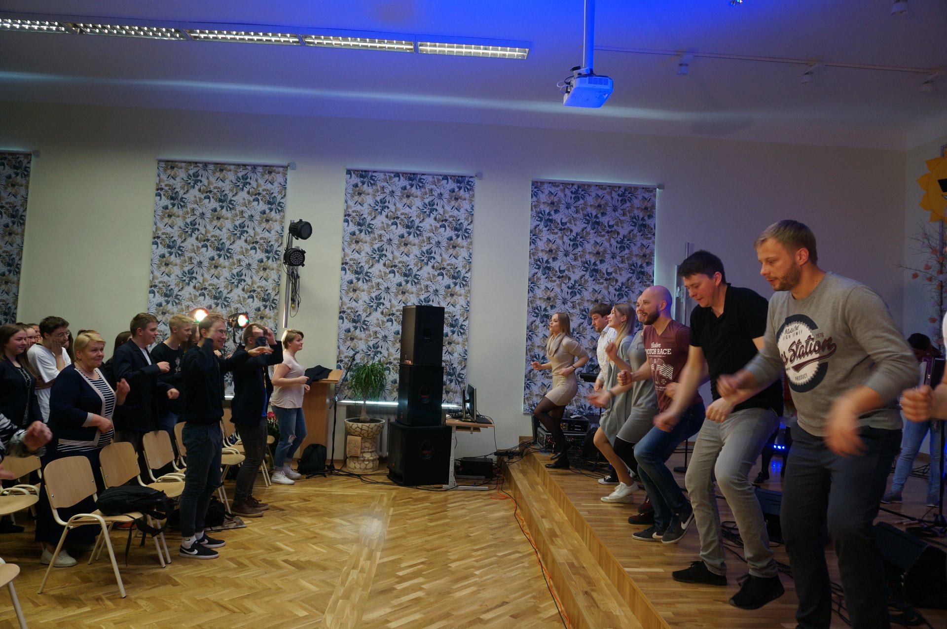 Mūsų jaunimas kartu su aktoriais ne tik dainavo, bet ir žaidė. Nuotaikingai skambėjo daina „Išėjo tėvelis į mišką“, kuri virto linksma pramoga – žodžius keitė gestai. Vienas iš atlikėjų šį užsiėmimą pavadino kūno kultūros pamoka.