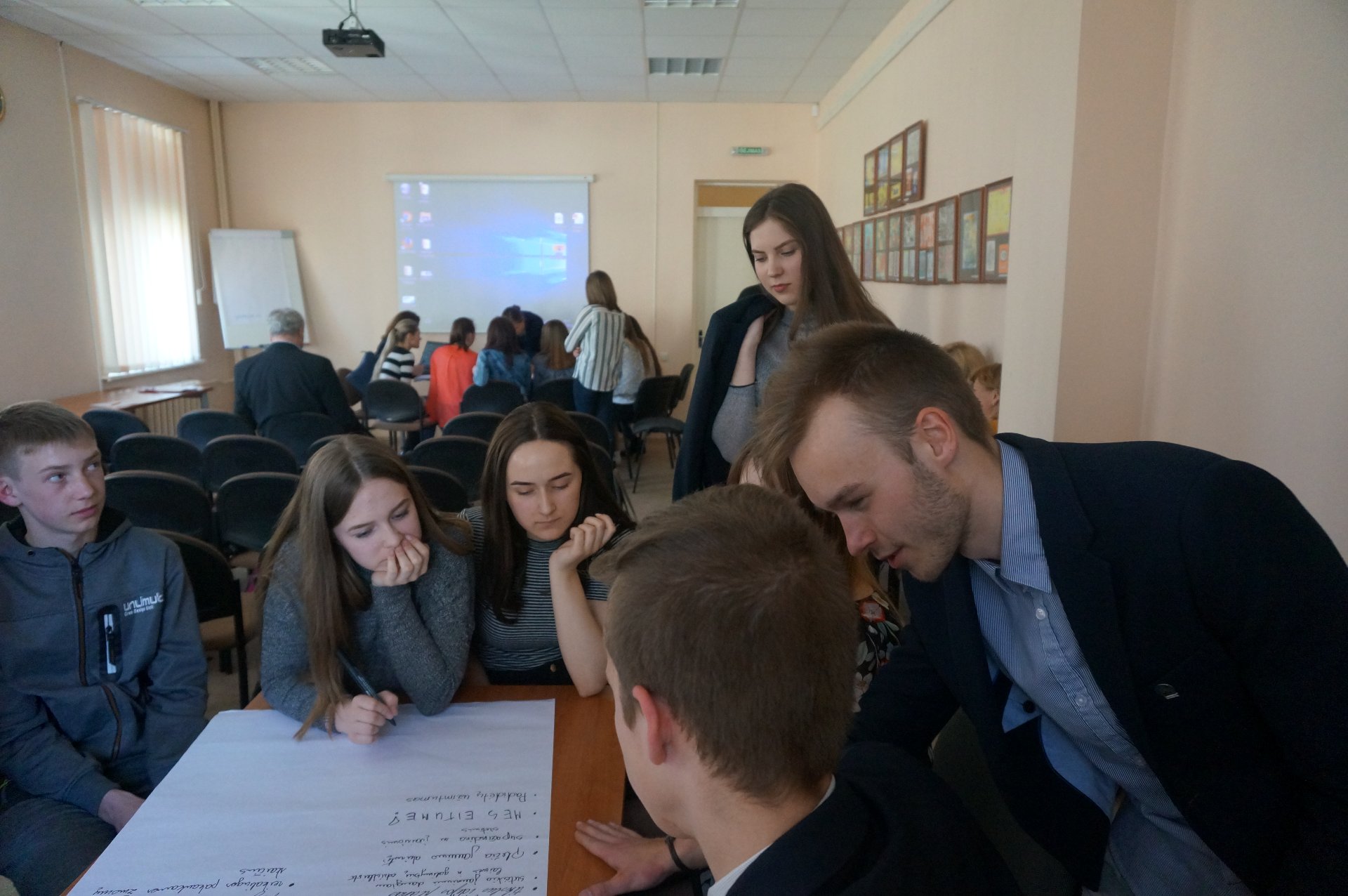 Visos pristatytos idėjos vėliau aptartos grupėse. Kiekvienos grupės nariai diskutavo apie visas tris pasiūlytas idėjas, analizavo kiekvienos stiprybes ir silpnybes, grėsmes ir galimybes. Grupių moderatoriai – atviro jaunimo centro socialinis pedagogas Vytautas Girdzijauskas, studentė Ugnė Bučaitė ir „Atžalyno“ gimnazijos psichologė Inga Jankauskienė – pristatė išnagrinėtas idėjas.