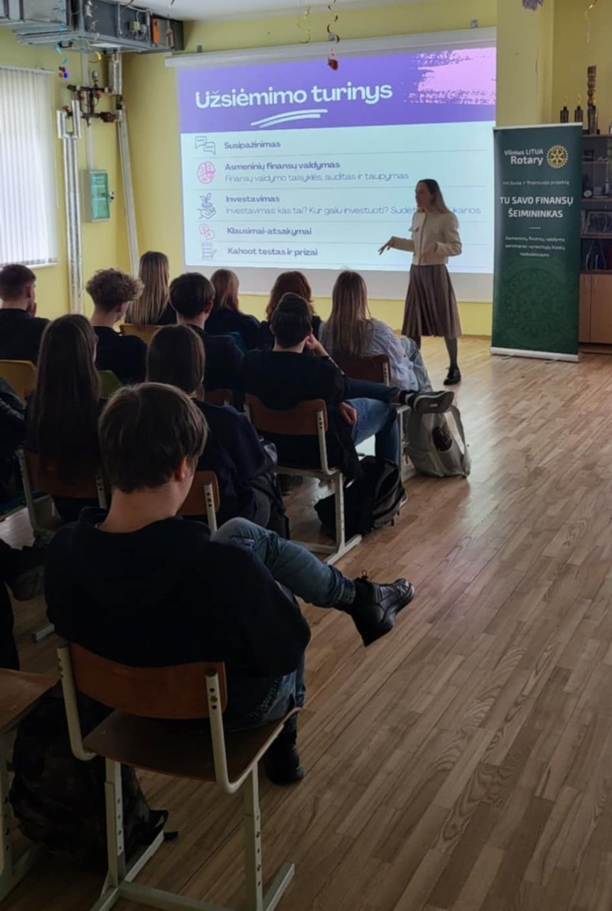Kovo 10 d. Pakruojo „Atžalyno“ gimnazijoje vyko susitikimas su „Vilnius Litua Rotary“ atstovais, kurie gimnazistams skaitė paskaitą „Tu – savo finansų šeimininkas“. Lektorės akcentavo finansinio raštingumo svarbą jaunuoliams nuo 18 metų, pristatė investavimo pagrindus, vertybinių popierių veikimo principus, asmeninių finansų valdymą bei sąskaitų tvarkymą.