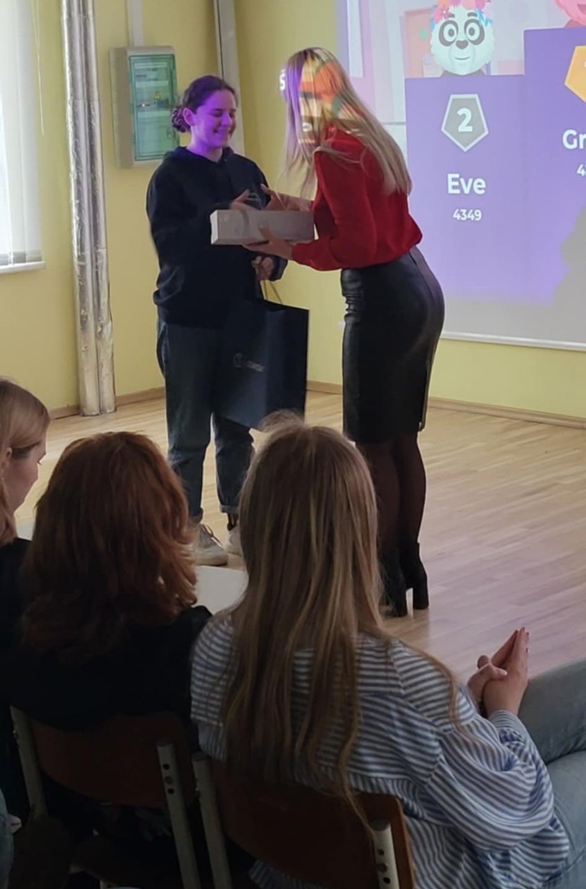 Susitikimo pabaigoje vyko viktorina„Kahoot“ platformoje, aktyviausi ir geriausiai pasirodę dalyviai buvo apdovanoti „Rotary“ rėmėjų dovanomis.