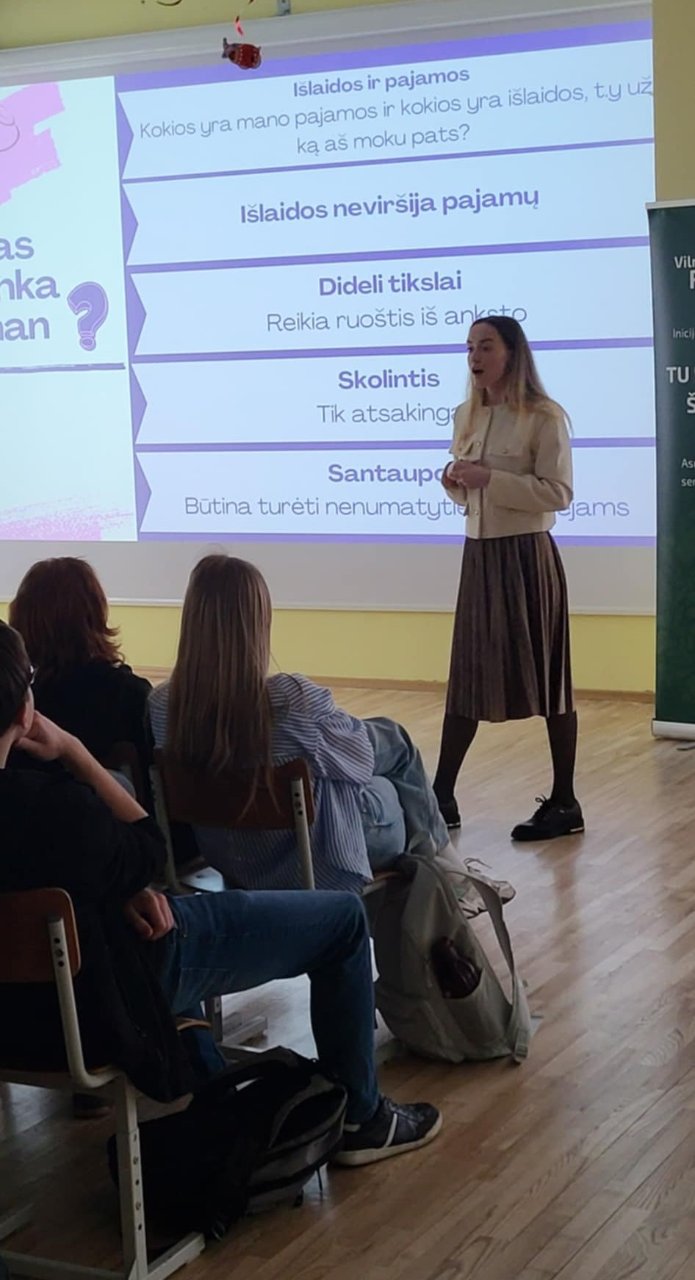 Mokiniai išgirdo naudingų patarimų, kaip tapti finansiškai raštingiems, apsaugoti savo santaupas ir netgi iš jų uždirbti. Taip pat buvo aptartos investavimo galimybės, kriptovaliutų samprata, diversifikacijos svarba bei dividendų nauda.