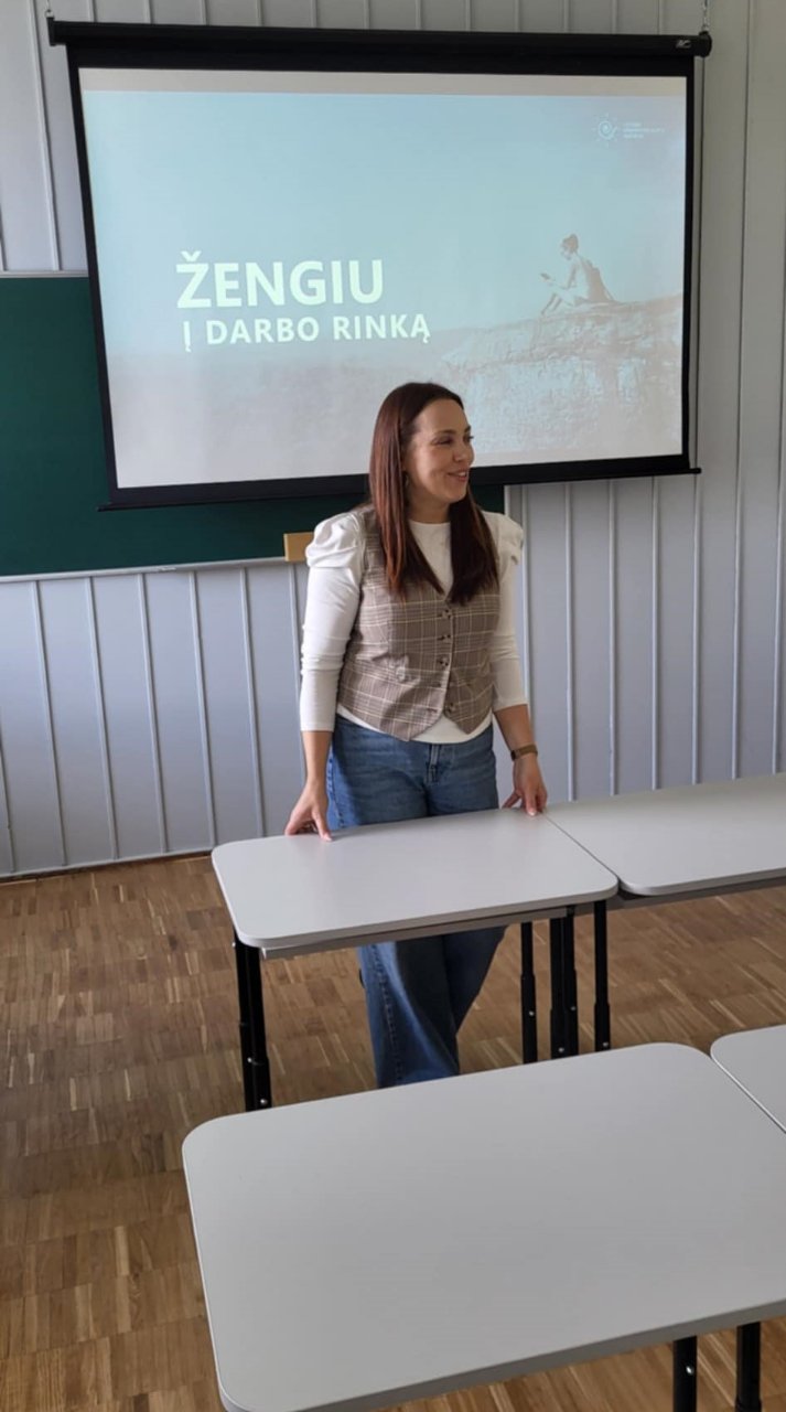 Lina Borunovienė sudomino paskaita „Žengiu į darbo rinką“. Tai buvo aktuali tema tiems, kurie galvoja apie savo pirmąjį darbą, ypač artėjant vasaros atostogoms. Mokiniai sužinojo, kaip pasiruošti ir pradėti darbo paiešką, į ką atkreipti dėmesį per darbo pokalbį ir kur galima rasti patikimų veiklos pasiūlymų.