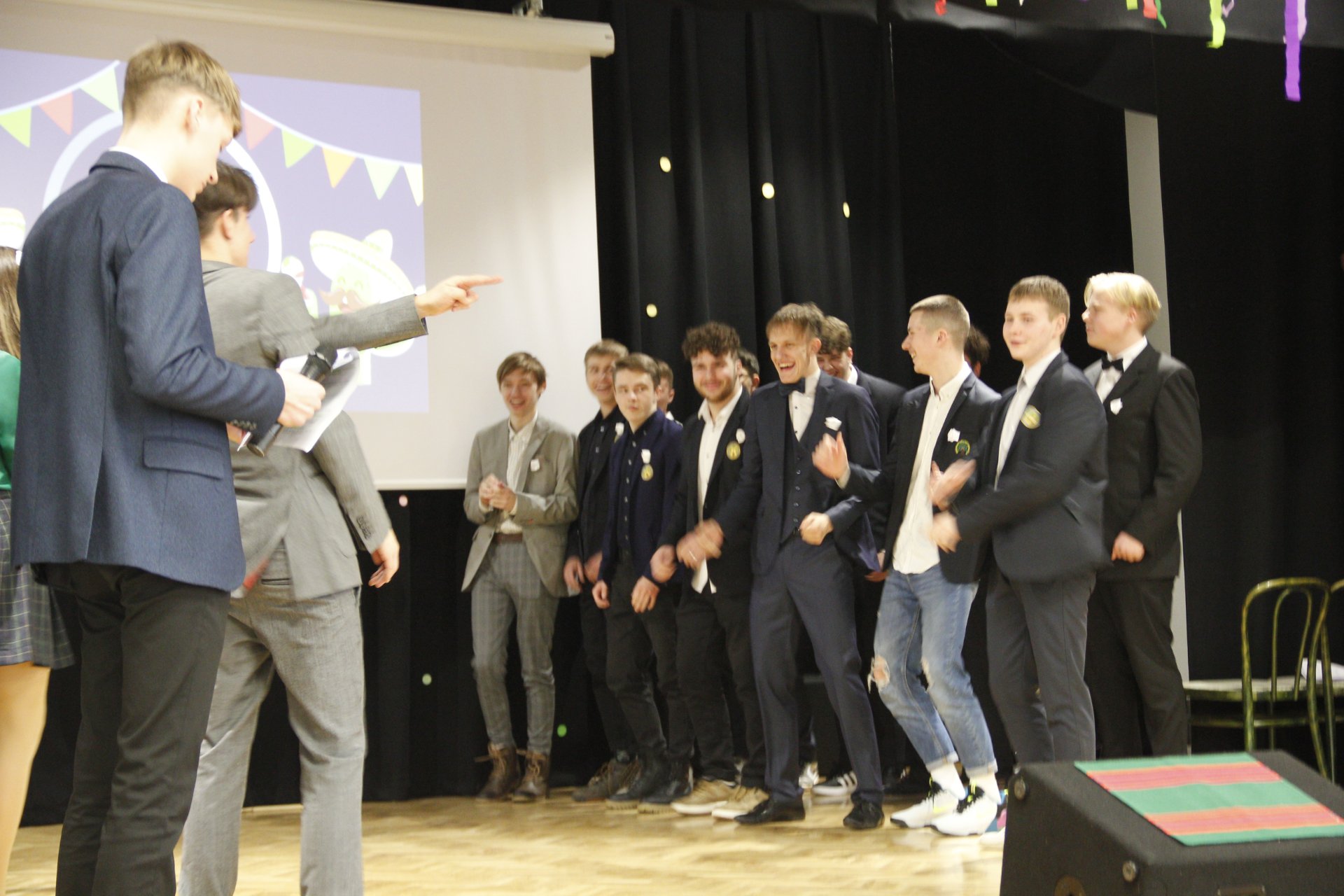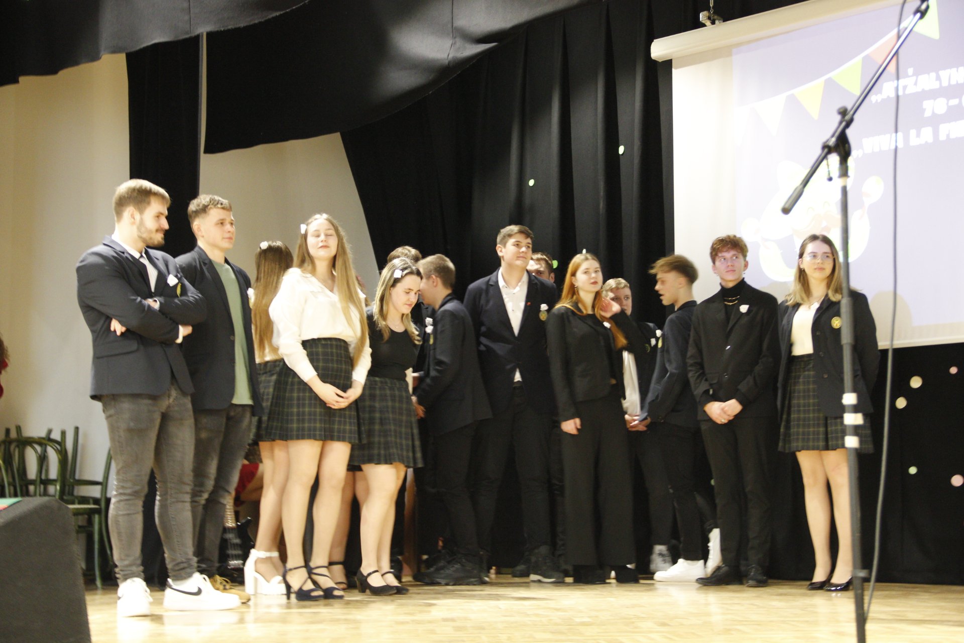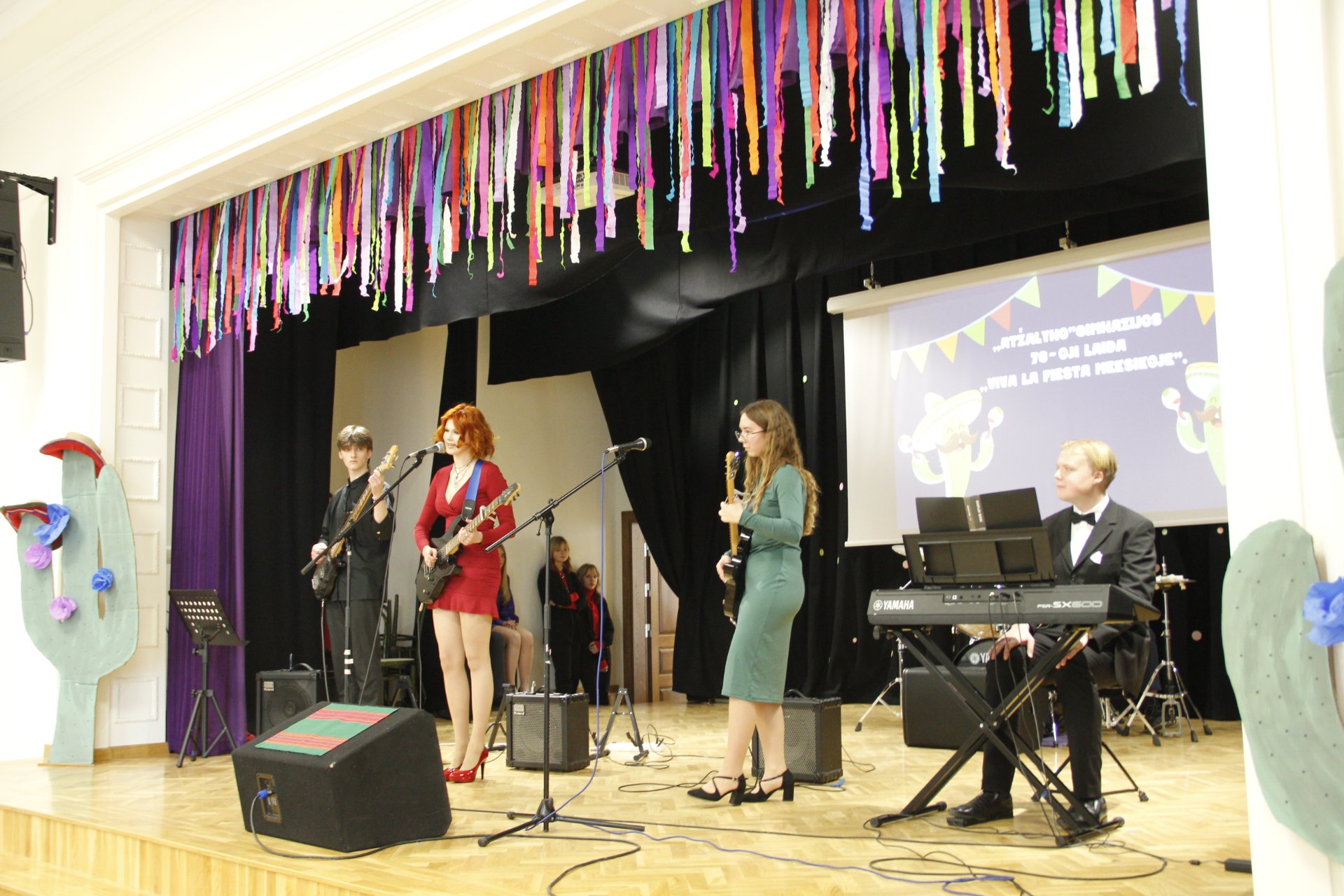 Po pamokų aidint karštiems plojimams į aktų salę žengė ketvirtokai ir jų kuratorė Inesa Tamulionytė-Poškauskienė. Po vedėjų pasveikinimo renginio pradžioje kūrinį dovanojo ukulėlių ansamblis „Fireflies“. Jautrų sveikinimo žodį tarė gimnazijos direktorė Asta Valuntienė, kuri teigė, kad nuo Šimtadienio iki egzaminų lieka labai mažai laiko, o dar labai daug reikia nuveikti. Gimnazijos vadovė teigė tikinti abiturientais, linkėjo, kad jie pirmiausia įrodytų sau, kad per ketverius metus suvokė nemažai gyvenimo tiesų, išmoko įvairių dalykų, kurių prireiks lekiant rytojaus keliais. Taip pat į ketvirtokus kreipėsi gimnazijos mokinių prezidentė Greta Gudaitė sakydama, kad Šimtadienis yra ypatingas laikas, kai prisimename praeitį ir žvelgiame į ateitį, todėl ji linkėjo gražių prisiminimų ir sėkmingos kelionės. Vėliau ketvirtokų kuratorės Inesos Tamulionytės-Poškauskienės laukė viktorina, kuri parodė, kiek gerai kuratorė pažįsta savo auklėtinius. Po gana neblogų atsakymų ji dėkojo ketvirtokų tėveliams už buvimą šalia, linkėjo dar neatsipalaiduoti, nes bus dar sunkių akimirkų, dėkojo mokytojams už kantrybę ir džiaugėsi visomis išgyventomis akimirkomis kartu su auklėtiniais, kuriems linkėjo nebijoti iššūkių, kurie ne tik užgrūdina, bet ir veda į priekį. Tada atėjo laikas pasirodyti ir patiems abiturientams. Pirmoji į sceną lipo IV c klasė. Vaikinams ir merginoms reikėjo pašokti „Macarena“. Po abiturientų pasirodymo per salę nuvilnijo grupės „Miražas“ atliekamo kūrinio garsai. Po to scenoje išvydome IV b klasę, kuriai reikėjo sukurti pasirodymą pagal grupės „Antikvariniai Kašpirovskio dantys“ dainą „Į Venesuelą“. Užduotis buvo įveikta ir jos atlikimas visiems sukėlė daug gerų emocijų. Galiausiai atėjo laikas pasirodyti ir IV a klasei. Jos laukė labai įdomi užduotis - sukurti ir padainuoti serenadą savo kuratorei, tačiau tam buvo dar viena sąlyga - kūrinį atlieka vaikinai, o merginos palaiko juos šokdamos. Toks ketvirtokų pasirodymas neliko nepastebėtas, jis sulaukė didelio palaikymo. Renginiui įsibėgėjus, į sceną lipo ukulėlių ansamblis, o po jų - IV a klasės gimnazistė Aleksandra, kuri atliko dainą pritardama gitara. Po šių pasirodymų prasidėjo savanorių užduotys. Pirmos užduoties sąlyga buvo tokia, kad iš duotų medžiagų vaikinai turi sukurti svajonių merginos modelį, o merginos - vaikino. Po modelių pristatymo žiūrovams buvo organizuota viktorina apie Meksiką. Jai pasibaigus dainą atliko grupė „Code A“. Tada trys savanorės merginos gavo „skanią“ užduotį. Joms teko ragauti organizatorių sumaišytų kokteilių ir atspėti jų sudėtį. Trečia užduotis buvo susijusi su KET klausimais, o paskutinis išbandymas pareikalavo rankų miklumo ir taiklumo – savanoriams reikėjo ant kaktuso užmesti žiedus. Sėkmingas buvo jau antras bandymas, bet visi vaikinai užmetė vienodą skaičių žiedų ir įrodė, kad laimėjo draugystė. Renginiui artėjant į pabaigą, buvo išdalyti pusatestačiai, kurie dar ilgai primins Šimtadienio šventę. Atėjo laikas žodį tarti ir patiems abiturientams. Nuoširdžiai padėkota „Atžalyno“ gimnazijos direktorei Astai Valuntienei, direktoriaus pavaduotojoms ugdymui Rasai Augustinaitienei ir Rasai Bertulienei už vadovavimą ir paramą, kuri leidžia augti bei tobulėti, choreografijos mokytojai, trečiokų kuratorei Audronei Geležinytei-Šniukienei už kūrybingumą, profesionalumą, nepakartojamą renginį, kuratorei Inesai Tamulionytei-Poškauskienei už palaikymą, dėmesį, meilę, tėveliams ir mokytojams už pastangas, pasiaukojimą, įkvėpimą. Džiaugiamės turiningu renginiu, kuriame skambėjo muzikos garsai, todėl nepaprastai dėkingi ir muzikos mokytojai Vaivai Klupšienei. Šventę baigė grupė „Miražas“, kuri atliko dainą „Dabar geriausi mūsų vakarai“. Manau, kad šis kūrinys buvo pasirinkta ne veltui, tai tarsi priminimas abiturientams ir visiems, kad turime mėgautis viskuo tol, kol galime.
