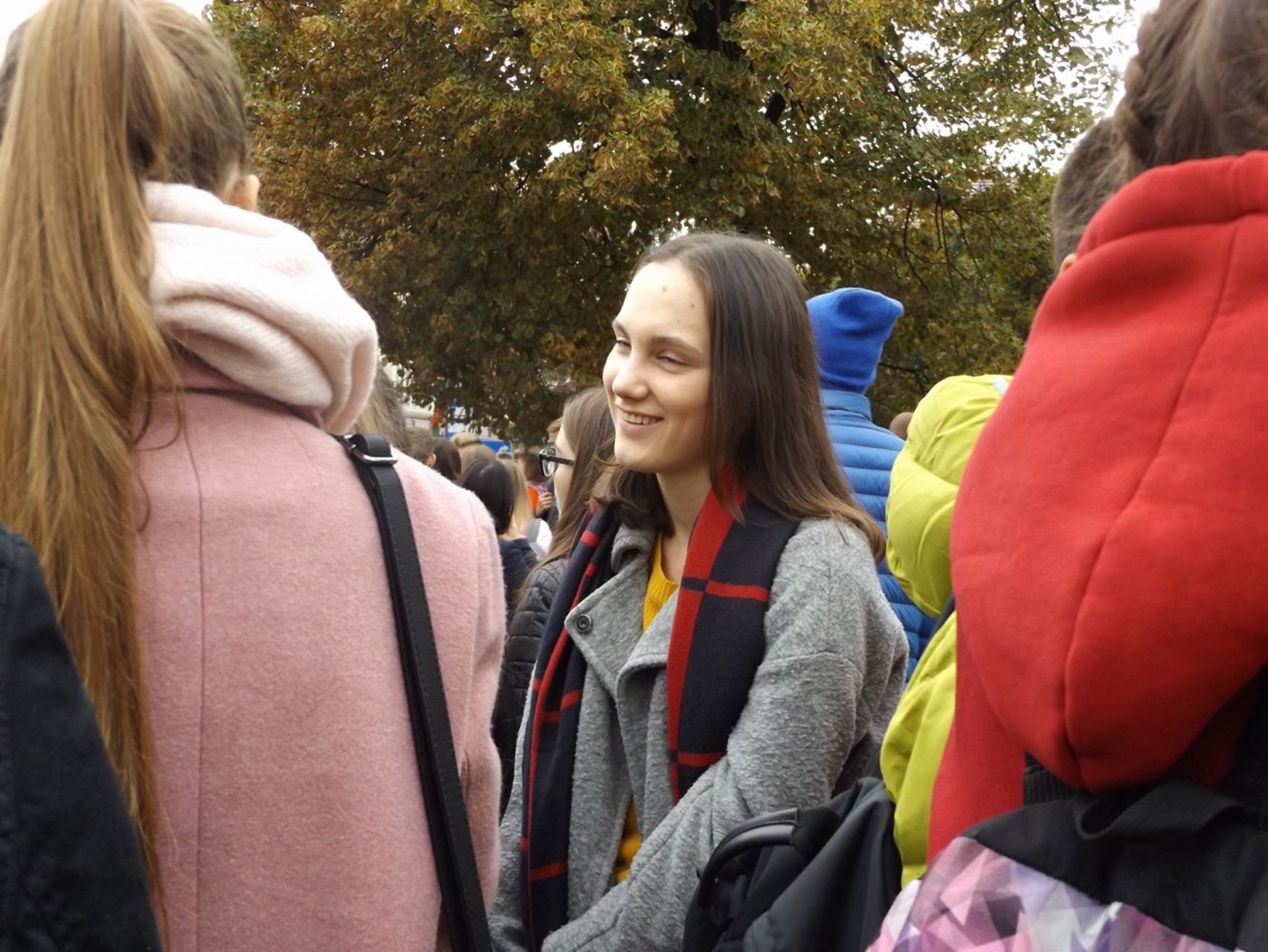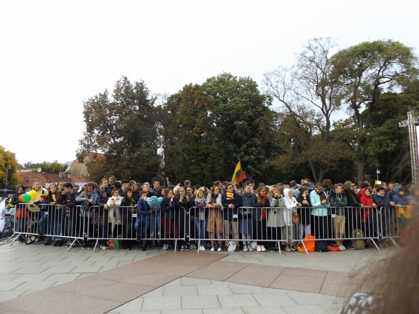 „Tik atvykę pajutome pakilią, linksmą minios nuotaiką. Oras buvo nekoks, bet šypsenų ir tikėjimo kupinų žmonių minioje nebuvo nei šalta, nei liūdna. Ekrane stebėjome Šventąjį Tėvą, važiuojantį Vilniaus gatvėmis, sveikinantį žmones. Pagaliau popiežiaus automobilis pasuko Katedros aikštės link. Visi stengėsi iš arčiau pamatyti Šventąjį Tėvą. Kai svečias atvyko, viskas tarsi nušvito, net pasirodė keli saulės spinduliai. Taigi buvo labai smagu dalyvauti istoriniame įvykyje.“
