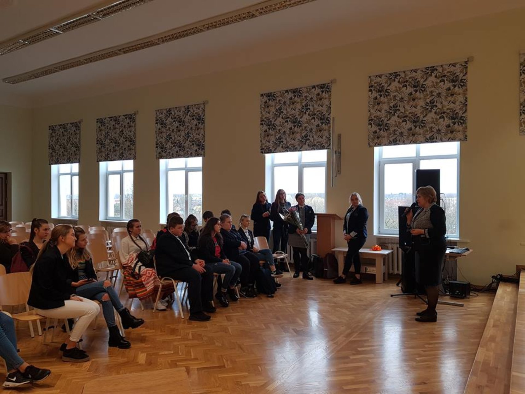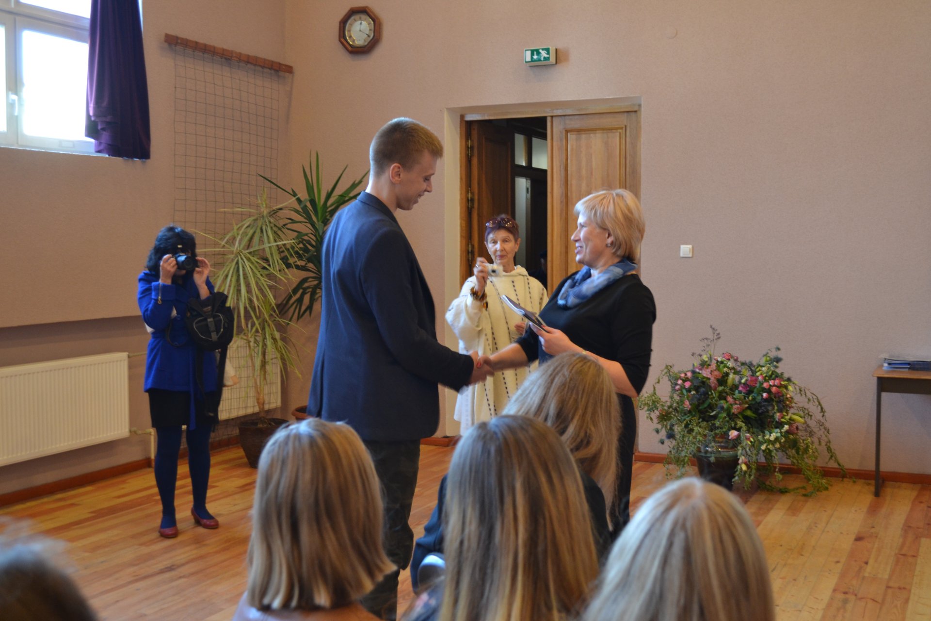 Spalio 23 d. įvyko gimnazijos mokinių prezidento rinkimų II turas. Balsavo 199 mokiniai. Kamilė Augėnaitė (IIIb) surinko 46,73 % balsų, o Gabija Jareckaitė (IIIc) turi 53,27 % gimnazistų palaikymą.