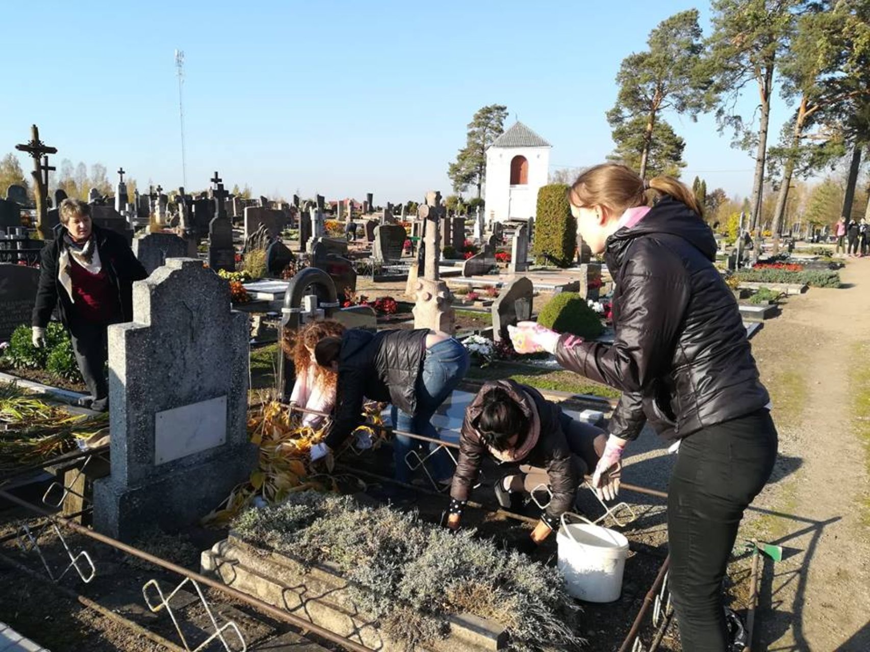 Saulėtą trečiadienio popietę samarietės kartu su vadove Laimute Činčiene vėl pasiryžo atlikti kilnų darbą – sutvarkyti apleistus kapus. Buvo ravimos piktžolės, grėbiami lapai, uždegamos žvakutės. Kada artėja Visų Šventųjų diena ir Vėlinės, gera žinoti, kad galėjome prisidėti prie išėjusiųjų atminimo. Už pagalbą nuoširdžiai dėkojame Pakruojo kapinių administratorei Eugenijai Muižienei.