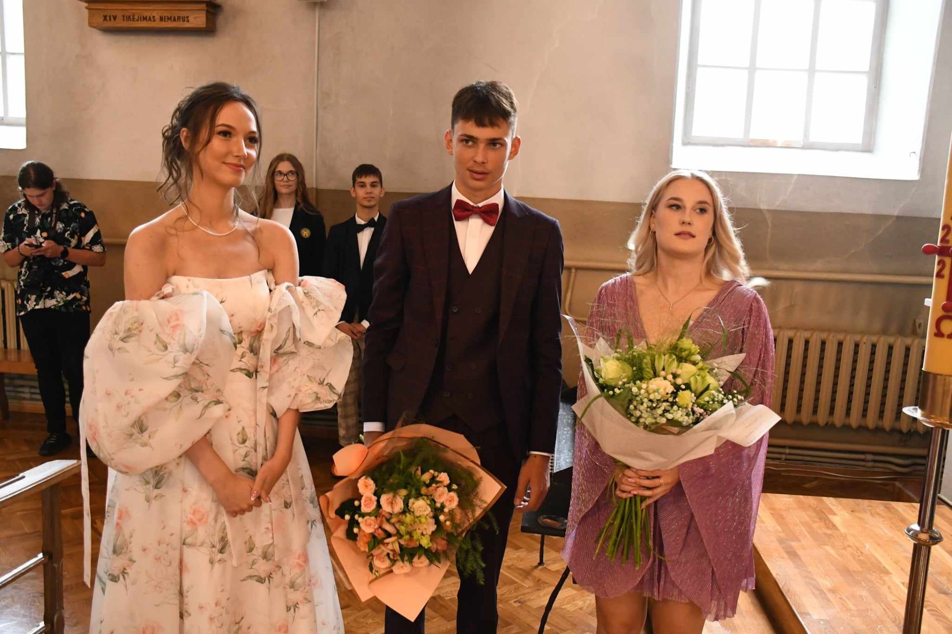 Dvi abiturientų grupės šoko valsą, kuris visada  ypatingas, nes atspindi juos pačius, jų vidinį pasaulį, mintis, jausmus, svajones, polėkį ir laisvę. Stebėdama besisukančias poras, jaudinosi choreografijos mokytoja Audronė Geležinytė-Šniukienė, ne tik kūrusi nuostabų šokio reginį, bet ir ruošusi brandos atestatų įteikimo šventės programą. Abiturientų vardu padėkos žodį gimnazijos administracijai,  mokytojams, tėveliams tarė abiturientė Livija Udrėnaitė. Renginį vedė trečiokai gimnazistai Ugnė Gelažiūtė ir Titas Stankūnas.