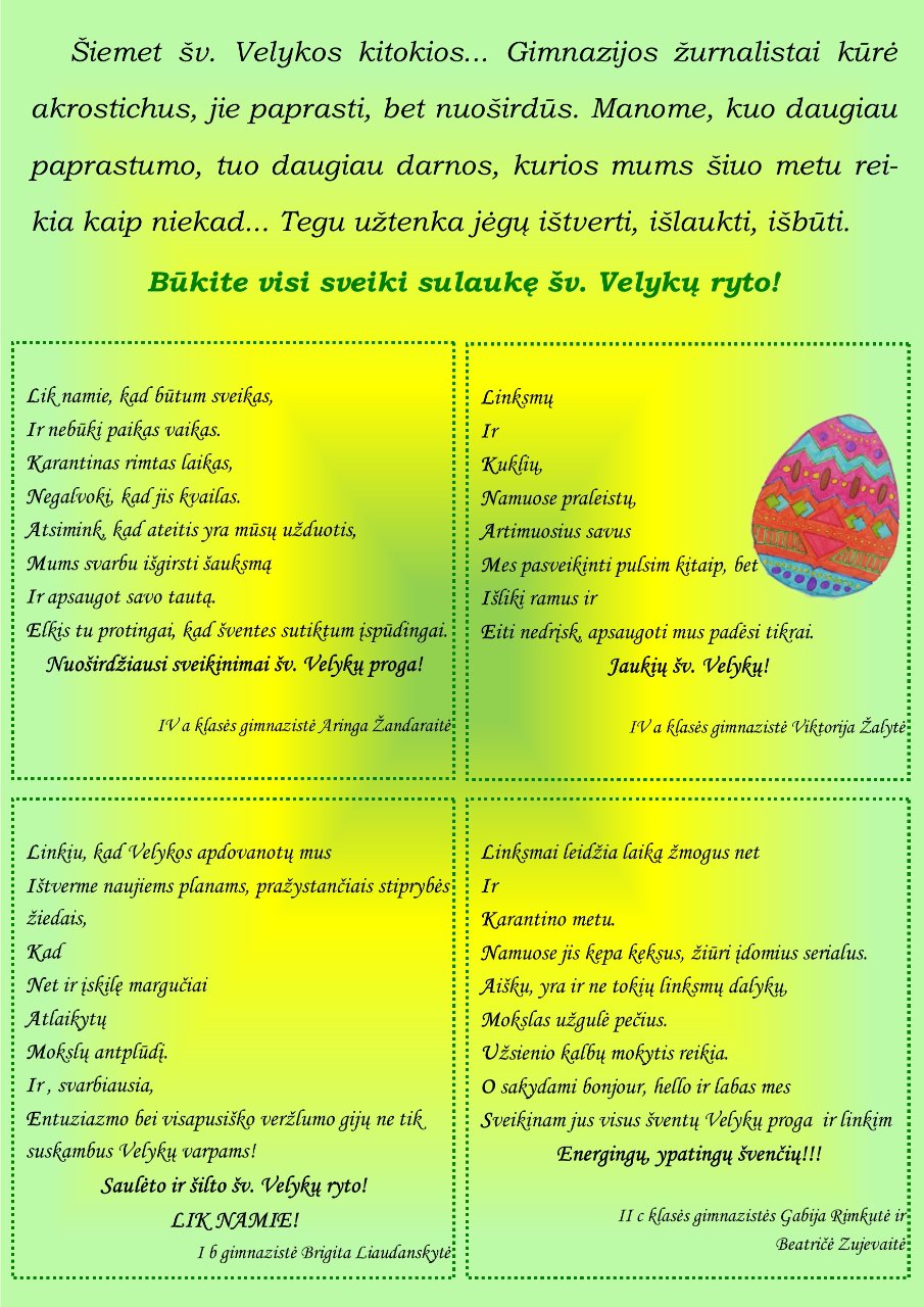 Prašymai mokytis gimnazijoje nuo 2020 m. balandžio 1 d. priimami el. paštu administracija@atzalynas.net (prašymas turi būti patvirtintas parašu ir kartu su kitais dokumentais nuskenuotas arba nufotografuotas, išsiųstas nurodytu el. paštu).
