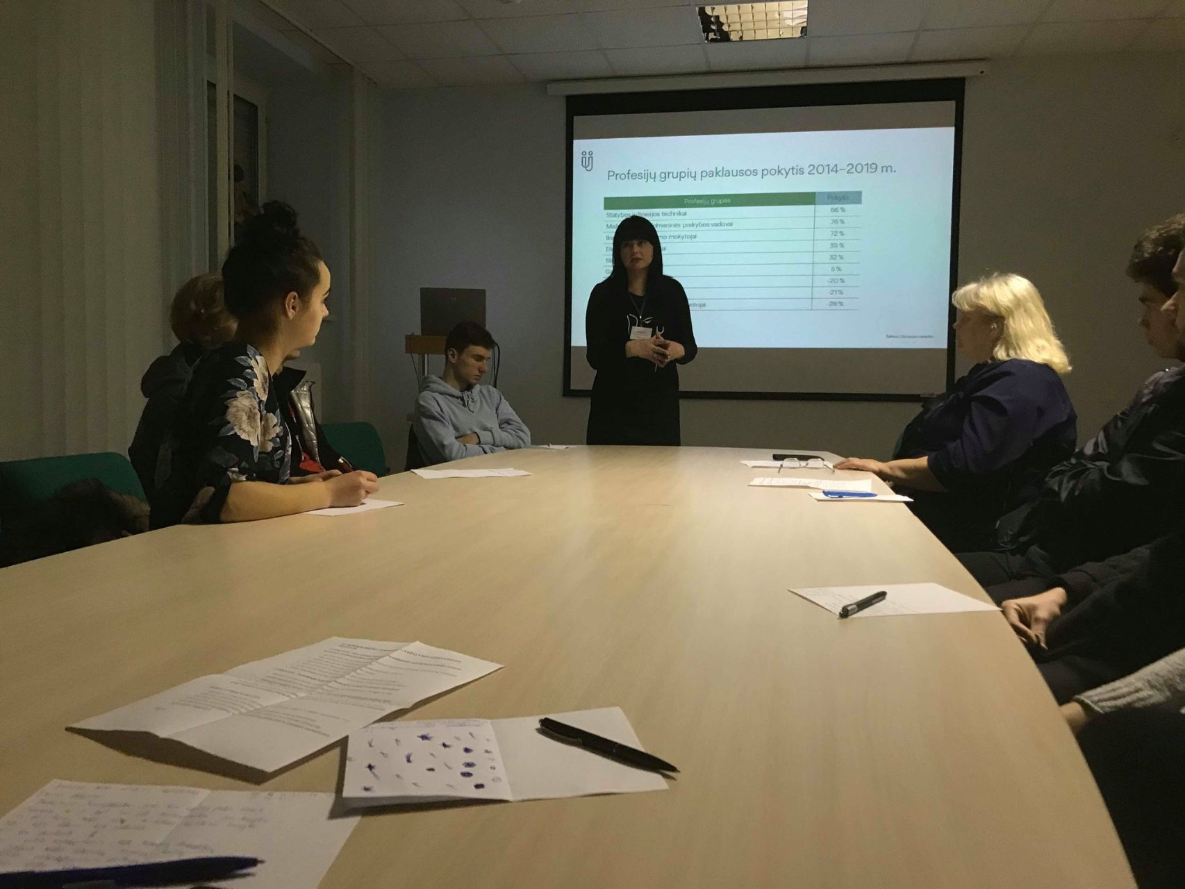 Į Pakruojo suaugusiųjų ir jaunimo švietimo centrą nuskubėję mokiniai susitiko su metodininke Greta Jasiūniene. Ji pristatė įvairių profesijų atstovus, dirbančius Švietimo centre, – viena iš jų koordinatorė Monika Ilgavičiūtė. Taip pat išnagrinėtas Švietimo centro interneto puslapis, domėtasi įvairių profesijų pasiūla. Mokiniai suprato, kad reikia būti komunikabiliems, lankstiems, kantriems.