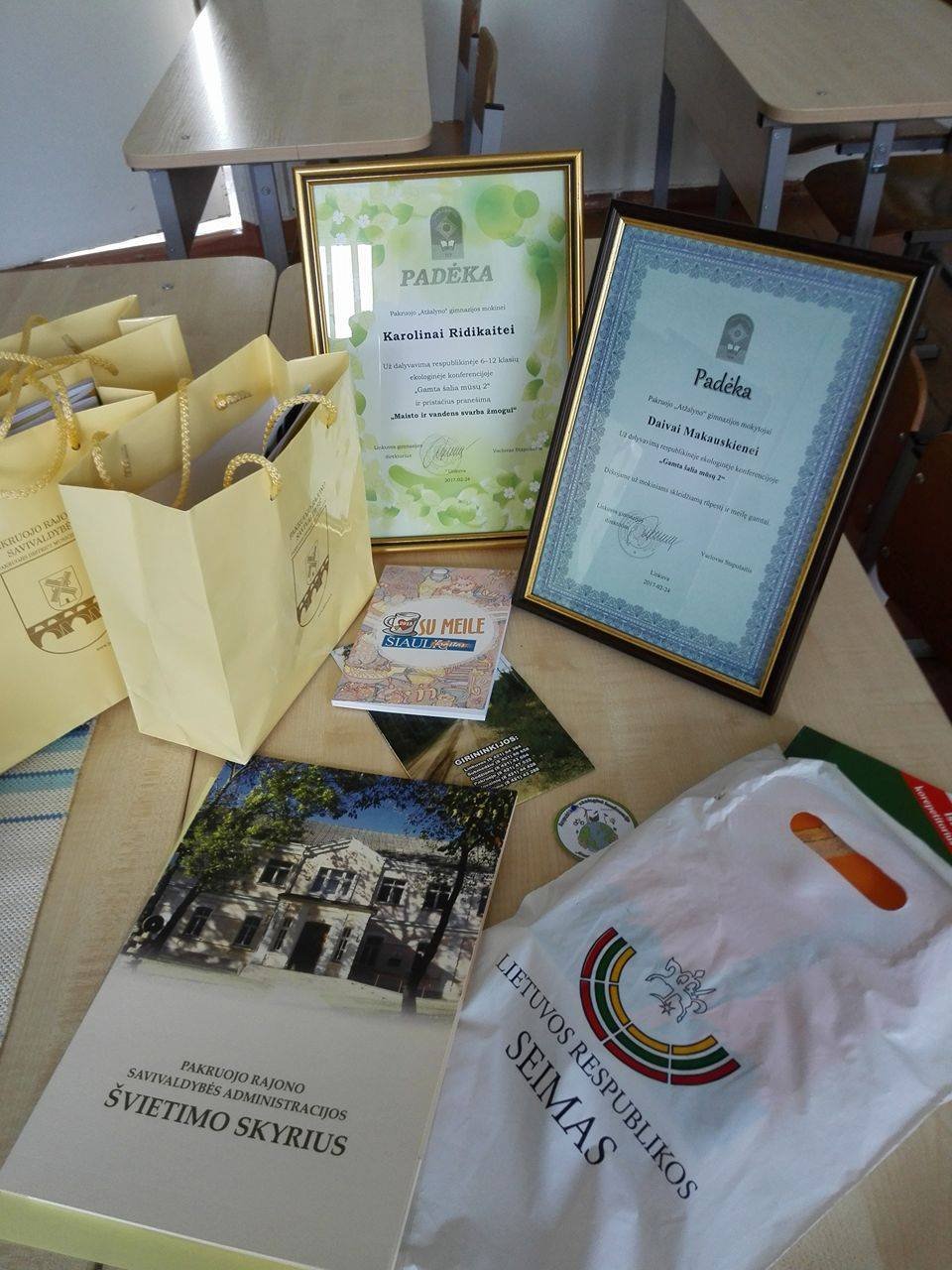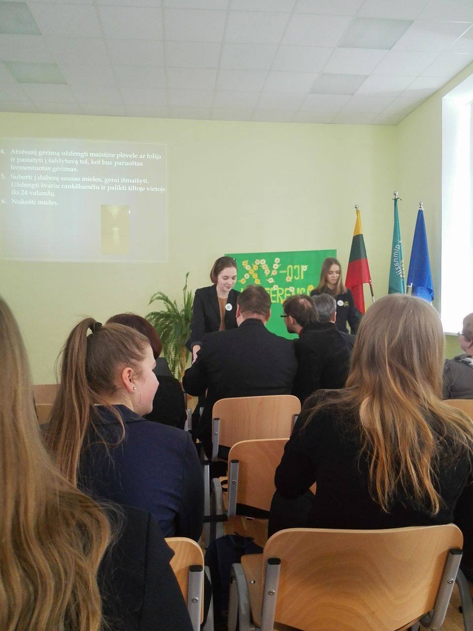 Mūsų mokyklos gimnazistės buvo labai kruopščios ir išradingos, todėl paruošė net keturis pranešimus. Pirmokės Gintautė Diringytė ir Gabija Jareckaitė pristatė projektą „Fermentuoto gėrimo gamyba“ ir visus dalyvius vaišino pačių pagaminta ekologiška gira bei imbieriniu limonadu. Trečiokės Gabija Lampickaitė ir Neringa Lapinskaitė stengėsi sudominti tema „Vitamino C koncentracijos tyrimas vaisiuose ir daržovėse“. Mūsų abiturientės Dovilė Bučaitė, Vaiva Pipaitė ir Karolina Ridikaitė buvo paruošusios projekto „Maisto ir vandens svarba žmogui“ apžvalgą, o Rosita Raziulytė ir Modesta Baltrūnaitė aptarė kito projekto „Gyvenimo būdas ir žmogaus sveikata“ rezultatus.