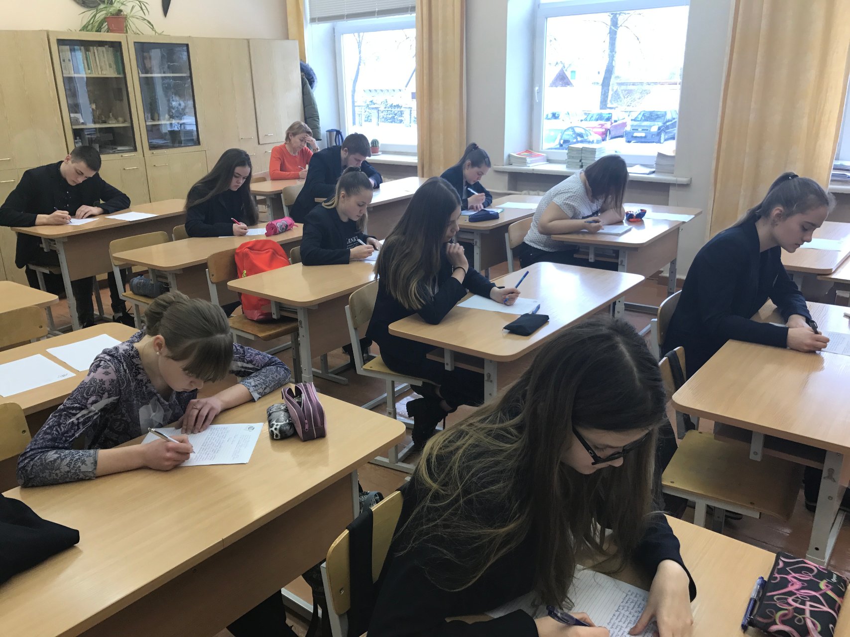 Norime nuoširdžiai pasidžiaugti pilietiškais gimnazistais, vasario 24 d. dalyvavusiais Nacionalinio diktanto I ture. 10 val. mokiniai palinko prie baltų lapų ir klausydamiesi tiesioginės transliacijos per LRT radiją rašė Alvydo Šlepiko tekstą „Bedugnė“, kurį skaitė diktorius Marijus Žiedas.
