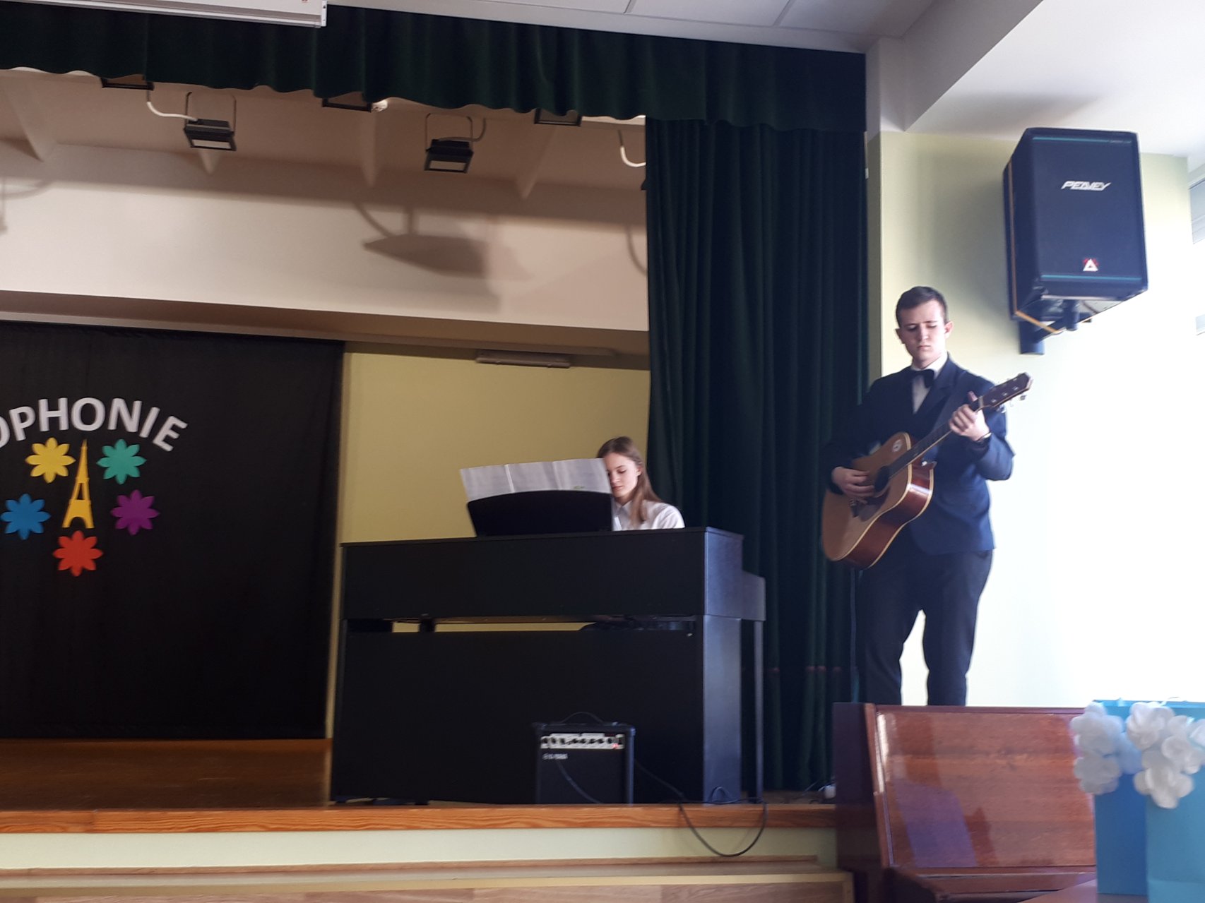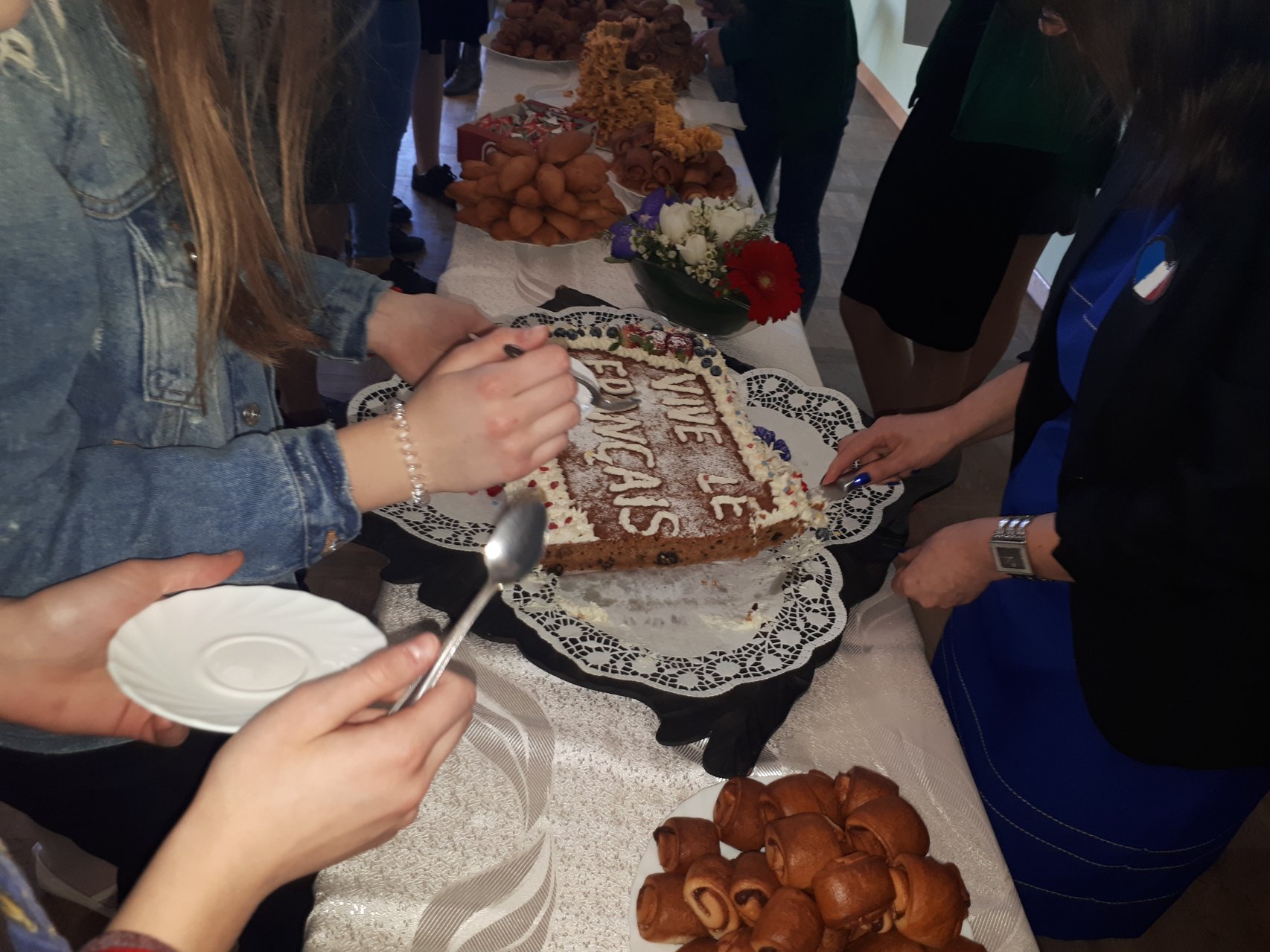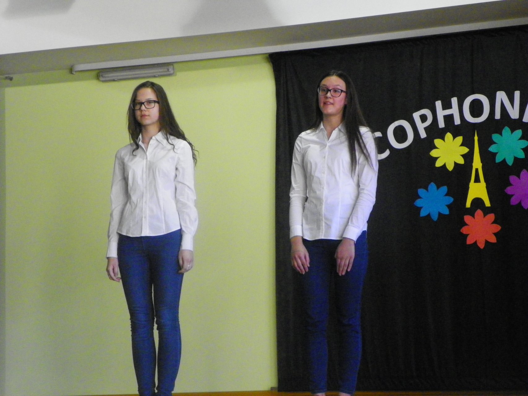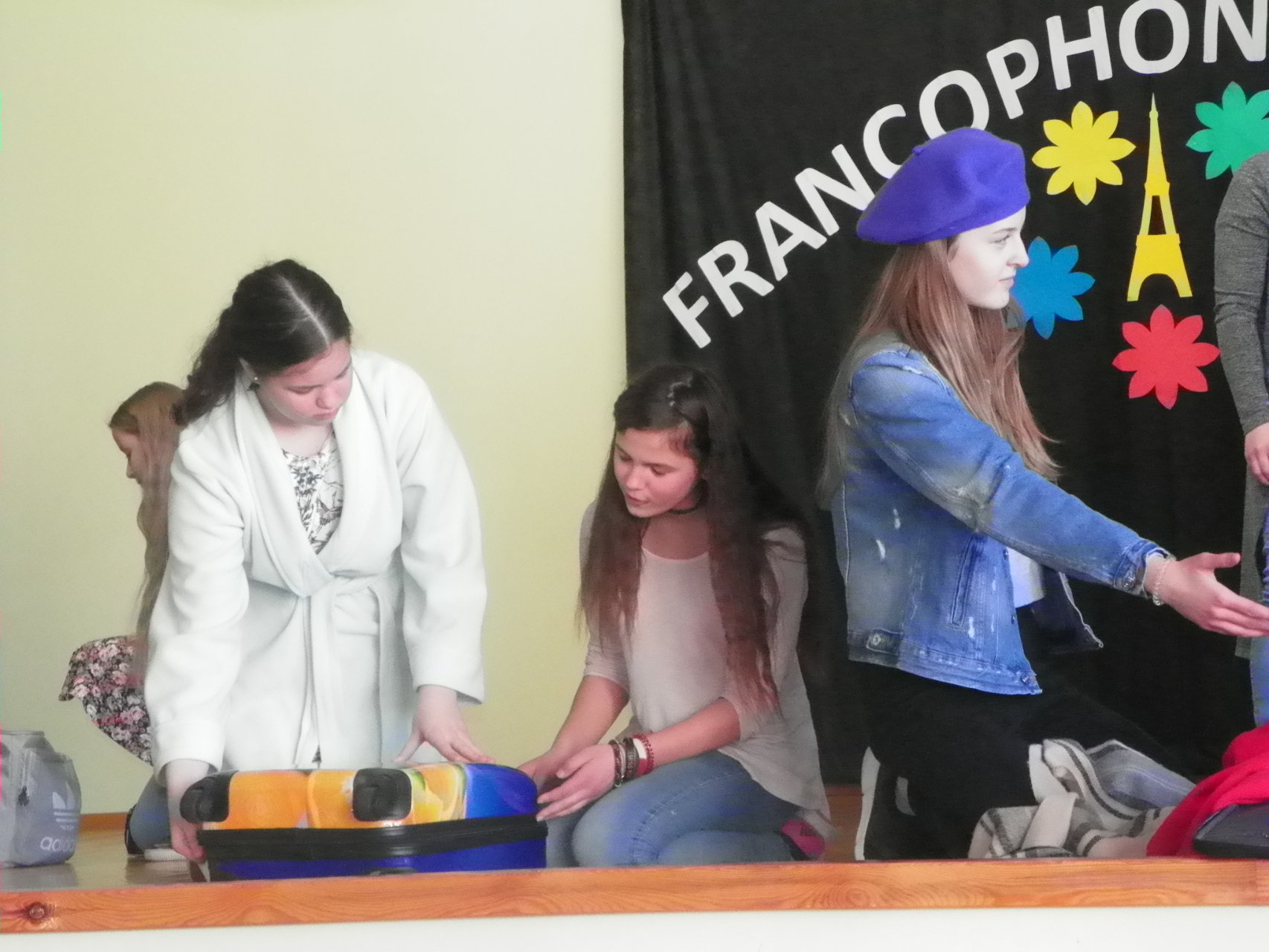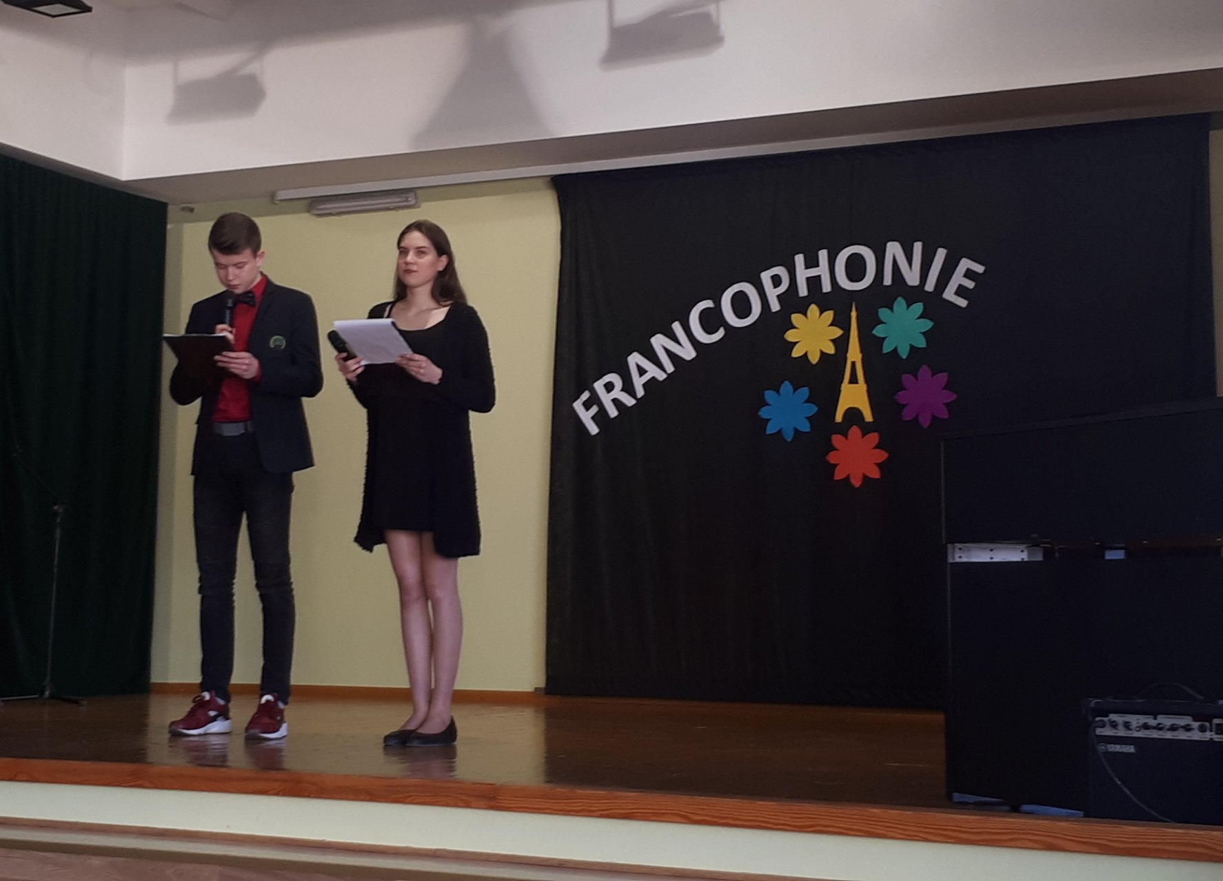 Sveikinimo žodį (prancūziškai!) tarė Pakruojo „Žemynos“ pagrindinės mokyklos direktoriaus pavaduotoja Aida Stakutienė. Visą renginį dviem kalbomis vedė šaunieji „Atžalyno“ gimnazistai Kamilė Augėnaitė ir Justas Simanavičius. Muzikine šventės dalimi rūpinosi Pakruojo Juozo Pakalnio muzikos mokyklos auklėtiniai. Skambėjo prancūzų autorių kūriniai, atliekami pianinu, akordeonu, gitara, smuiku. Žiūrovai plojimais lydėjo jaunųjų solistų – pakruojietės Elenytės, linkuvių Emilijos ir Luko, merginų ansamblio – atliekamas dainas prancūzų kalba. Svečiai iš Pasvalio parodė mini spektaklį „Keliauk, keliauk!“ Žavėjomis raiškiu skaitovų žodžiu. O galėjome klausytis ne tik prancūzų autorių eilių, bet ir išgirsti prancūzų kalba skaitomą Maironio eilėraštį „Mano gimtinė“!