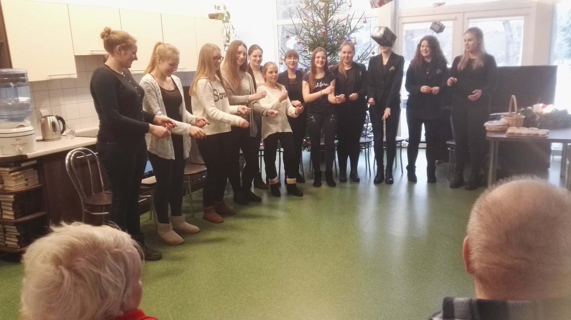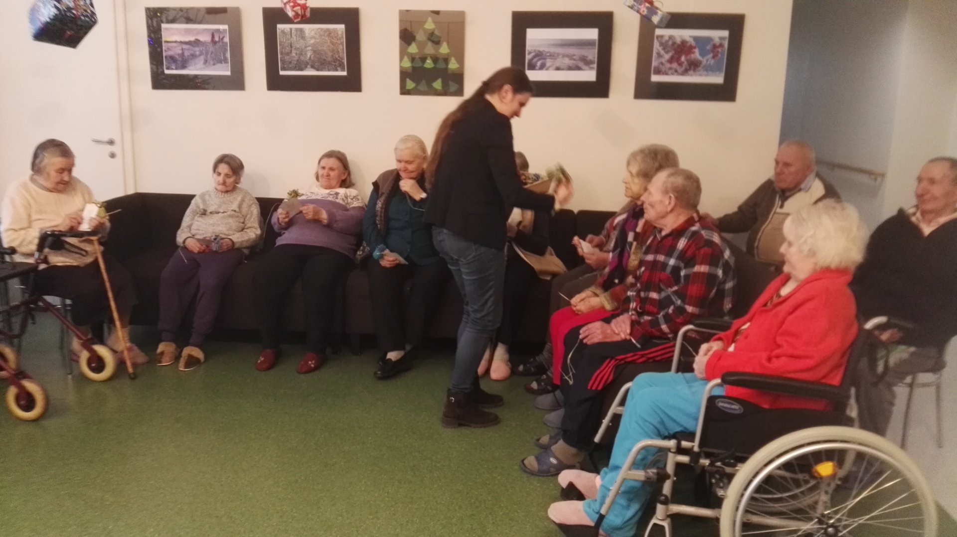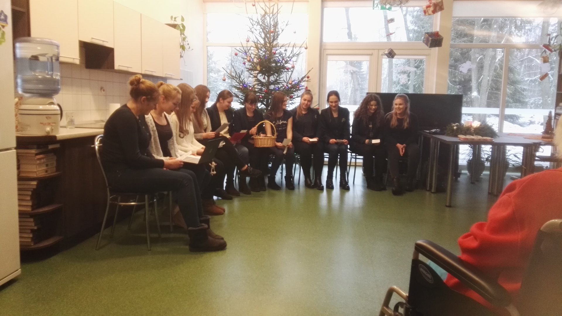 Gruodžio 21 dieną vykome pas senelius, gyvenančius Rozalimo Švč. M. Marijos Vardo parapijos senjorų namuose. Buvome jiems paruošusios įdomią programą: dainavome, pasakojome įvairias istorijas, aptarėme Kūčių nakties burtus, žaidėme.