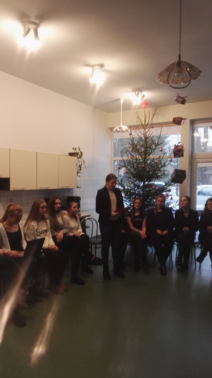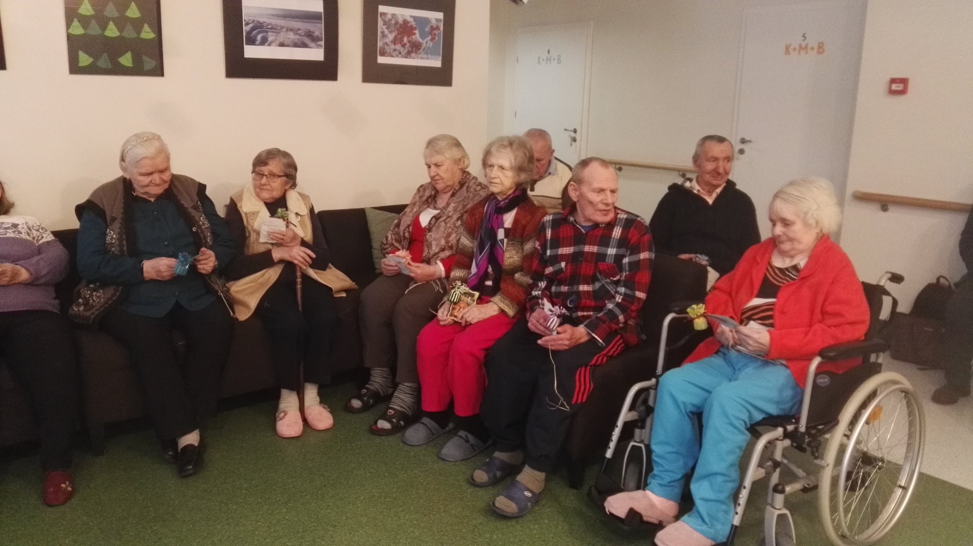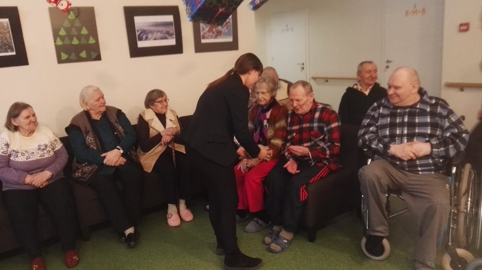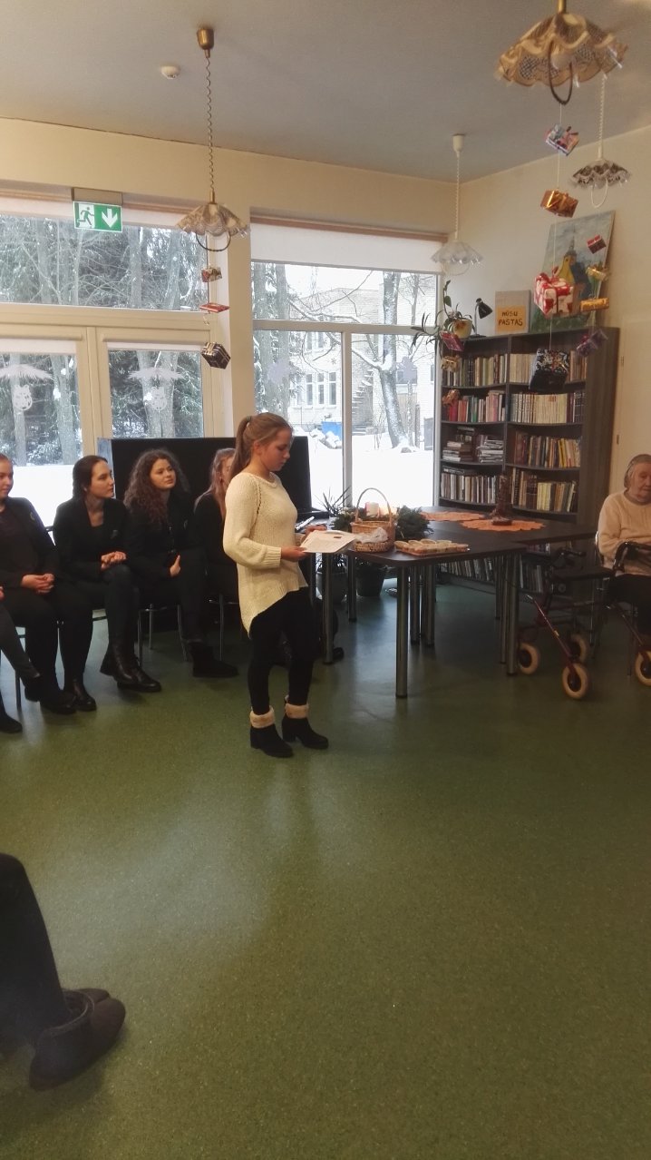 Gruodžio 21 dieną vykome pas senelius, gyvenančius Rozalimo Švč. M. Marijos Vardo parapijos senjorų namuose. Buvome jiems paruošusios įdomią programą: dainavome, pasakojome įvairias istorijas, aptarėme Kūčių nakties burtus, žaidėme.