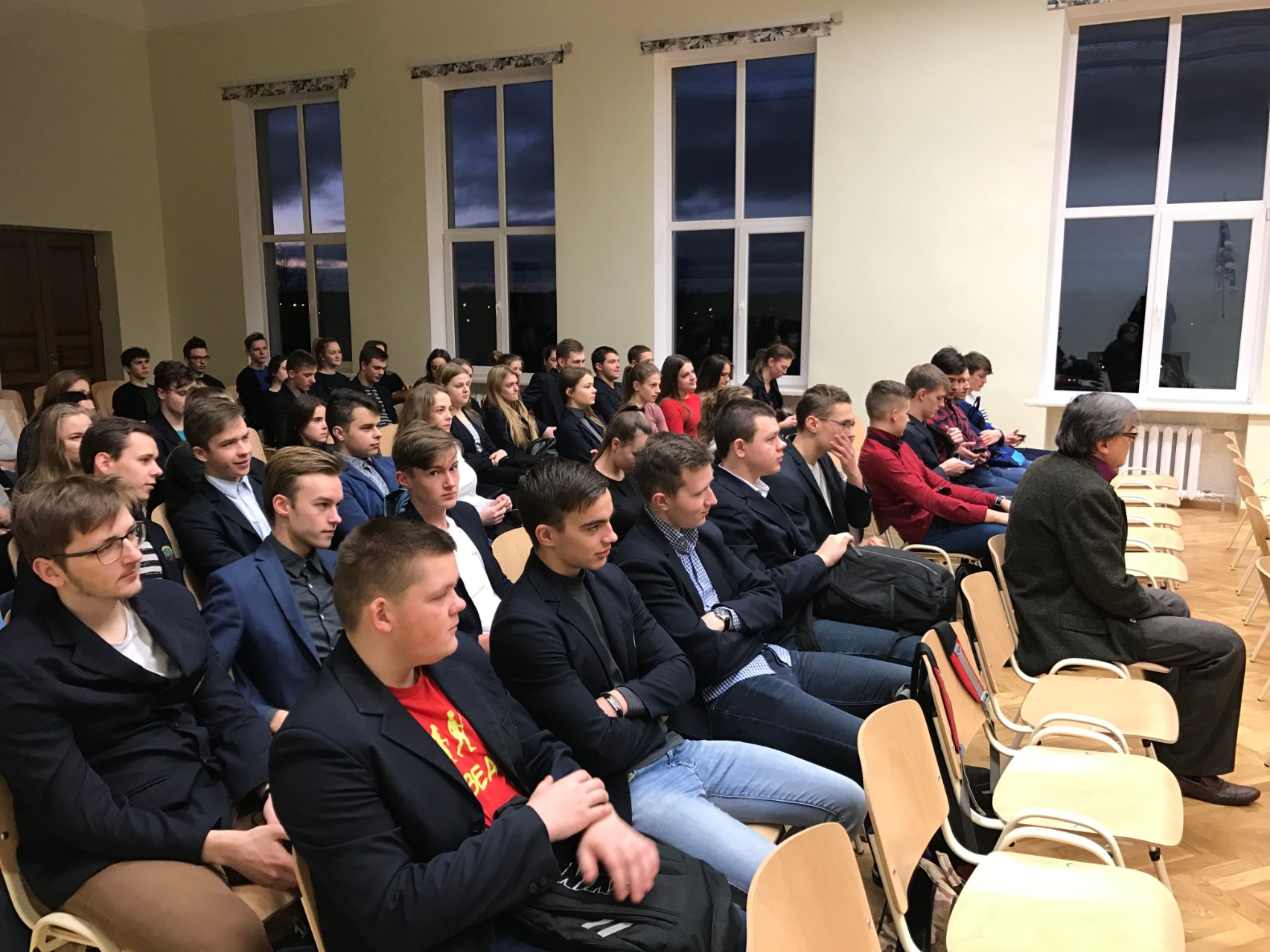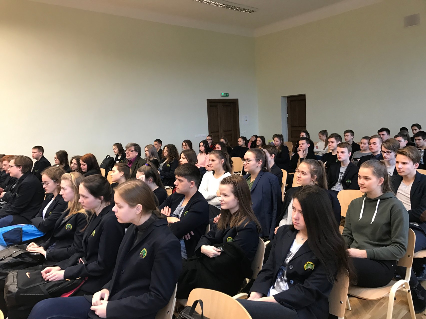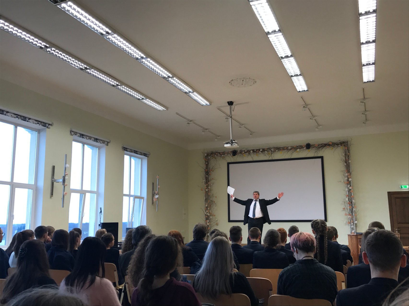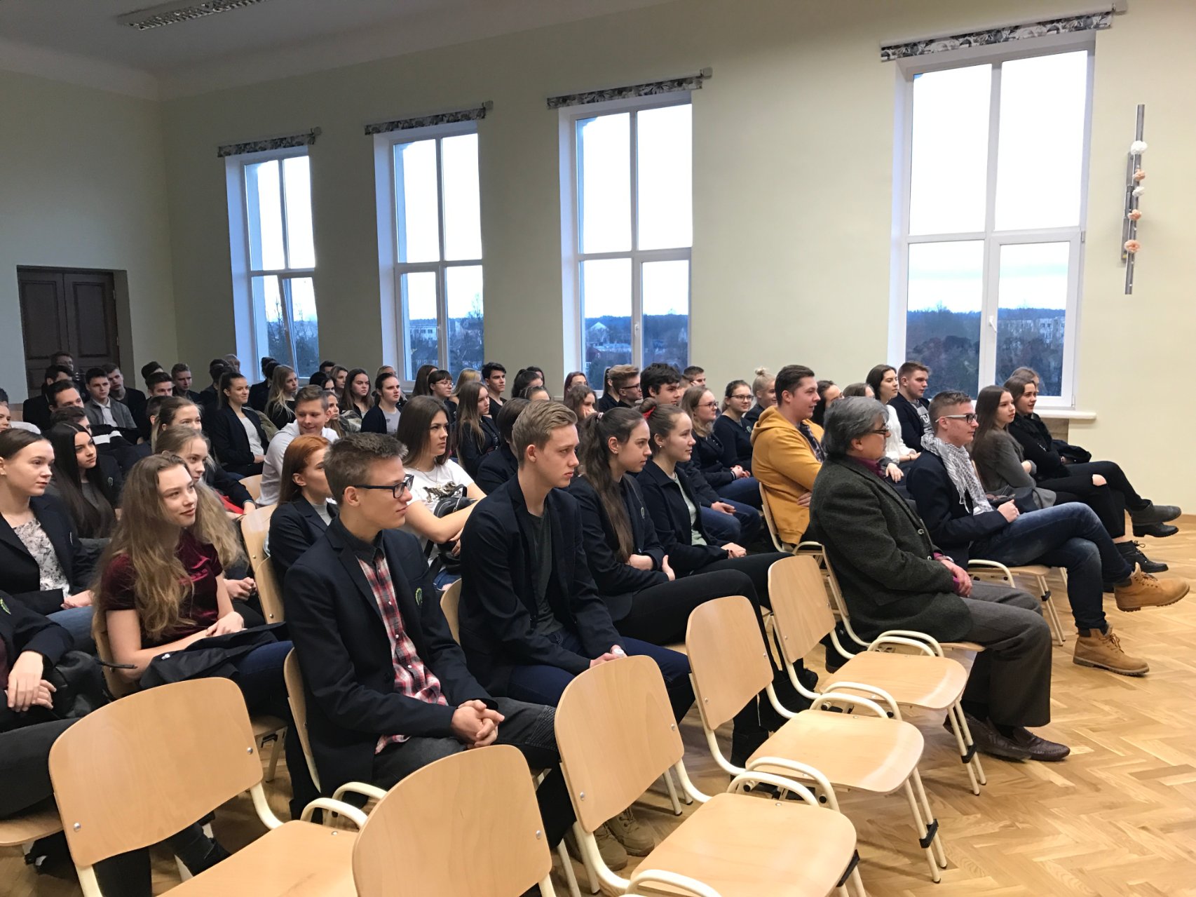 Pirmokai ir antrokai gimnazistai klausėsi E. Hemingvėjaus apysakos „Senis ir jūra“ ištraukų ir suprato, kad gyvenime svarbu atkakliai siekti tikslo ir nenuleisti rankų, susidūrus su sunkumais. Abiturientai išgirdo įtaigiai skaitomų B. Sruogos memuarų knygos „Dievų miškas“ fragmentų. Trečiokams svečias padėjo prisiminti J. Radvano poemą „Radviliada“ ir paaiškino to meto istorinį – kultūrinį kontekstą.