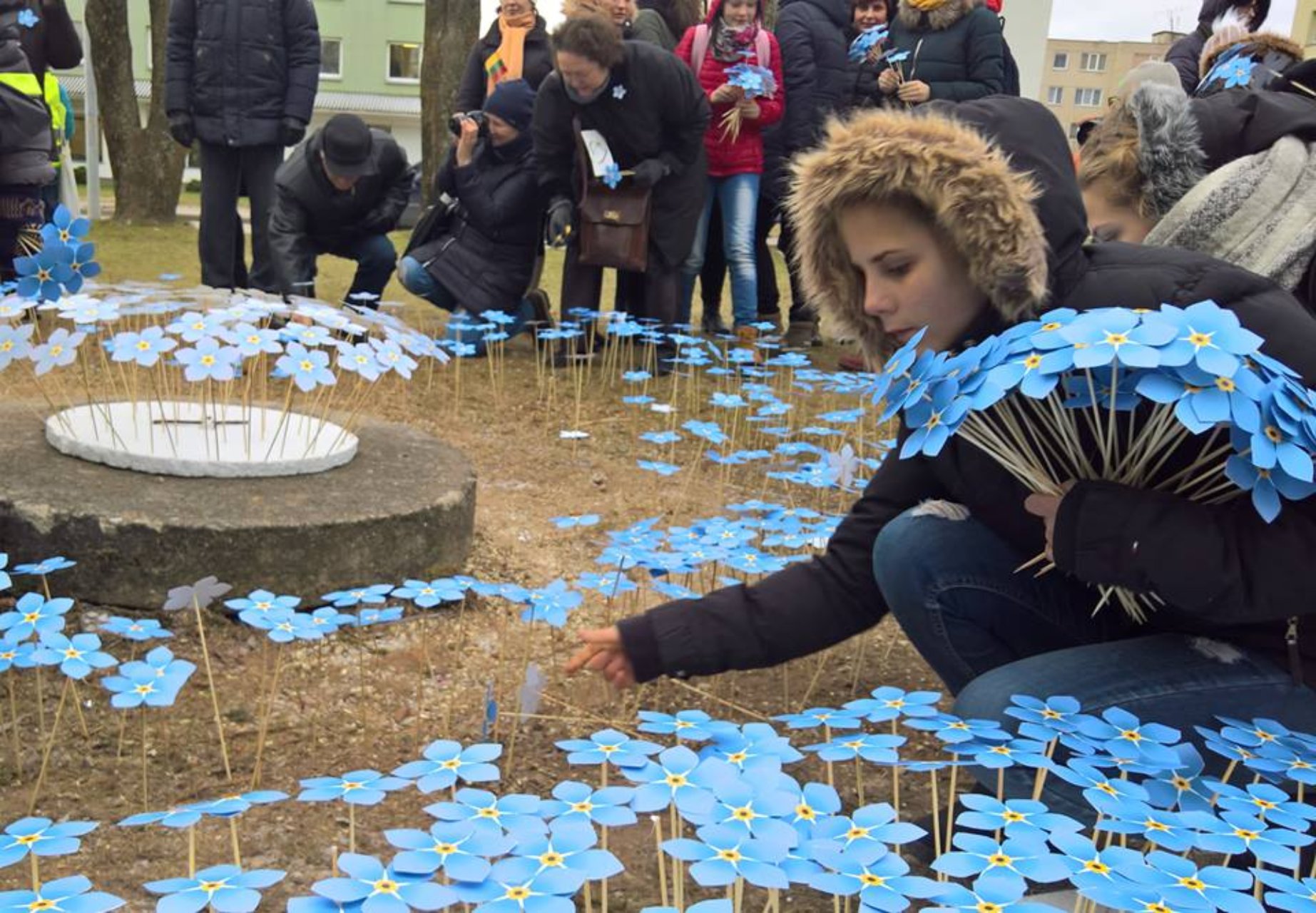 Penktadienio popietę susibūrėme Pakruojo miesto Nepriklausomybės skverelyje prie Šv. Jono Krikštytojo bažnyčios pagerbti mūsų tautos didvyrių. Tai dar viena akcija (globėjai – LR Seimo narys Antanas Matulas ir Tėvynės sąjungos – Lietuvos krikščionių demokratų Pakruojo rajono skyrius), inicijuota Pakruojo rajono savivaldybės Kultūros, paveldosaugos ir viešųjų ryšių skyriaus. Pakruojo miesto ir rajono švietimo įstaigų ir organizacijų žmonės, pavieniai asmenys skverelyje suformavo improvizuotą neužmirštuolių pievą.