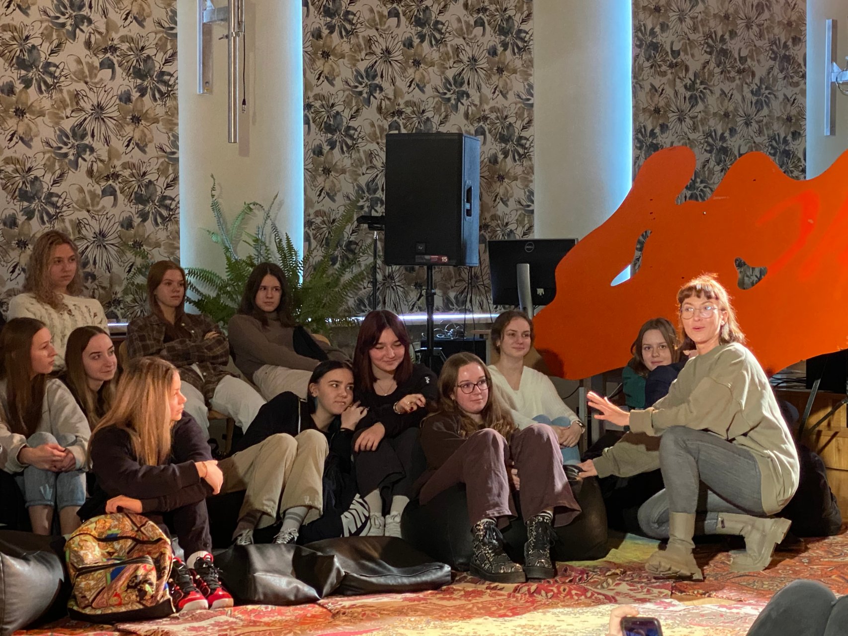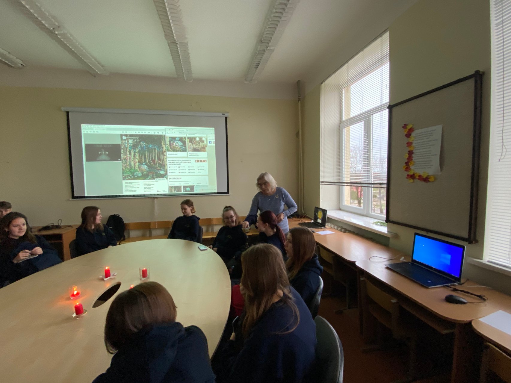 Lapkričio 23 dieną pasikviečiau stropiausias, atsakingiausias, kūrybingiausias ir darbščiausias jaunąsias gimnazistes padirbėti kūrybinėse dirbtuvėse, kurias organizavome mes, rajono dailės mokytojos. Buvo netikėtų pažinčių, draugiškų patarimų, vienas kito palaikymo ir, žinoma, daug kūrybos. Gimnazistės noriai dalyvavo renginyje ir garbingai atstovavo mūsų gimnazijai.