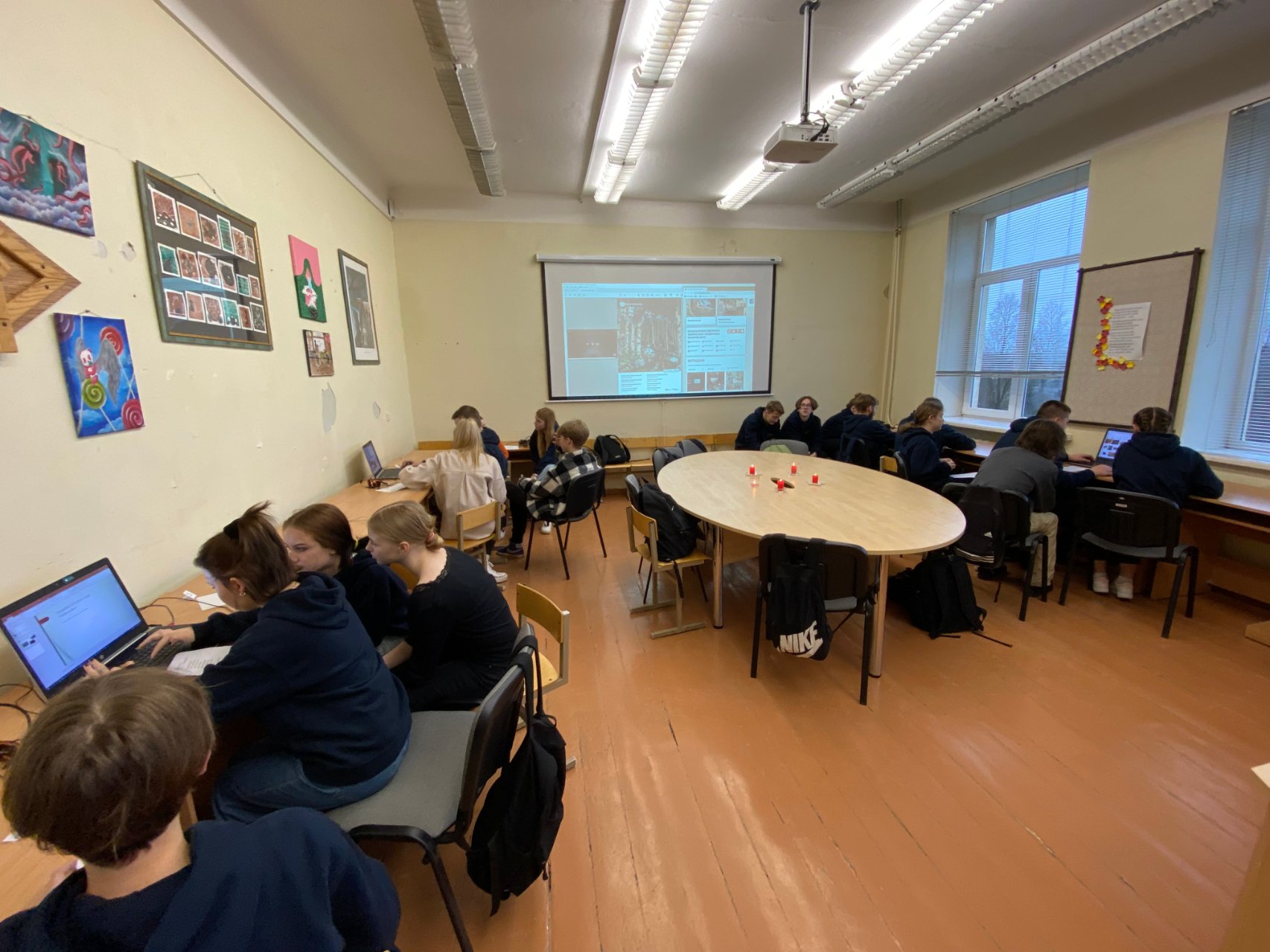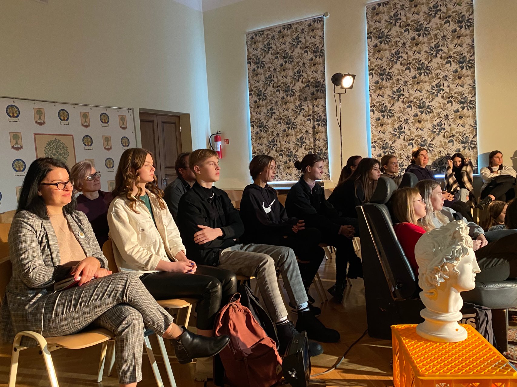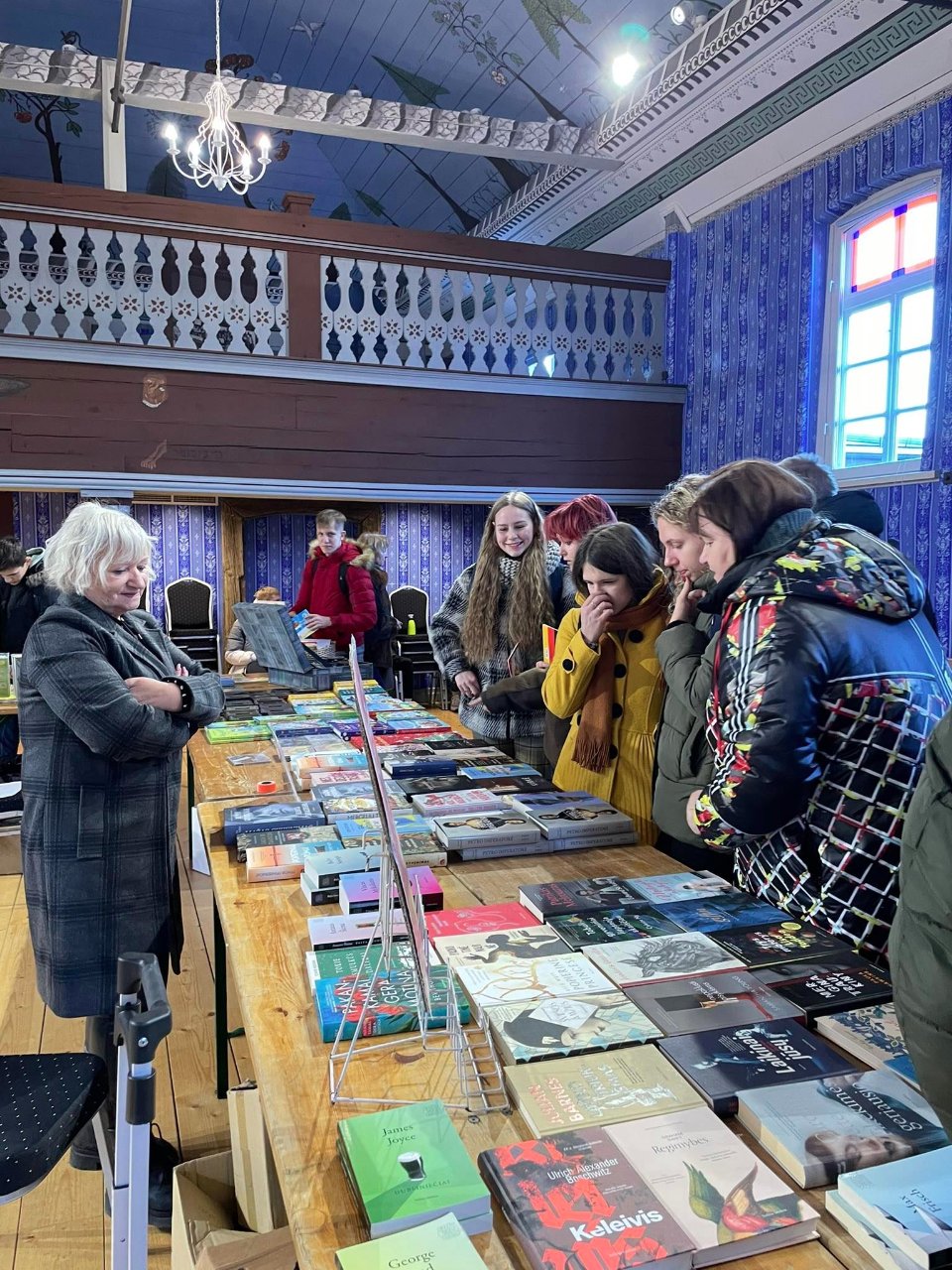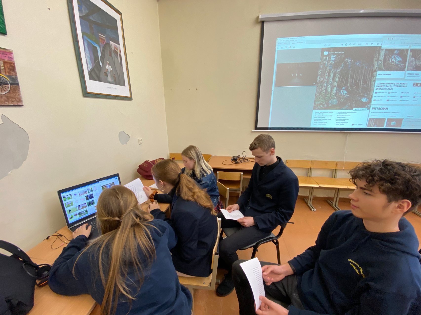 Per šeštą pamoką lituanistės, taip pat dorinio ugdymo mokytoja Laimutė Činčienė ir jos trečiokų gimnazistų grupelė dalyvavo susitikime su poete, prozininke, muziejininke Aldona Ruseckaite, kuri pristatė savo knygą „EMMI: Vinco Mykolaičio-Putino gyvenimo moterys“. Buvo įdomu išgirsti, su kokia literatūrine išmone autorė kalba apie žymaus kūrėjo asmenybę. Anot dorinio ugdymo mokytojos, pasitaikė puiki proga tikybos pamoką organizuoti netradicinėje erdvėje ir apie kunigo asmenybę išgirsti niekur neskelbtų faktų.