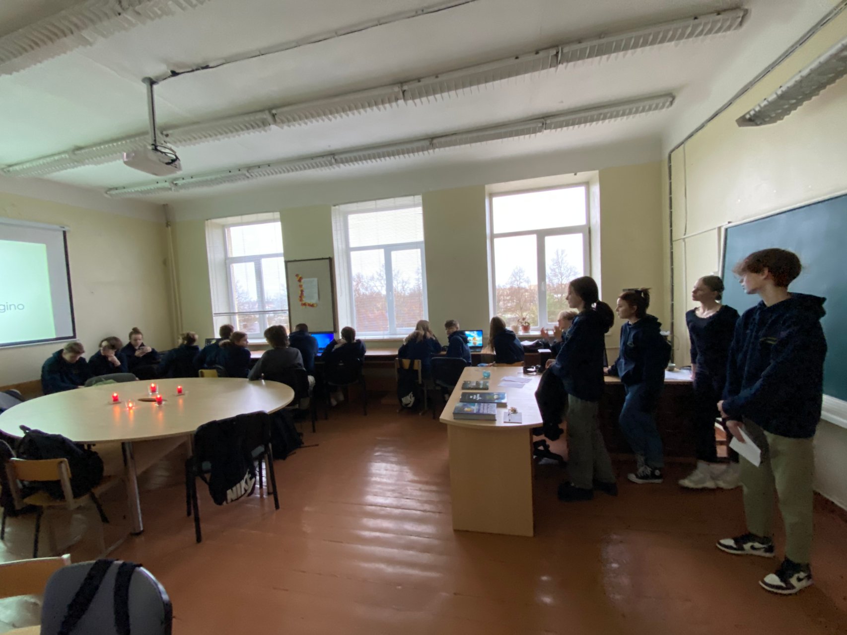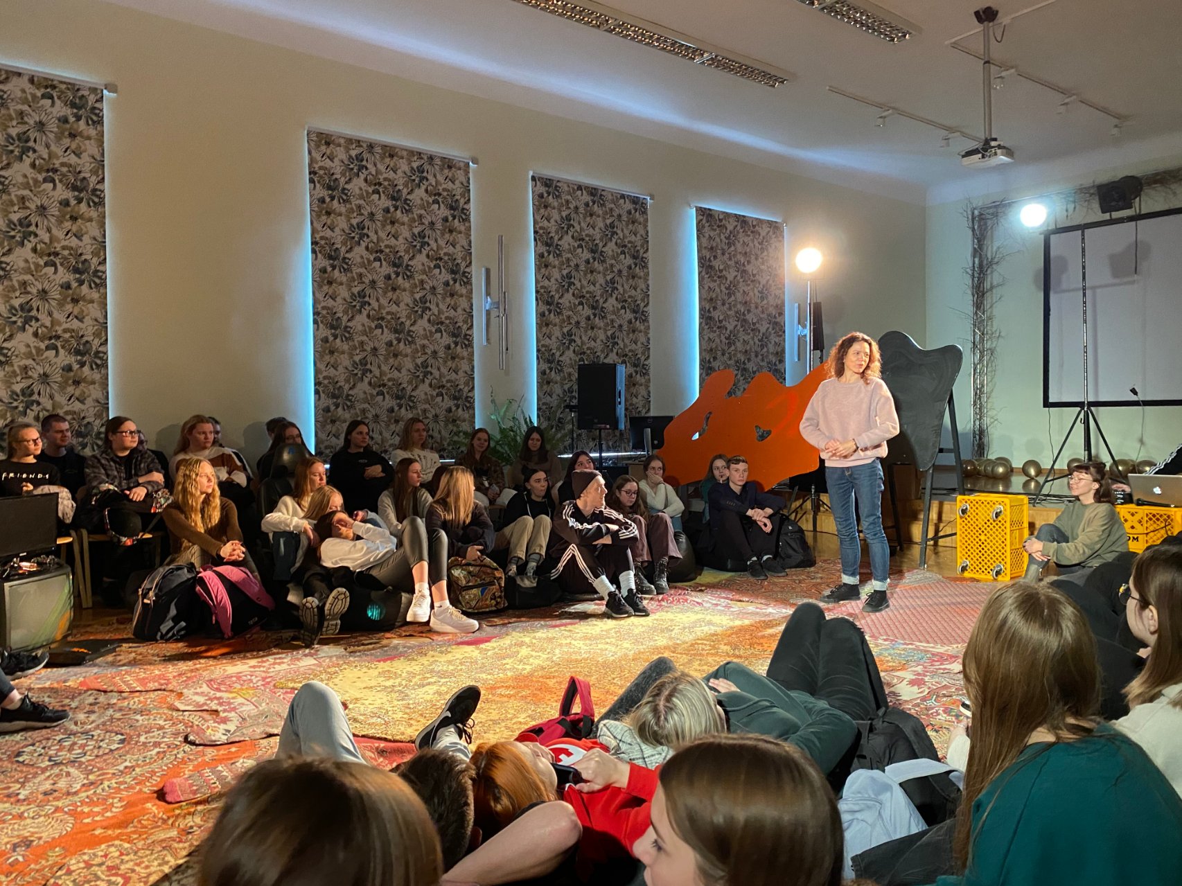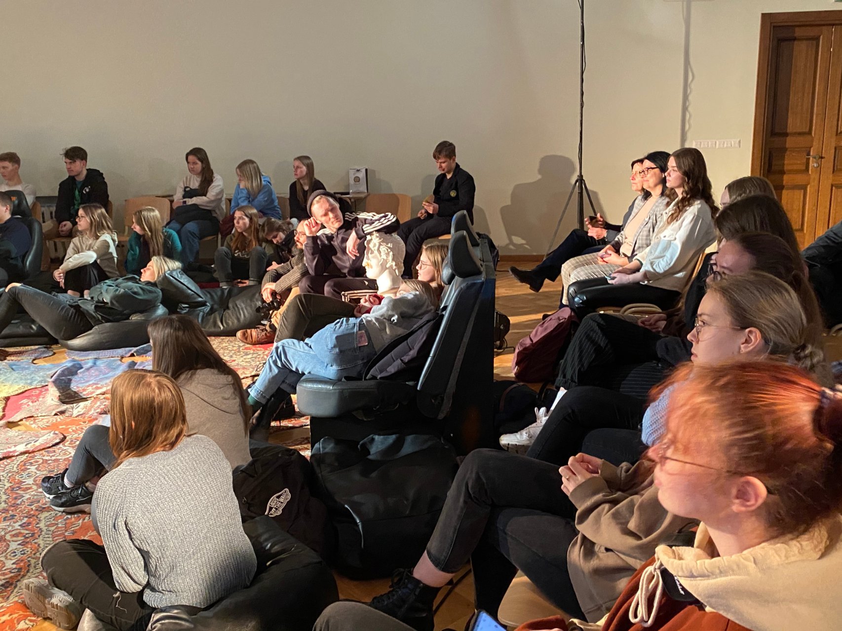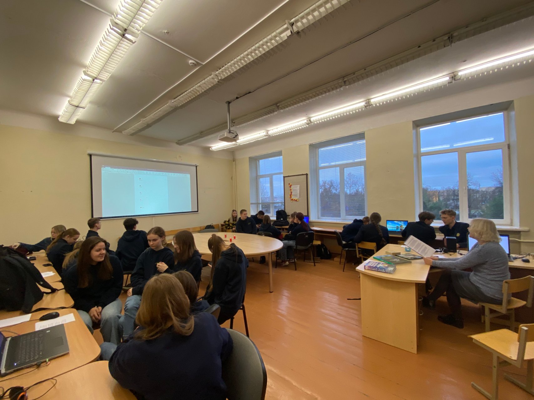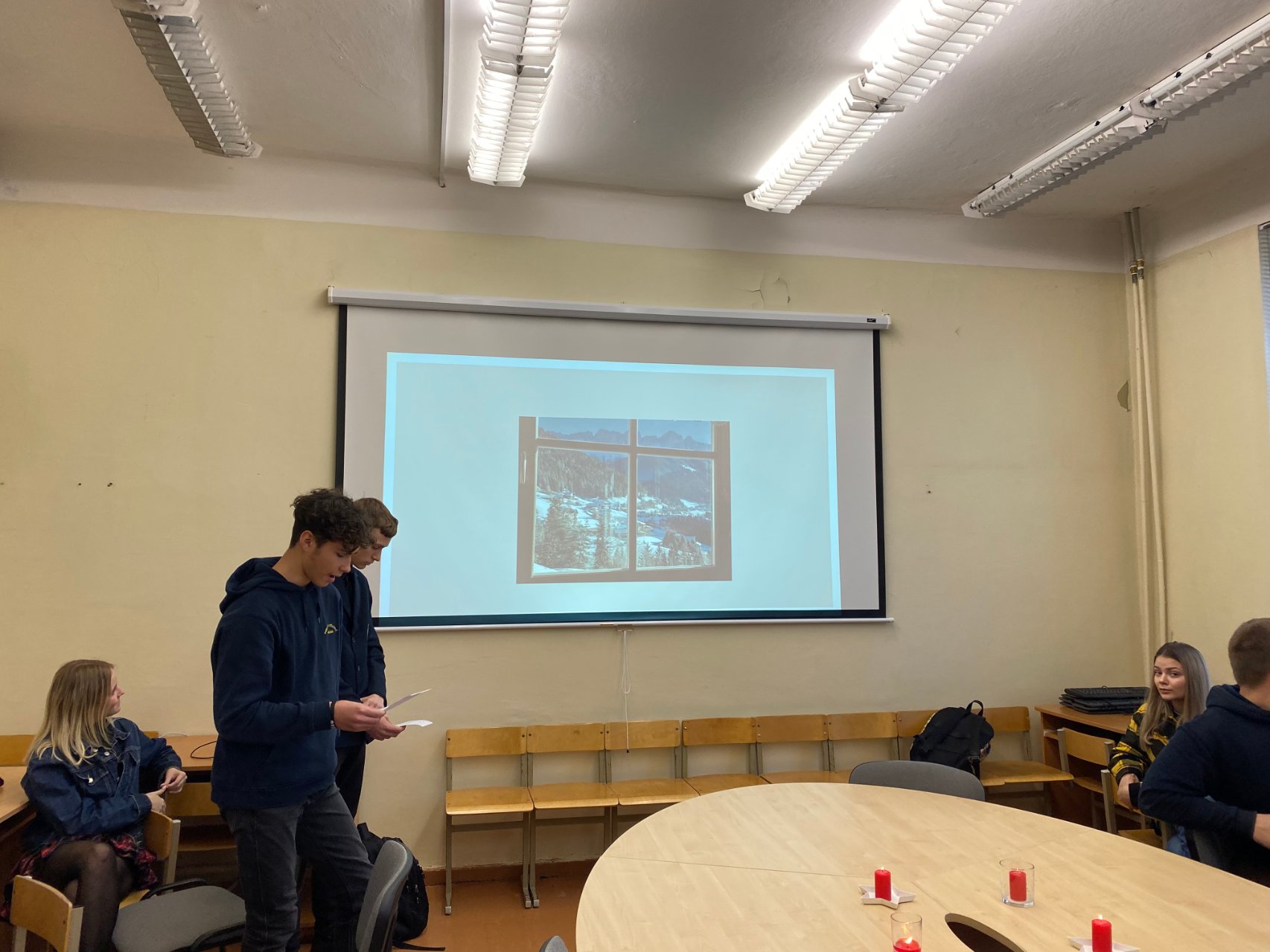 Per šeštą pamoką lituanistės, taip pat dorinio ugdymo mokytoja Laimutė Činčienė ir jos trečiokų gimnazistų grupelė dalyvavo susitikime su poete, prozininke, muziejininke Aldona Ruseckaite, kuri pristatė savo knygą „EMMI: Vinco Mykolaičio-Putino gyvenimo moterys“. Buvo įdomu išgirsti, su kokia literatūrine išmone autorė kalba apie žymaus kūrėjo asmenybę. Anot dorinio ugdymo mokytojos, pasitaikė puiki proga tikybos pamoką organizuoti netradicinėje erdvėje ir apie kunigo asmenybę išgirsti niekur neskelbtų faktų.