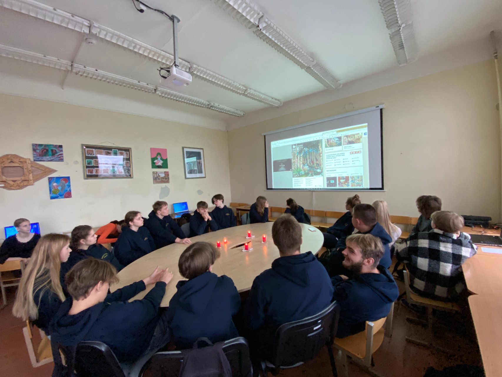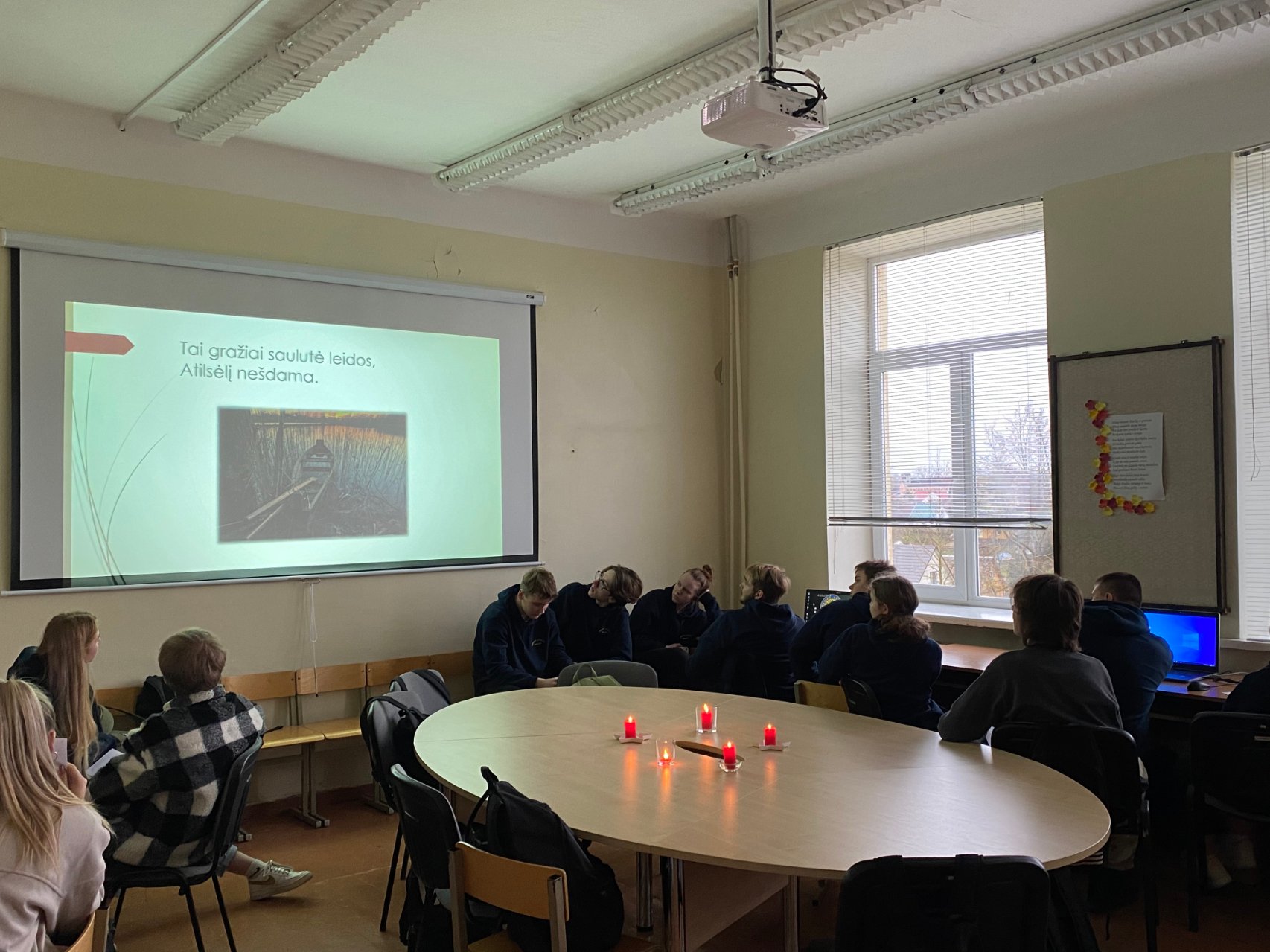Šių metų savaitės tema – „Gamta Šiaurėje“. Širdingai dėkojame bibliotekininkei Danutei už padrąsinimą ir pagalbą organizuojant garsinius skaitymus žvakių šviesoje. I b ir II a klasių gimnazistai kartu su bibliotekininke Danute Kučinskiene ir lietuvių kalbos mokytoja Roma Juknevičiene leidosi į neįprastą kelionę po gamtos pasaulį. Beje, per savivaldos dieną gimnazijos bibliotekininkę pavadavusi abiturientė Gerda Bertulytė galvodama apie Šiaurės šalių literatūros savaitę pasiūlė šaunią idėją – mokiniams duoti lietuvių poetų eilėraščių ir paprašyti jų, kad parinktų iliustracijų, atitinkančių tekstą. Beje, pati mergina net pasiūlė poezijos kūrinių. Bibliotekininkė Danutė K., lietuvių kalbos ir literatūros mokytoja Roma J. ir mokiniai idėją įgyvendino. Bibliotekininkė trumpai pristatė šių metų Šiaurės šalių literatūros savaitės temą, dalyvius, aktualumą. Po to mokiniai susiskirstė į grupes ir gavę eilėraštį sėdo prie kompiuterio ir ieškojo iliustracijų, meniškai jas komponavo – stengėsi rasti tokių paveiksliukų, kurie atspindėtų kūrinio turinį, nuotaiką, pagrindinę mintį. Beje, komandos paruošė labai skirtingus ir įdomius pristatymus. Klausydami gimnazistų grožėjomės Lietuvos gamta, keliavome po gimtąjį kraštą, vėl iš naujo atradome jos grožį, susimąstėme apie vertybes, net pasiryžome aplankyti vieną kitą vietovę Lietuvoje...
