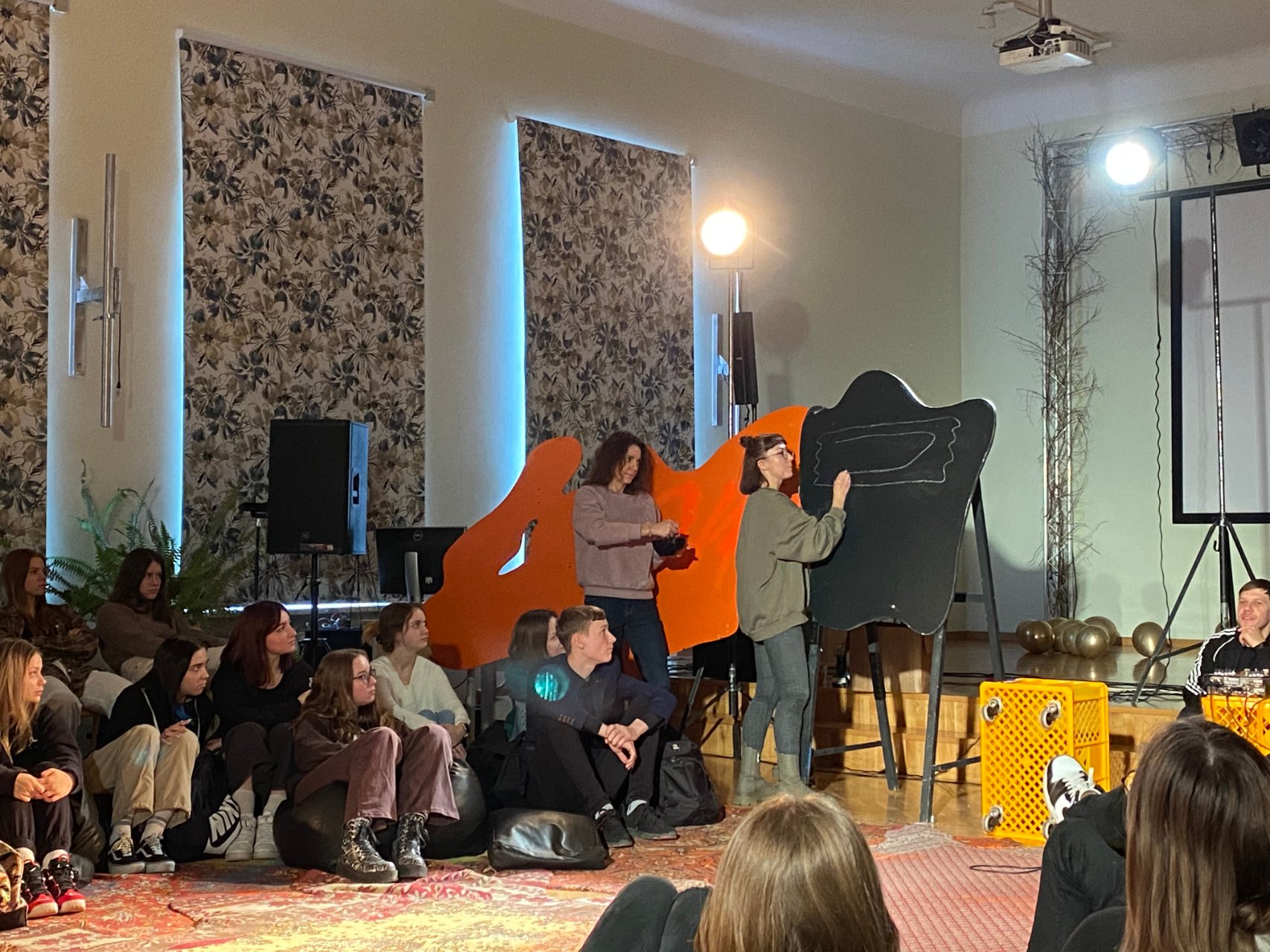 Gimnazijos direktorė Asta Valuntienė už išpildytus lūkesčius nuoširdžiai dėkojo aktoriams Alionai Kuriakinai, Dovilei Klementjevai, Martynui Klementjevui ir Aidui Jurgaičiui. Bendrystė su Panevėžio teatru „Menas“ tęsis ir toliau. Džiaugiamės atsiveriančiomis galimybėmis. .