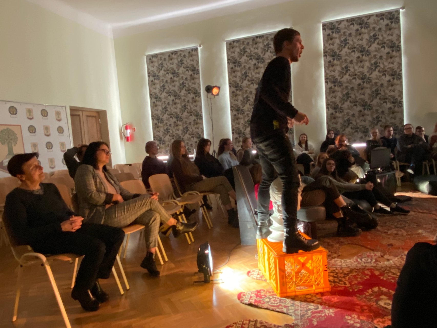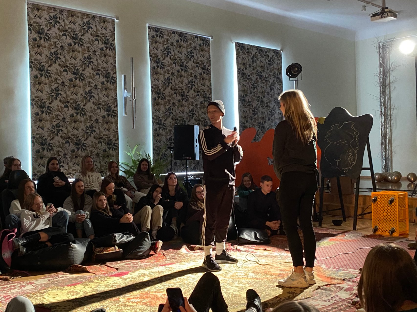 Penktadienio popietę antrokai gimnazistai ir teatro pamokas lankantys mokiniai išgyveno visą jausmų skalę dalyvaudami režisieriaus ir dramaturgo Aleksandr Špilevoj pastatytame spektaklyje „ANTI“ pagal Sofoklio tragediją „Antigonė“. Panevėžio teatro „Menas“ keturi aktoriai kūrinio siužetą susiejo su asmeninėmis istorijomis, be to, aiškino tragedijos sąvoką, senovės graikų pasaulį aptarė šiandienos aktualijų kontekste. Puikūs režisūriniai sprendimai, aktorių buvimas šalia žiūrovų, už įsitraukimą dalijami „Snickers“ batonėliai nepaliko abejingų. Nuoširdumas visada paperka tiek teatre, tiek ir gyvenime.