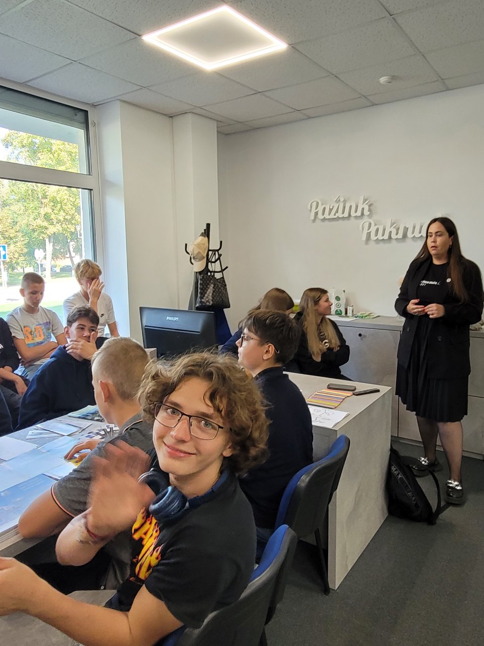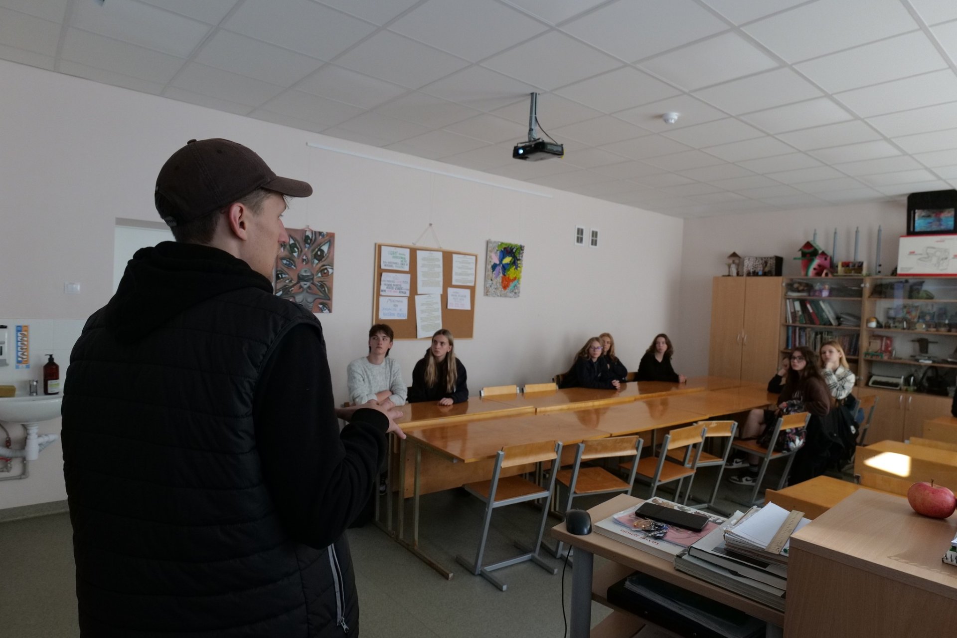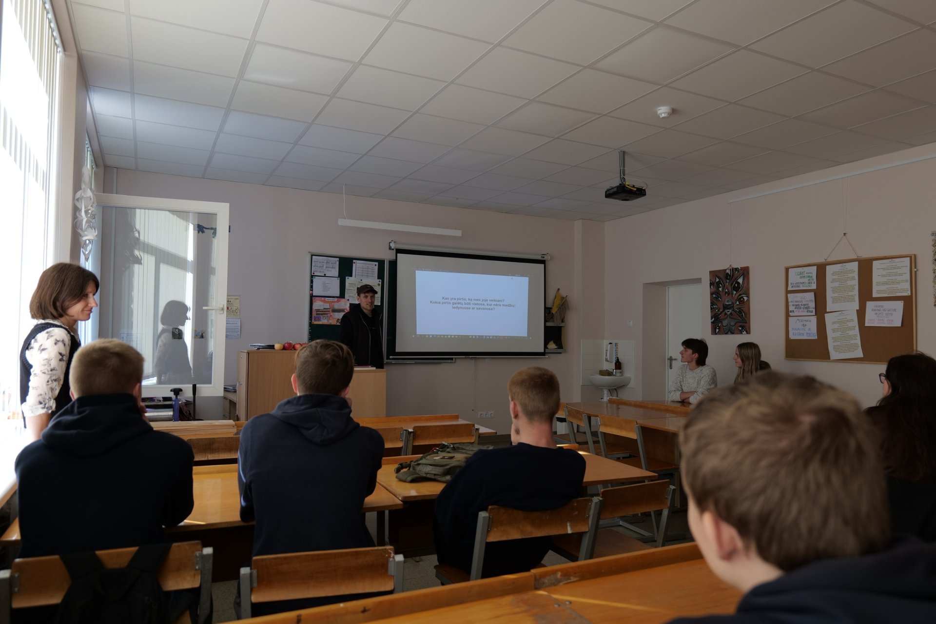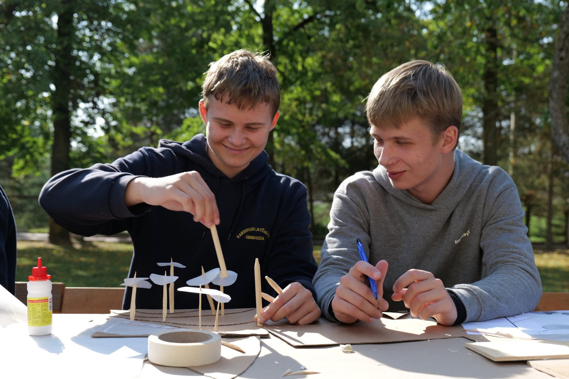 Šiltą rudens trečiadienį pas II a klasės gimnazistus į dailės pamoką atvyko du kūrybingi žmonės. Vienas iš svečių Aleknaičių kultūros ir edukacijos erdvės / Akee įkūrėjas Vilius Vaitiekūnas ir Architektūros fondo direktorius bei projekto „Vietinė pirtis“ bendrakūrėjas Martynas Germanavičius. Susitikimo tikslas buvo praplėsti tradicinės pamokos ribas įtraukiant į ją naujų žmonių ir idėjų.