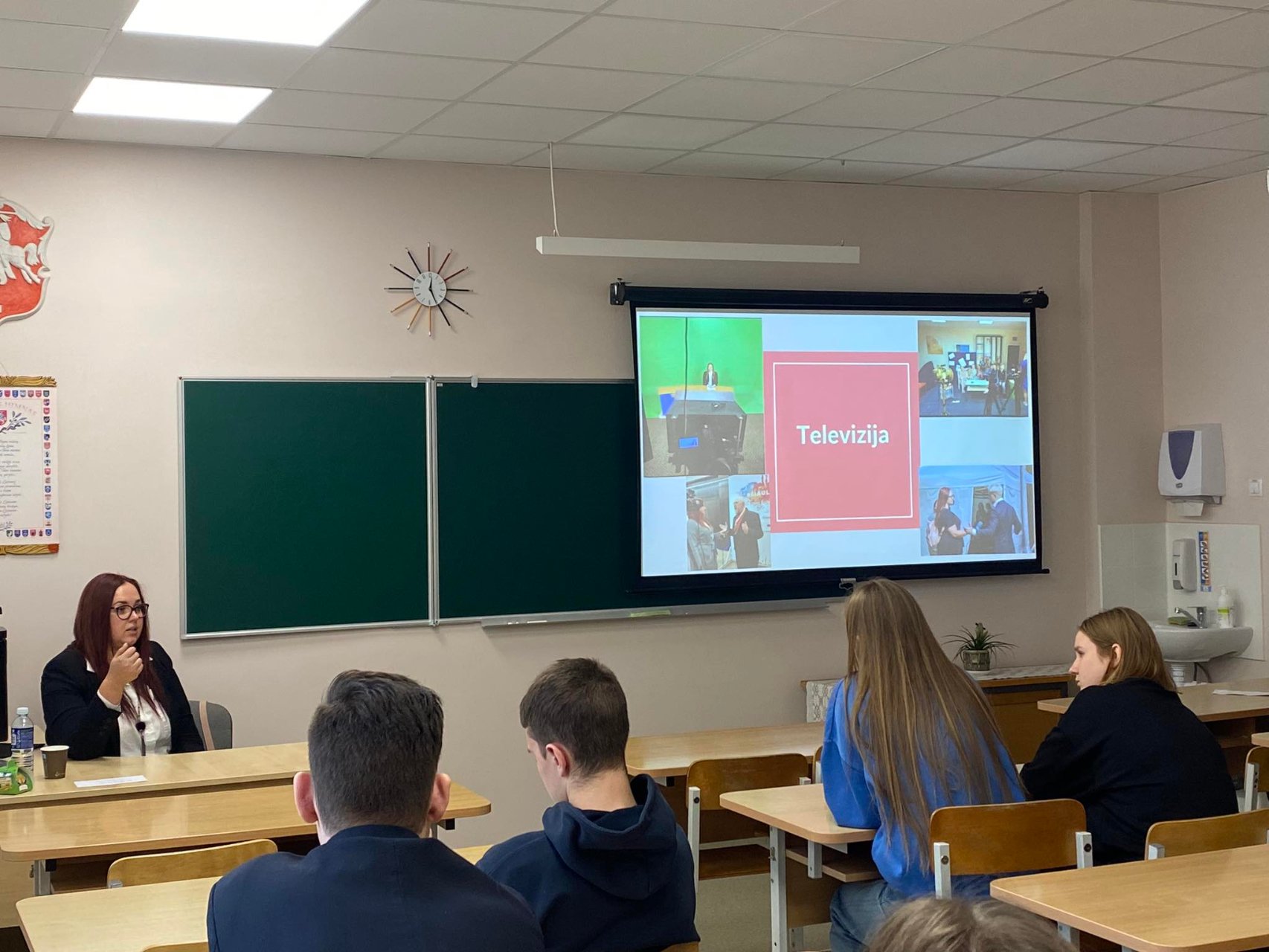 EVELINA MAŽEIKIENĖ, dirbanti programų ir žinių tarnybos vadove UAB „Šiaulių televizija“ ir radijo laidų vedėja UAB „Saulės radijas“ supažindino jaunus žmones su savo darbo ypatumais, atvėrė duris į paslaptingą žurnalisto kasdienybę, apie kurią nesusimąstome. Evelina pasidalijo, su kokiais iššūkiais tenka susidurti, papasakojo ir šmaikščių istorijų, atsakė į klausimus. Be to, kvietė rinktis operatoriaus darbą, nes Lietuvoje tokios srities specialistų labai trūksta. Beje, maloniai pakvietė atvykti į studiją. Gyvenime, anot Evelinos, reikia nebijoti būti savimi ir aktyviai veikti, siekti užsibrėžtų tikslų. Buvo akcentuota, kad darbas nėra nuobodus, aptartos atsakingos veiklos, kurias tenka atlikti. P.S. Evelina rašo straipsnius ir dar jos balsas skamba reklamose...