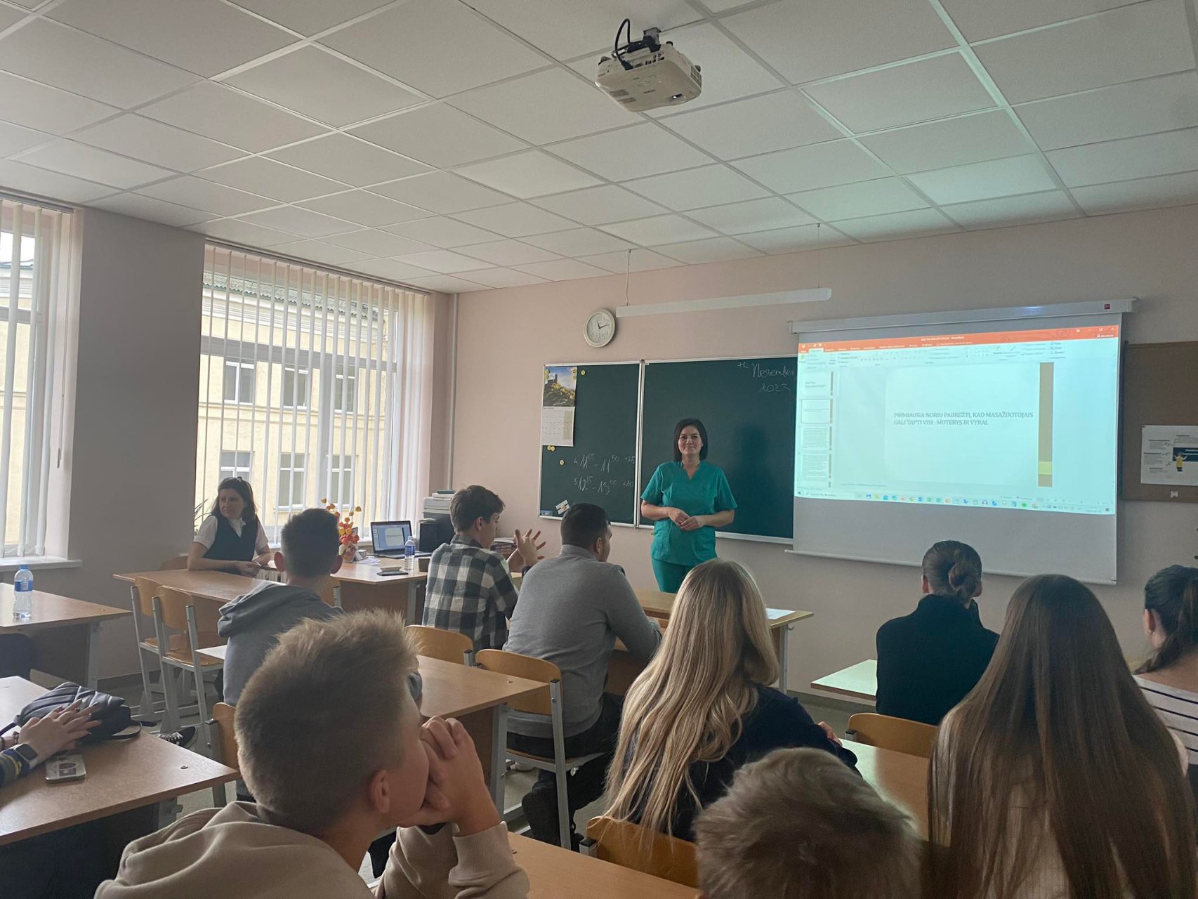 Radviliškio grožio salono „Idėja“ masažuotoja-kineziterapeutė VITALIJA JOKUBAUSKAITĖ-POCEVIČIENĖ savo profesiją pristatė itin patraukliai. Mokiniams patiko veiklos, pasakojimai, susiję su specialybe. Gimnazistai pastebėjo, kad Vitalija labai mėgsta savo darbą, nes kalbėjo iš širdis į širdį.