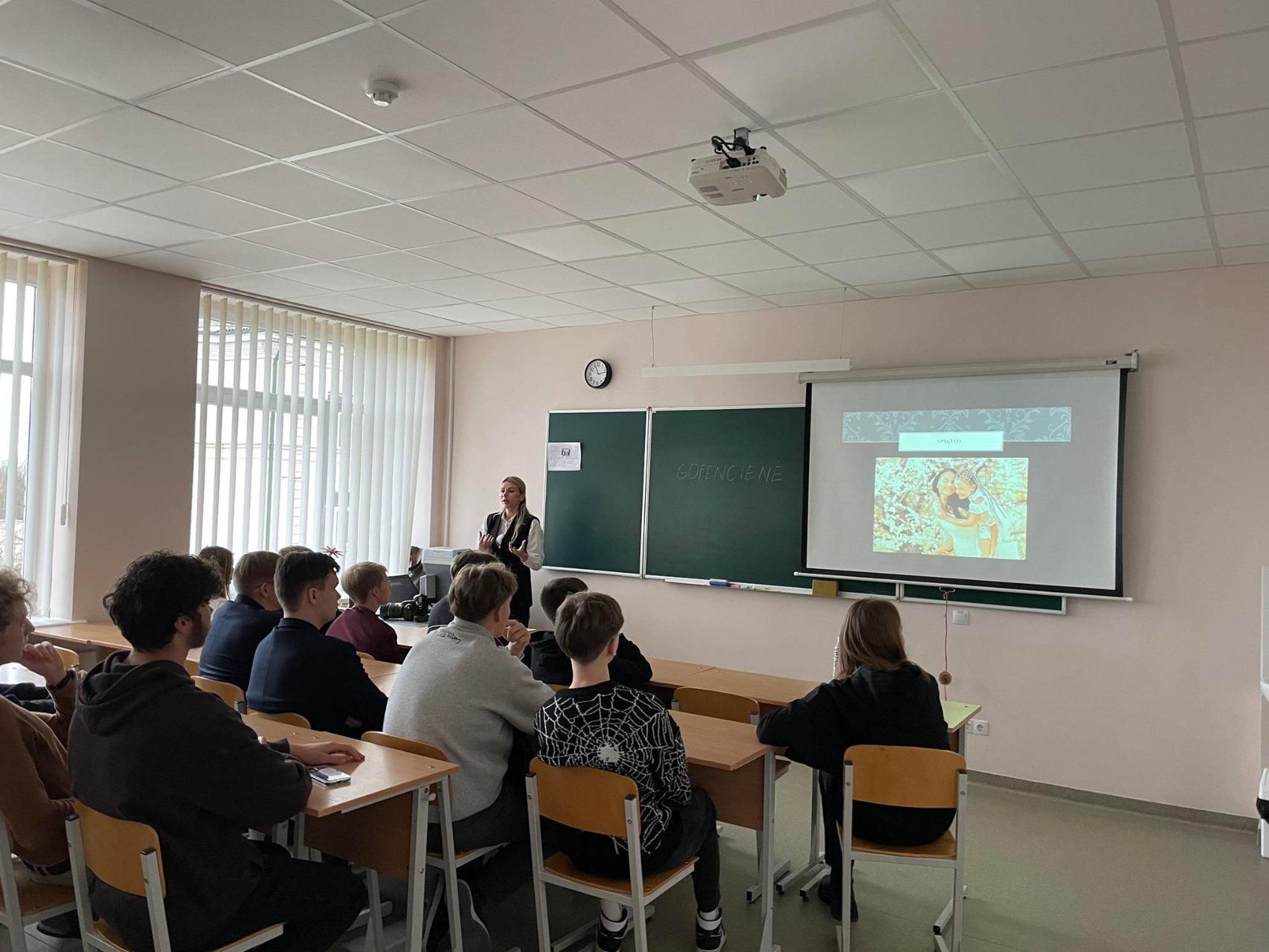 Fotografė MONIKA GOFENCIENĖ pristatė savo pomėgį, rodė pateiktis. Ji pasidalijo istorijomis iš savo asmeninės patirties, rodė įvairias savo padarytas nuotraukas, taip pat leido mokiniams fotografuoti.
