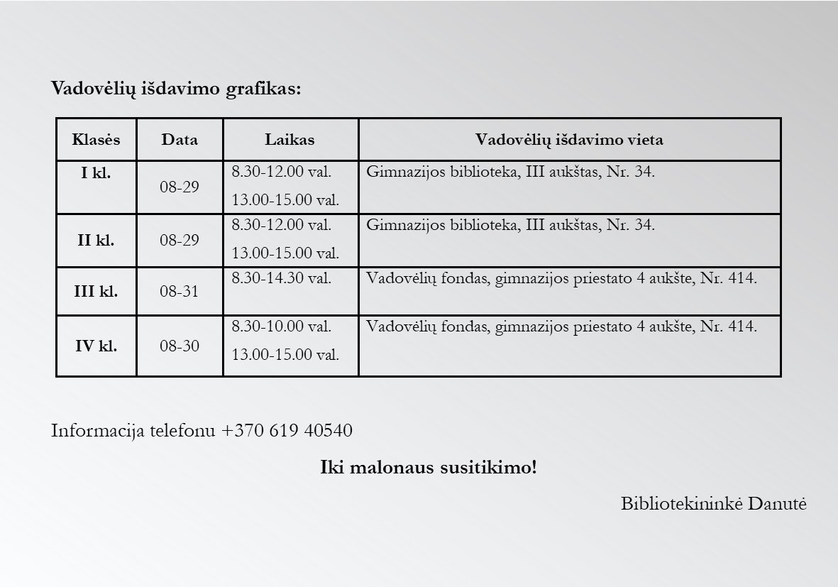 Mielieji gimnazistai, kviečiame atvykti pasiimti vadovėlių!