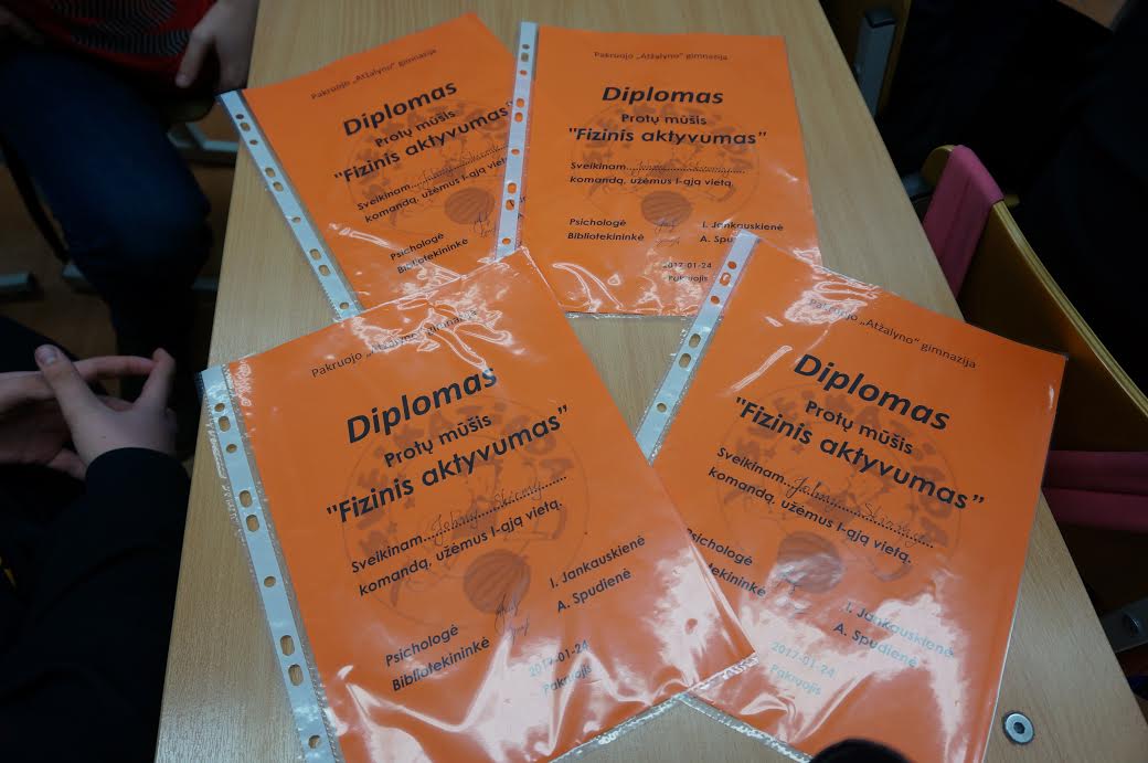 Prasidėjus „Mankštiados“ semestrui nusprendėme patreniruoti ir smegenis. Pirmokai gimnazistai noriai susirinko į protmūšį „Fizinis aktyvumas“. Susiskirstę į penkias komandas mokiniai aktyviai atsakinėjo į pateiktus klausimus. Vieni džiaugėsi pasirinkę teisingą atsakymą, kiti sužinojo ir naujų faktų. Laimėjo komanda „Johni skirmy“.