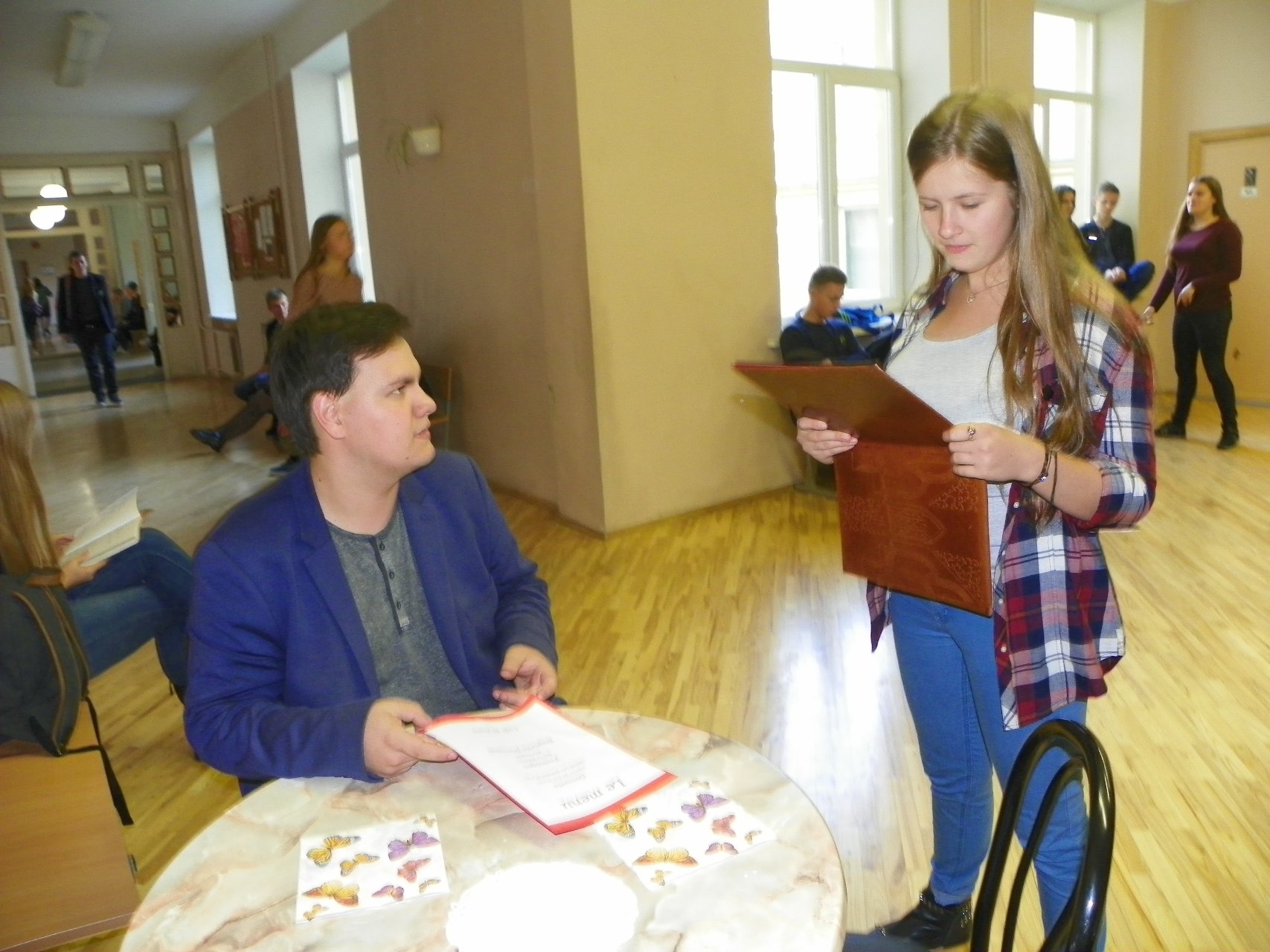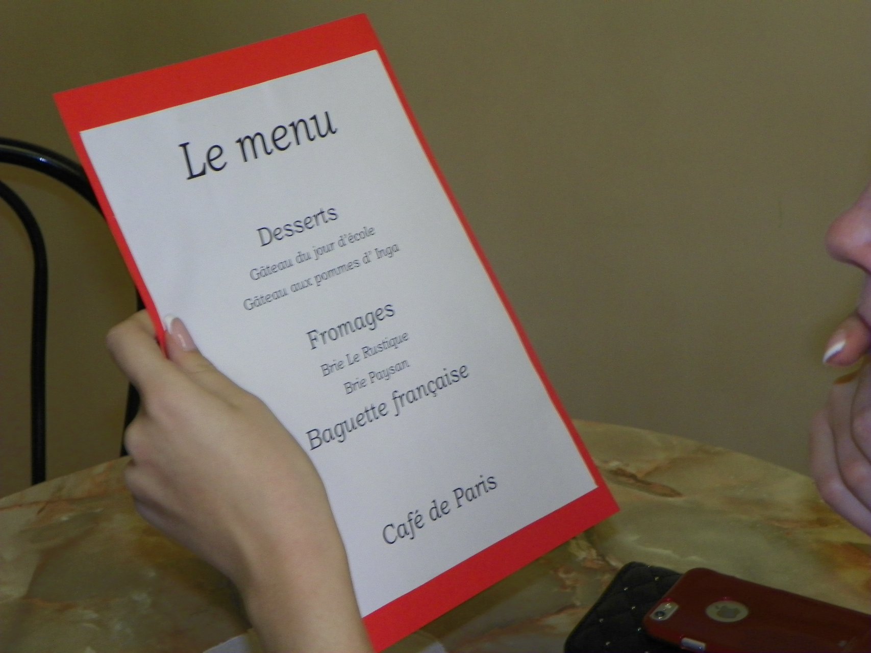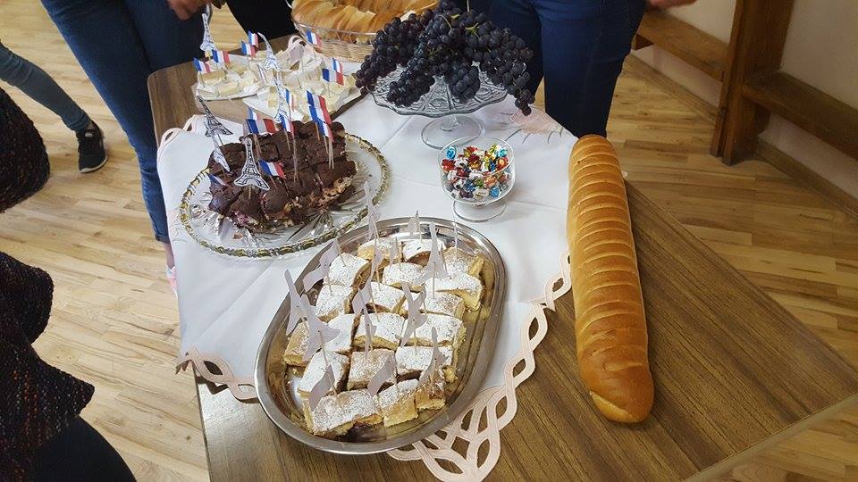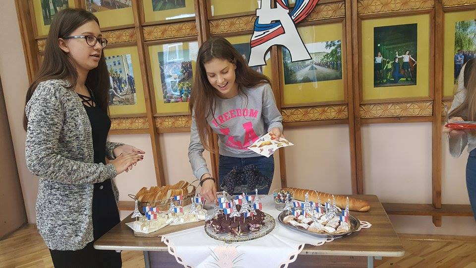 Į teatralizuotą kavinę pakvietė prancūzų kalbos mokytoja bei mokiniai. Reikėjo tik teisingai atsakyti į klausimus apie Prancūzijos kultūrą bei civilizaciją ir buvo galima iš kavinės meniu ne tik išsirinkti, bet ir paragauti gardžių skanėstų: Ingos obuolių pyrago, sūrio, bagetės (prancūziško batono), dienos pyrago su vyšniomis ir varške, taip pat kitų vaišių. Buvo smagu skambant prancūziškai muzikai pajusti tos šalies dvasią.