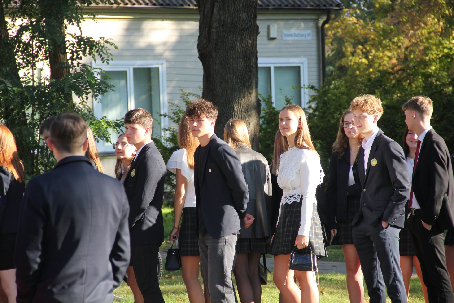 Kalbėjo abiturientė, gimnazijos mokinių seimo prezidentė Greta Gudaitė. Ji sveikino pirmokus, įsijungusius į stiprią bendruomenę, antrokus kvietė neišgyventi dėl PUPP, trečiokams priminė, kad mokslo metai bus kupini renginių, pareikalausiančių išradingumo ir kūrybiškumo. Kreipdamasi į abiturientus pabrėžė, kad silpnieji laukia galimybių, o stiprieji susikuria jas patys, todėl ketvirtokė įsitikinusi, kad bendraamžiai jau žino, ko nori ir kaip to sieks.