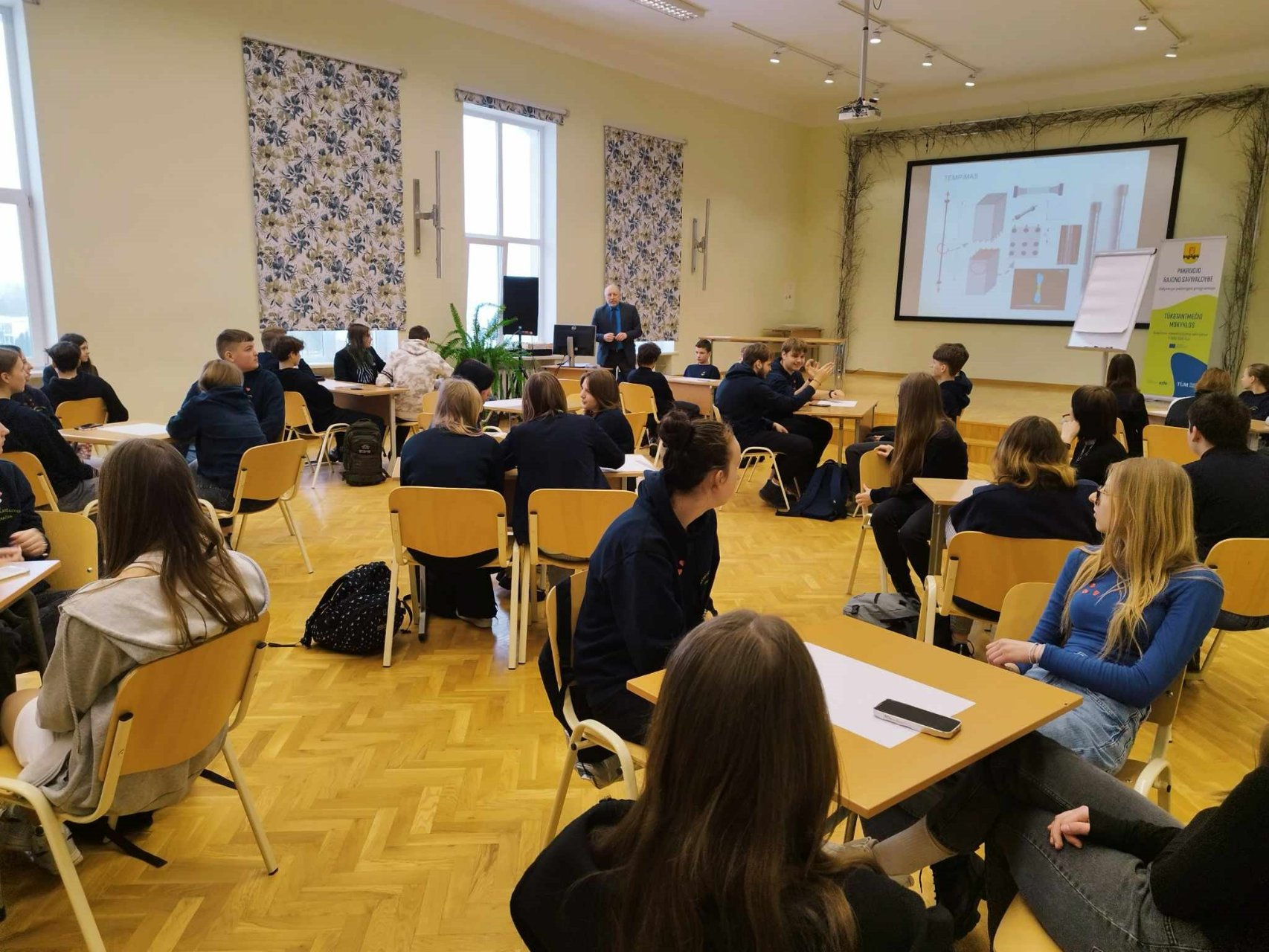 Vasario 14 d. į svečius atvyko Radviliškio Lizdeikos gimnazijos direktoriaus pavaduotoja ugdymui Skirmantė Petraitienė. Viešnia mūsų mokytojams pristatė debatus kaip įtraukią edukacinę priemonę, aptarė jų metodiką ir viešąjį kalbėjimą įvairių dalykų pamokose. Be to, Skirmantė Petraitienė pakvietė į Radviliškio Lizdeikos gimnaziją pasisemti praktinių patarimų, išvysti, kaip debatai integruojami į skirtingų dalykų pamokas. Susitikimas įkvėpė plačiau pasidomėti universaliu debatų metodu ir jo taikymo praktikomis. Nuoširdžiai dėkojame Radviliškio Lizdeikos gimnazijos direktoriaus pavaduotojai Skirmantei Petrauskienei už informatyvų pristatymą.