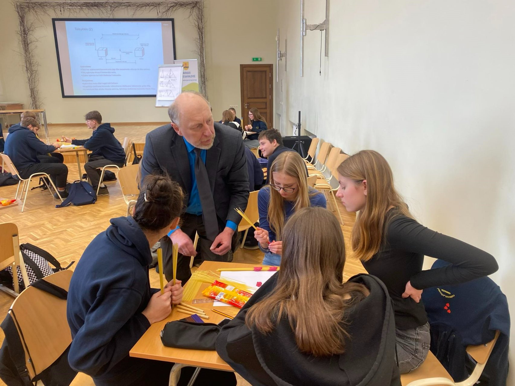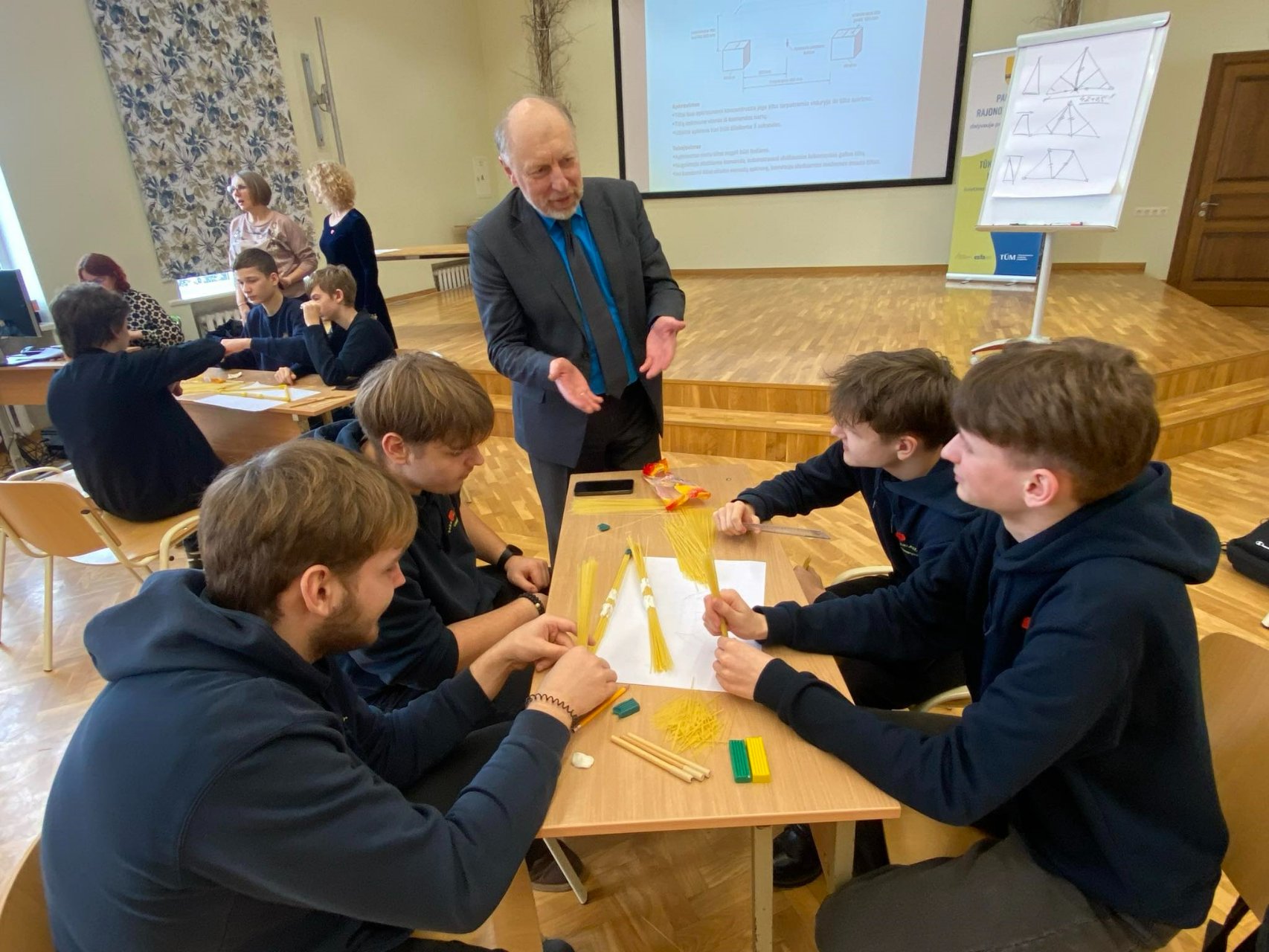 Nuostabi patirtis, geras laikas, draugystė, puiki nuotaika ir daug netikėtumų – tokiais žodžiais būtų galima apibudinti atmosferą, vyravusią renginyje. Išklausę pamokos trukmės Vilniaus Tech lektoriaus doc. dr. Gintauto Ambraso paskaitą apie tiltų istoriją ir statybos ypatumus renginio dalyviai ėmėsi praktiškai konstruoti tiltus iš spagečių ir plastilino. Valandos laiko renginys pažėrė malonių staigmenų.