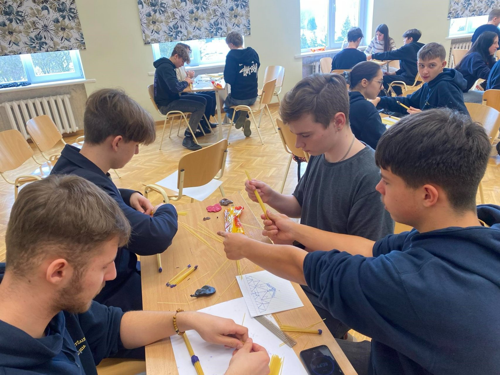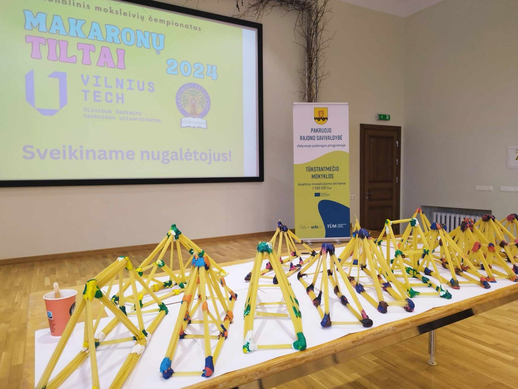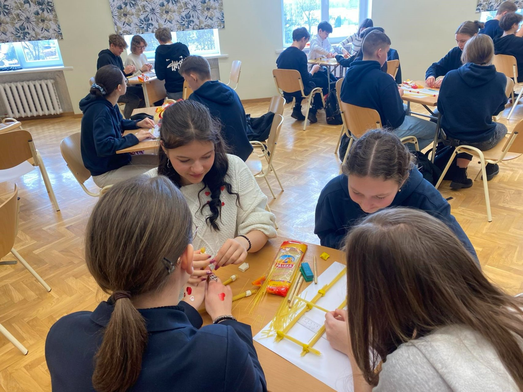Šiais metais gimnazijoje meilės dieną paminėjome visiškai netradiciškai. Gimnazija kartu su Vilniaus Tech universitetu organizavo nacionalinio mokinių čempionato „Makaronų tiltai 2024“ atrankos etapą.