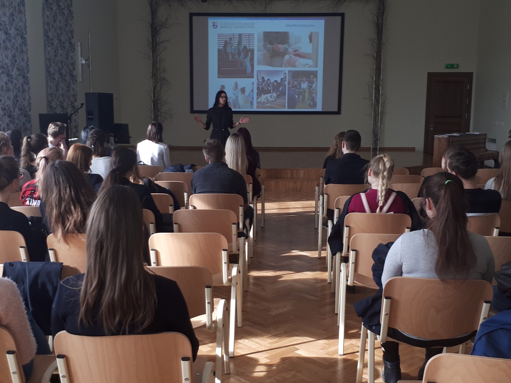 Kovo 7 d. gimnazistai bendravo su LSMU dėstytojais ir studentais konferencijų ir posėdžių salėje. Buvo smagu išgirsti mūsų buvusios abiturientės Martynos Drupaitės patarimus tiems, kas ketina rinktis medicinos, farmacijos ar veterinarijos studijas. Mokiniai buvo supažindinti su dalykais, kurių mokosi būsimieji medikai. LSMU atstovai pristatė studijų kryptis, atsakė į gimnazistų klausimus apie galimybę studijuoti ar atlikti praktiką užsienyje.