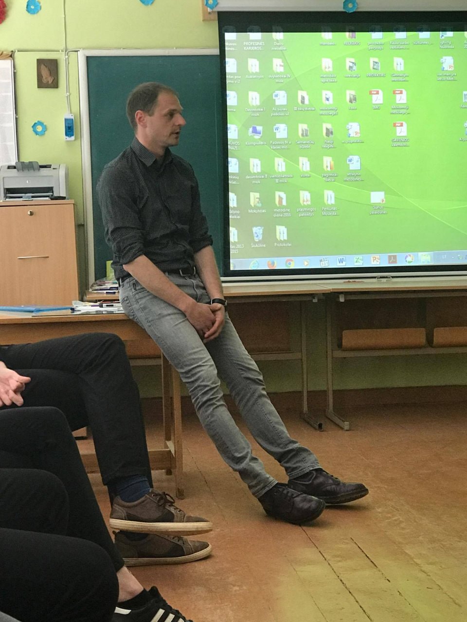 Gegužės 17 d. mūsų gimnazijoje viešėjo Šiaulių vyskupijos Šeimos centro jaunimo programų koordinatorius, socialinis pedagogas, mokytojas Gediminas Krūmas. Jis mūsų mokiniams skaitė paskaitą „Šeima ir šeimos planavimas“. Susitikimo pradžioje svečias deklamavo A. Mamontovo eilėraštį, kuris jam paliko didelį įspūdį, daug kalbėjo apie gyvenimo tikrumą. Vėliau diskutavome, kad ir kaip juokingai skambėtų, apie karvės ir žmogaus skirtumus, tačiau labiau gilinomės ne į fizinius skirtumus, o į dvasinius dalykus. Žiūrėjome keletą filmukų apie žmogaus gyvenimą, apžvelgėme svarbiausius asmens būties įvykius (gimimą, pirmąją meilę, vestuves, šeimą). Taip pat aptarėme žmogaus nesavanaudiškumą, mokėjimą džiaugtis net mažiausiais dalykais. Visi drauge diskutavome ir apie žmogaus savivertę, mokėjimą priimti kritiką, savigarbą, orumą, susižavėjimą, bendravimą, įsimylėjimą, meilę kaip valios aktą, lytinius santykius bei abortą. Užsiėmimo pabaigoje mums buvo duoti lapai, kuriuose buvo išvardyti svarbiausi dalykai gyvenime (pavyzdžiui, geri draugai, religingumas, šeima, galimybė mylėti ir būti mylimam ir t.t.). Iš dešimties dalykų reikėjo pasilikti tik vieną, be kurio negalėtume gyventi, o kitus išbraukti. Dauguma mokinių pasirinko šeimą, džiugu, kad jauniems žmonėms ji yra būties pamatas.
