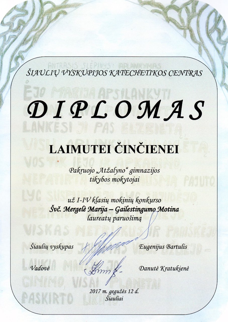 Nuoširdžiai sveikiname mūsų gimnazijos ketvirtokus. Linkime dangaus aukštybių platumas paversti tokiomis gyvenimo erdvėmis, kuriose vietą rastų gėris, pasitikėjimas, džiaugsmas bei darna.