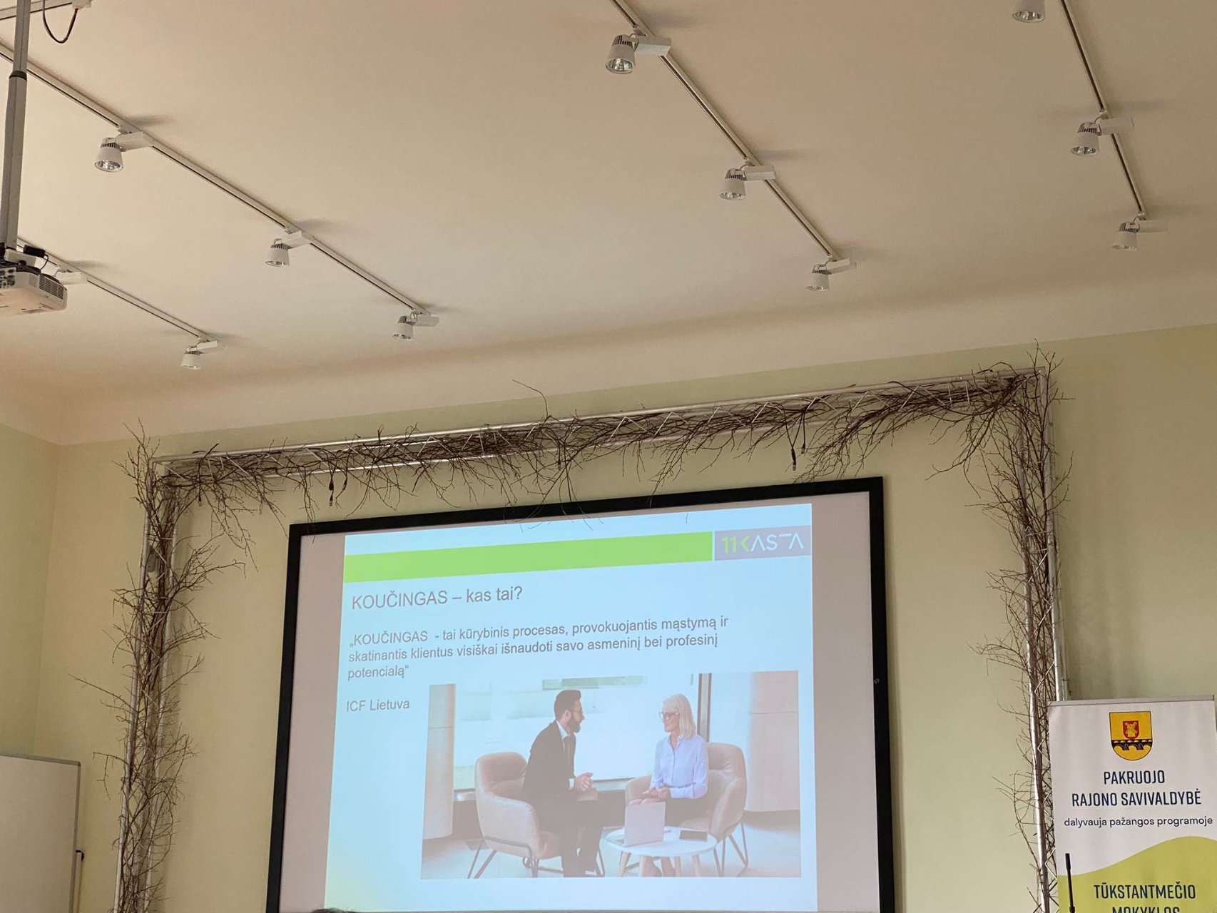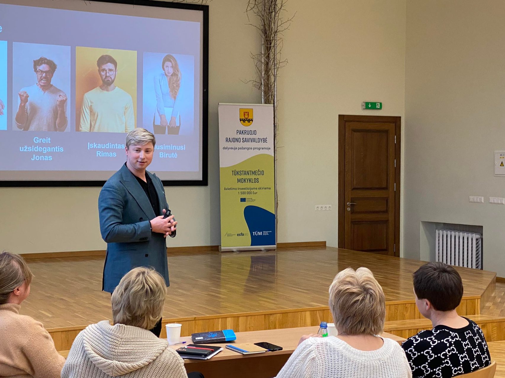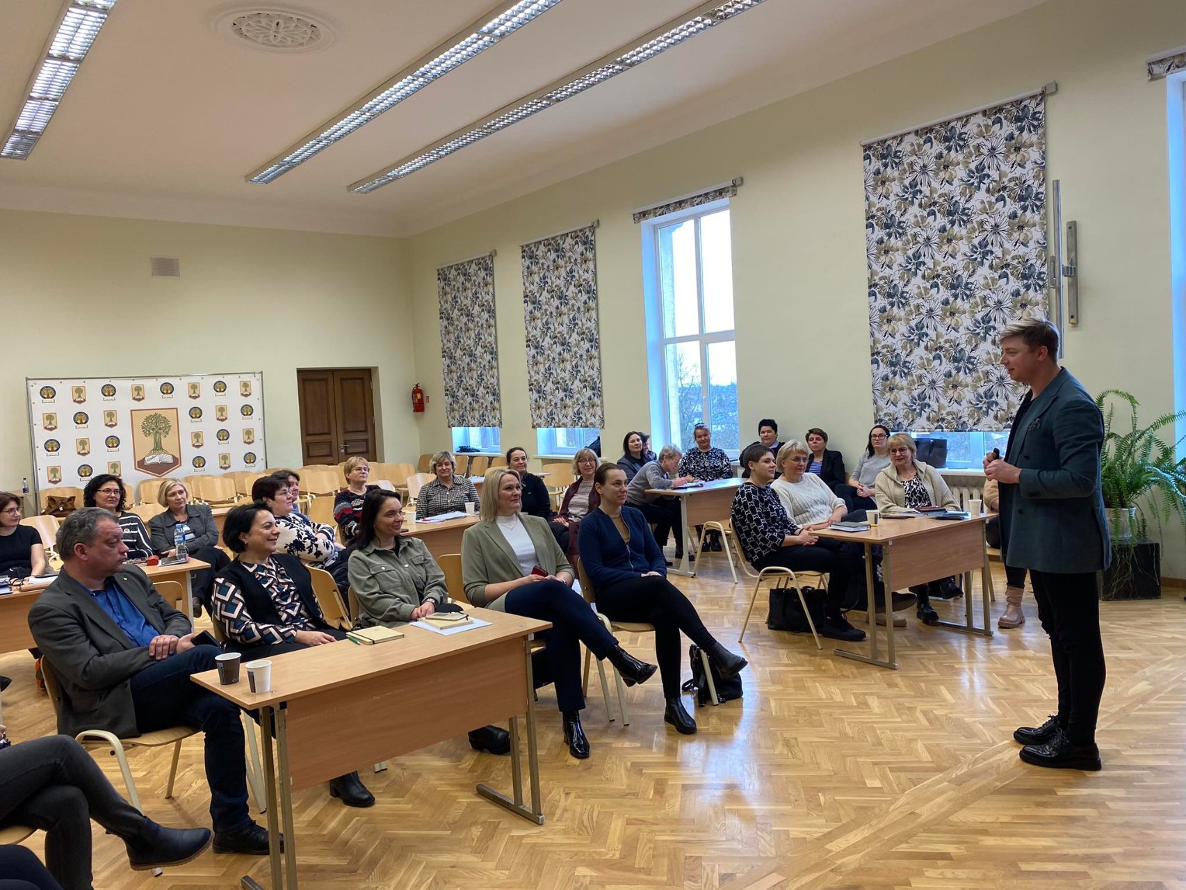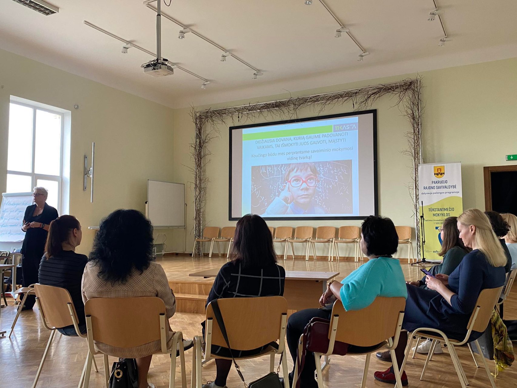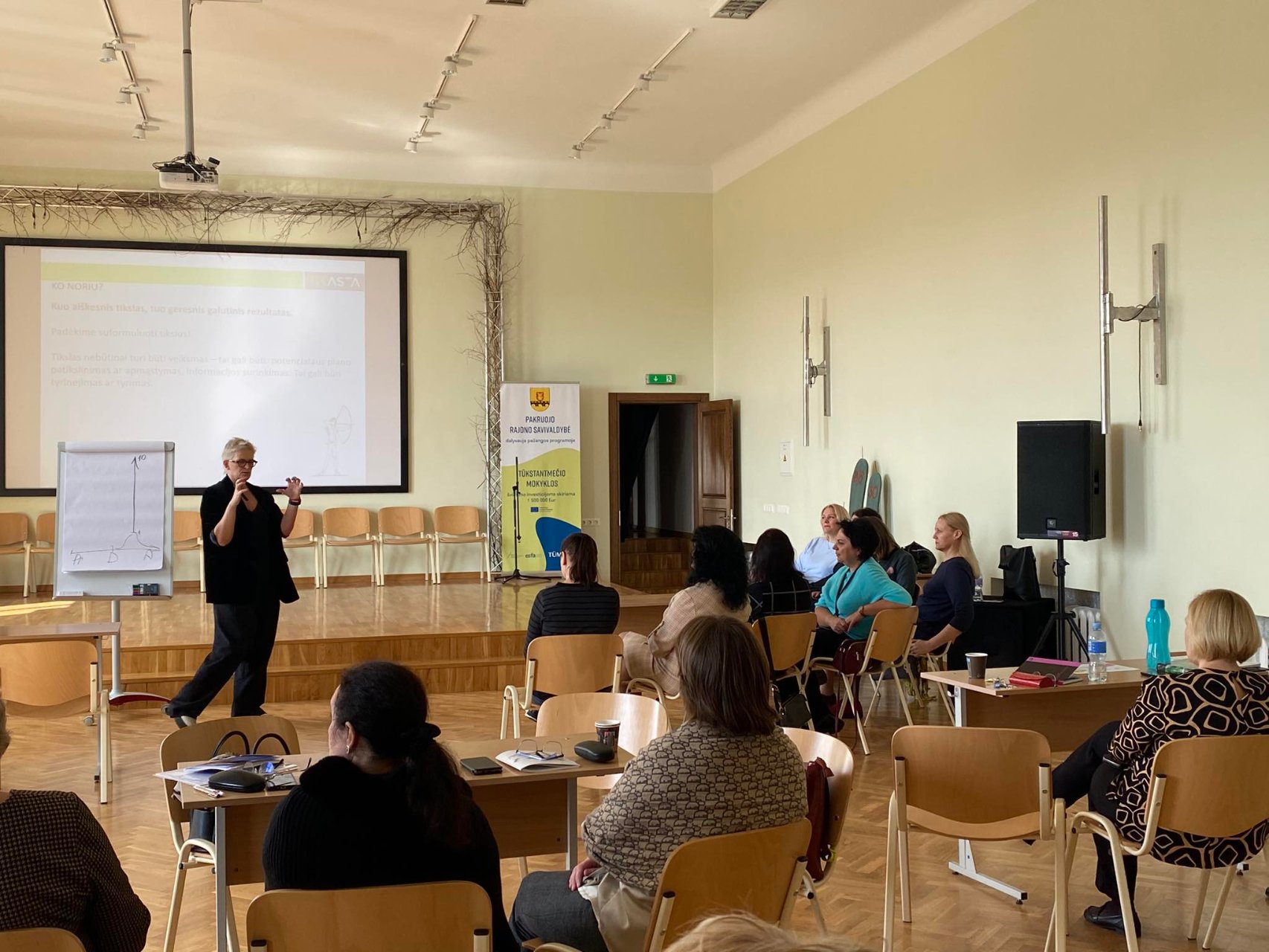 Vasario 20 d. Pakruojo rajono mokyklų pedagogai susirinko į veiklos „Veiksminga švietimo lyderystė“ I sesijos mokymus „Tvari lyderystė švietimo įstaigoje“. Su mokytojais susitiko Asta Blažinskienė, sertifikuota profesionali koučingo specialistė, karjeros konsultantė, lyderystės lektorė, trijų vaikų mama, organizacijų psichologė, vizituojanti ISM Vadybos ir ekonomikos universiteto lektorė.