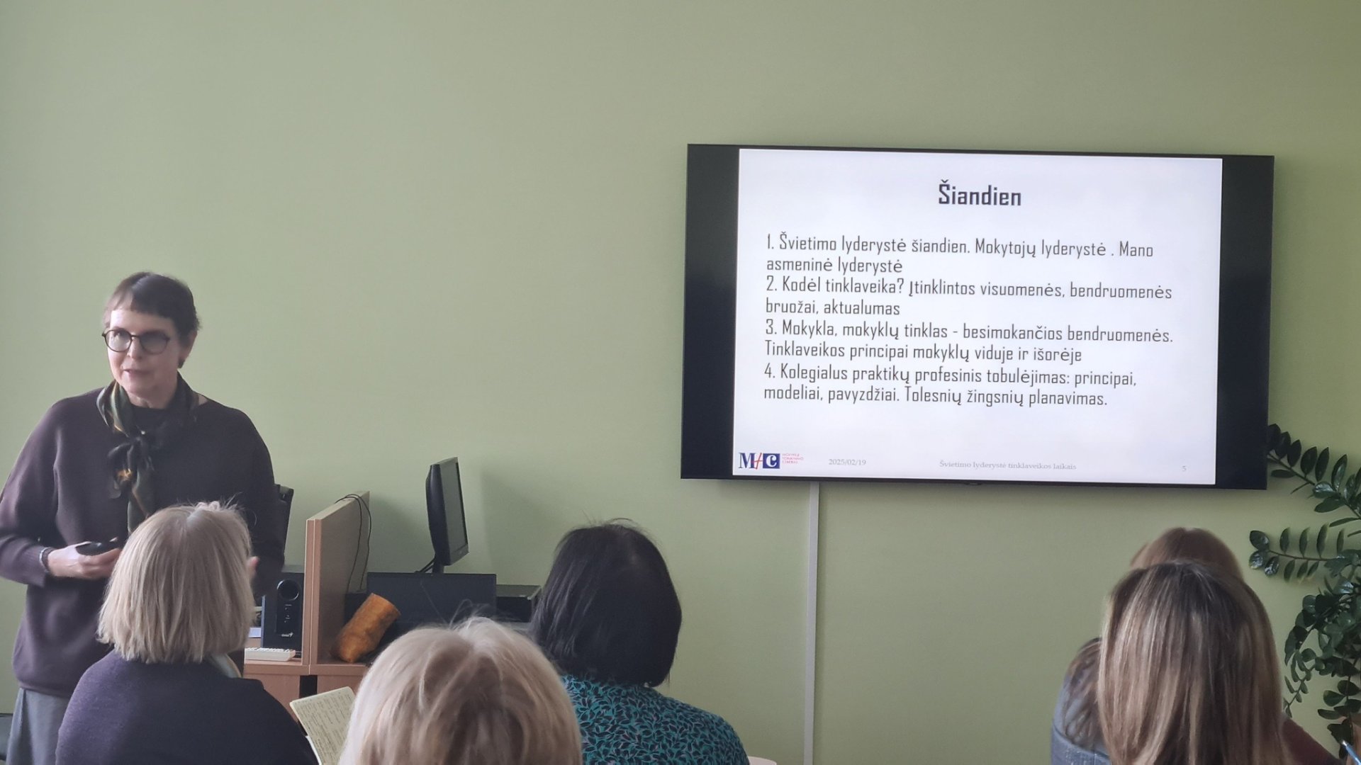 TŪM programos mokymai „Tinklaveika grindžiama lyderystė įtraukiojoje mokykloje“. Lektorė VŠĮ „Mokyklų tobulinimo centro“ steigėja, projekto „Renkuosi mokyti“ konsultantė Dr. Eglė Pranckūnienė.